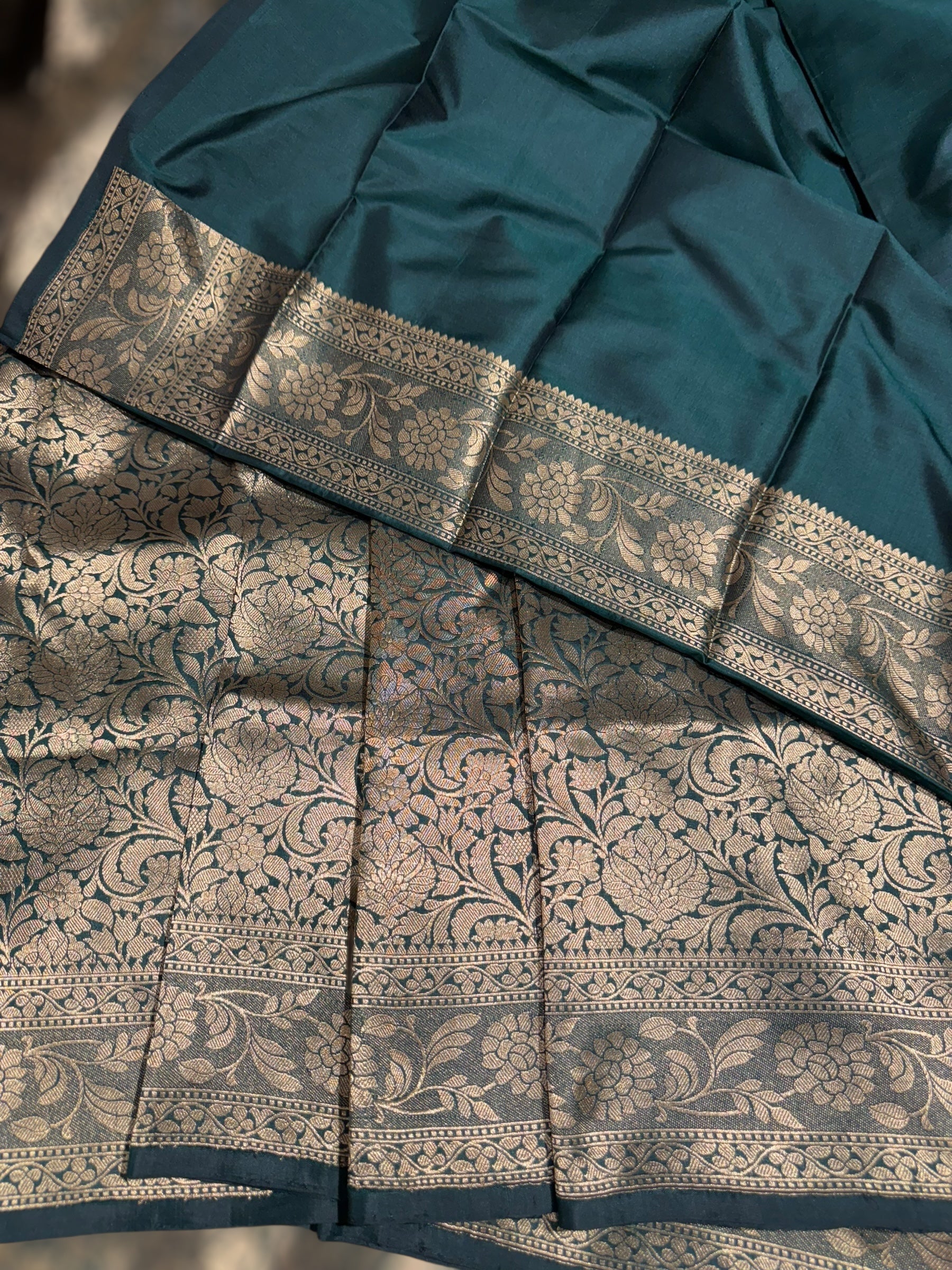 • Forest Green Banarasi katan Tonchoi weaving Saree in monotone look