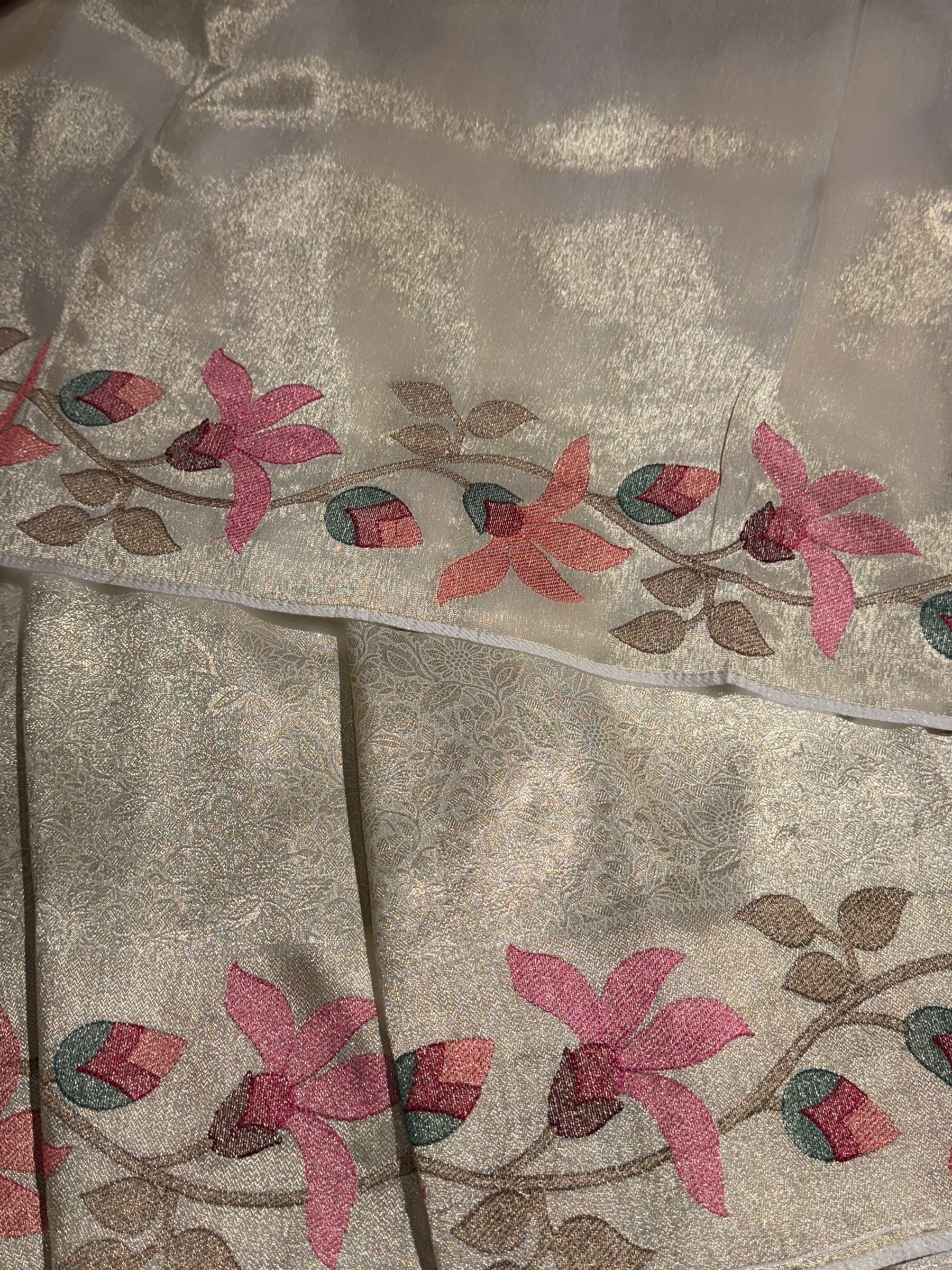 • Ivory Banarasi Brocade tissue saree with tonchui style weaving & pythani inspired embroidered border
