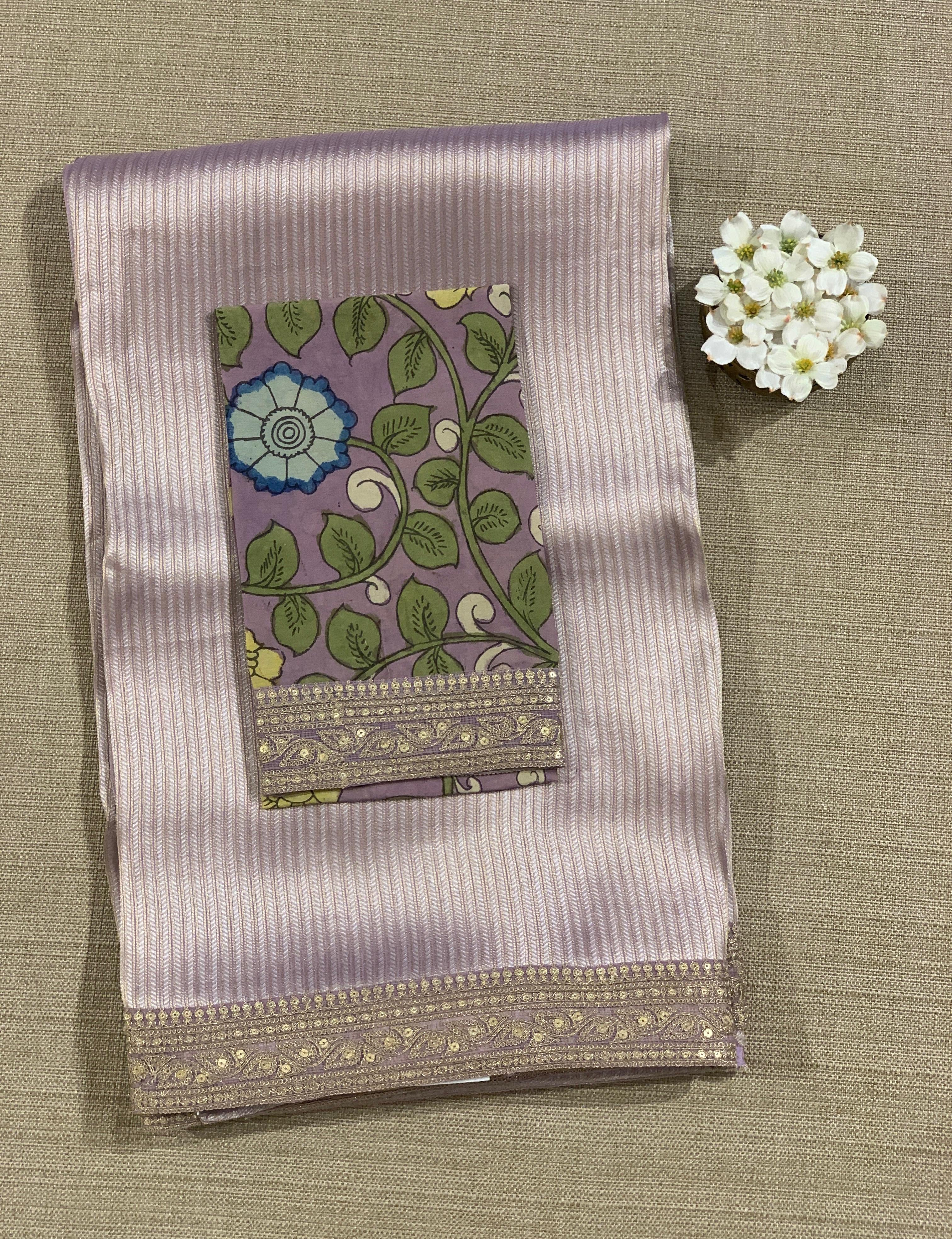 • Lilac Banarasi brocade with sabyasachi borders and pen kalamkari Blouses