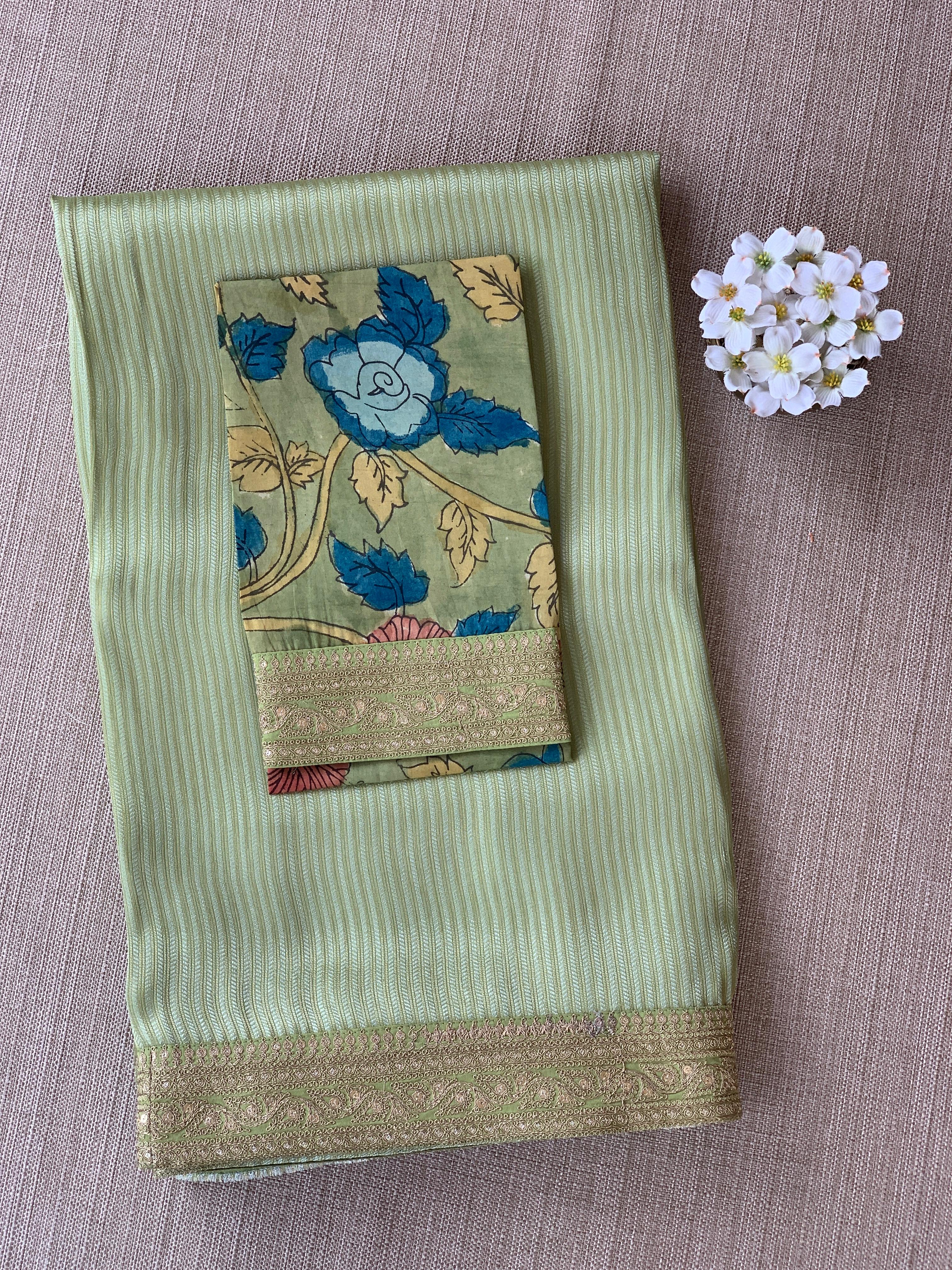 • Mint Banarasi tonchoi brocade with sabyasachi borders and pen kalamkari Blouses