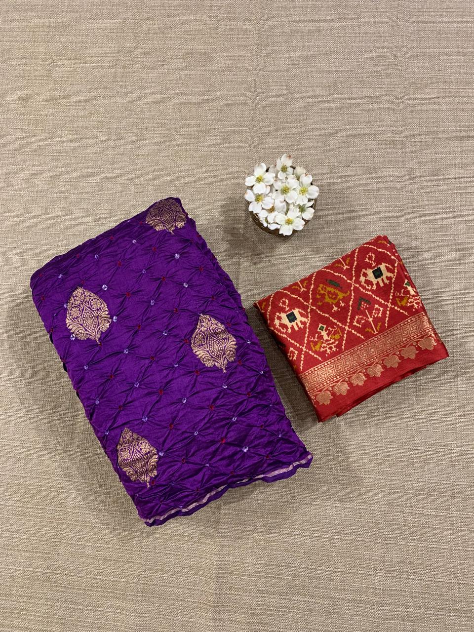 SCBA1106 Pure Handloom Banarasi Chiniya Bandhej Saree with Patola Blouse