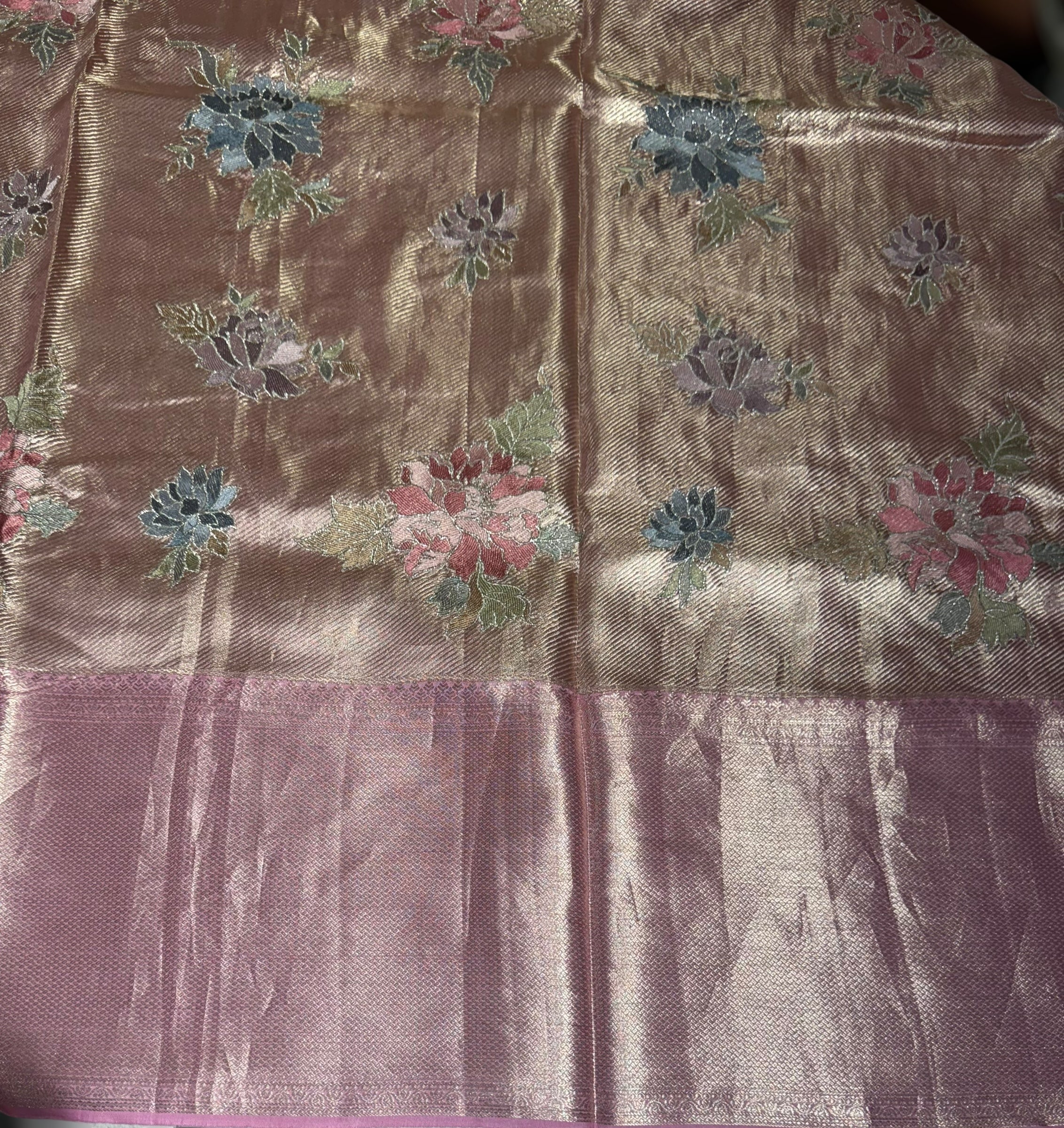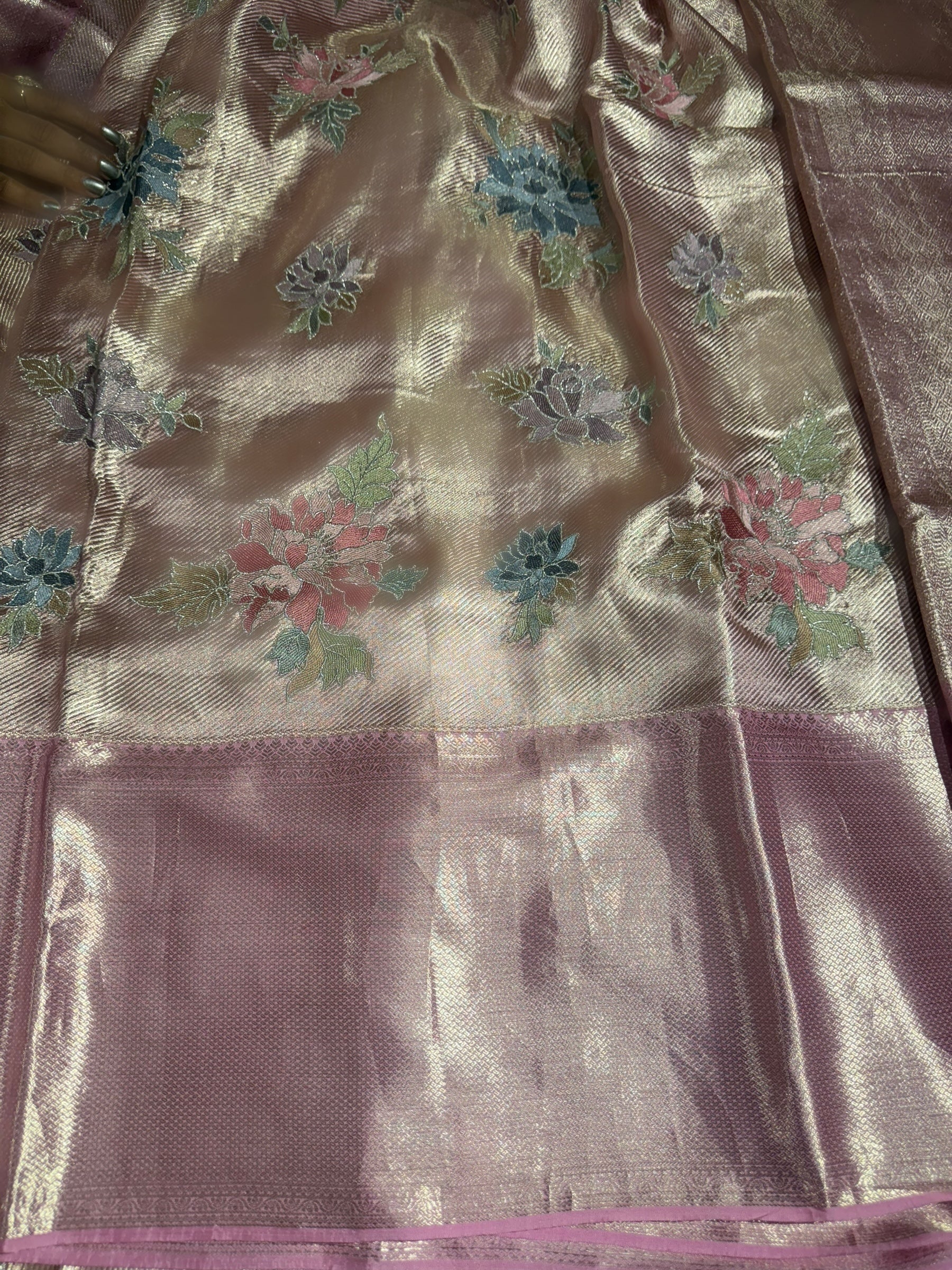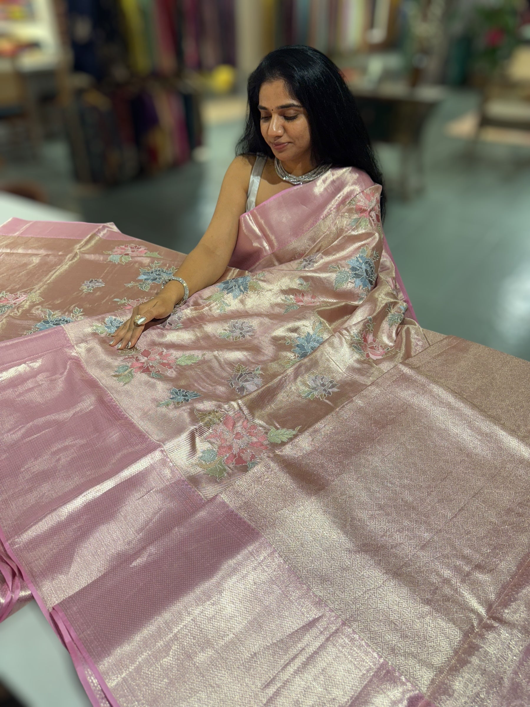 • Rose Pink Designer Kanchi Saree with allover embroidery
