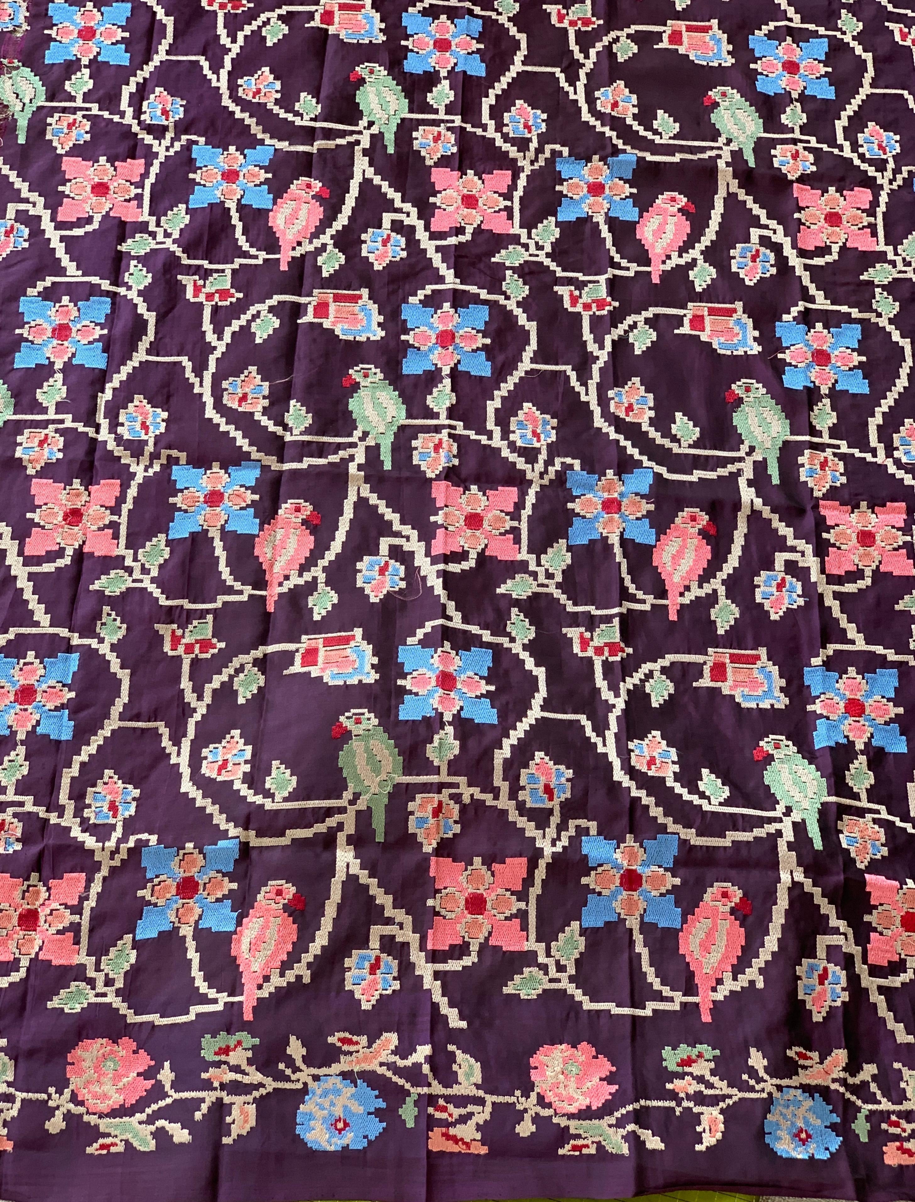 Kanchi vintage checks Kanjivaram saree with gap borders featuring Patola-inspired embroidery, paired with an allover Patola-inspired embroidered blouse.