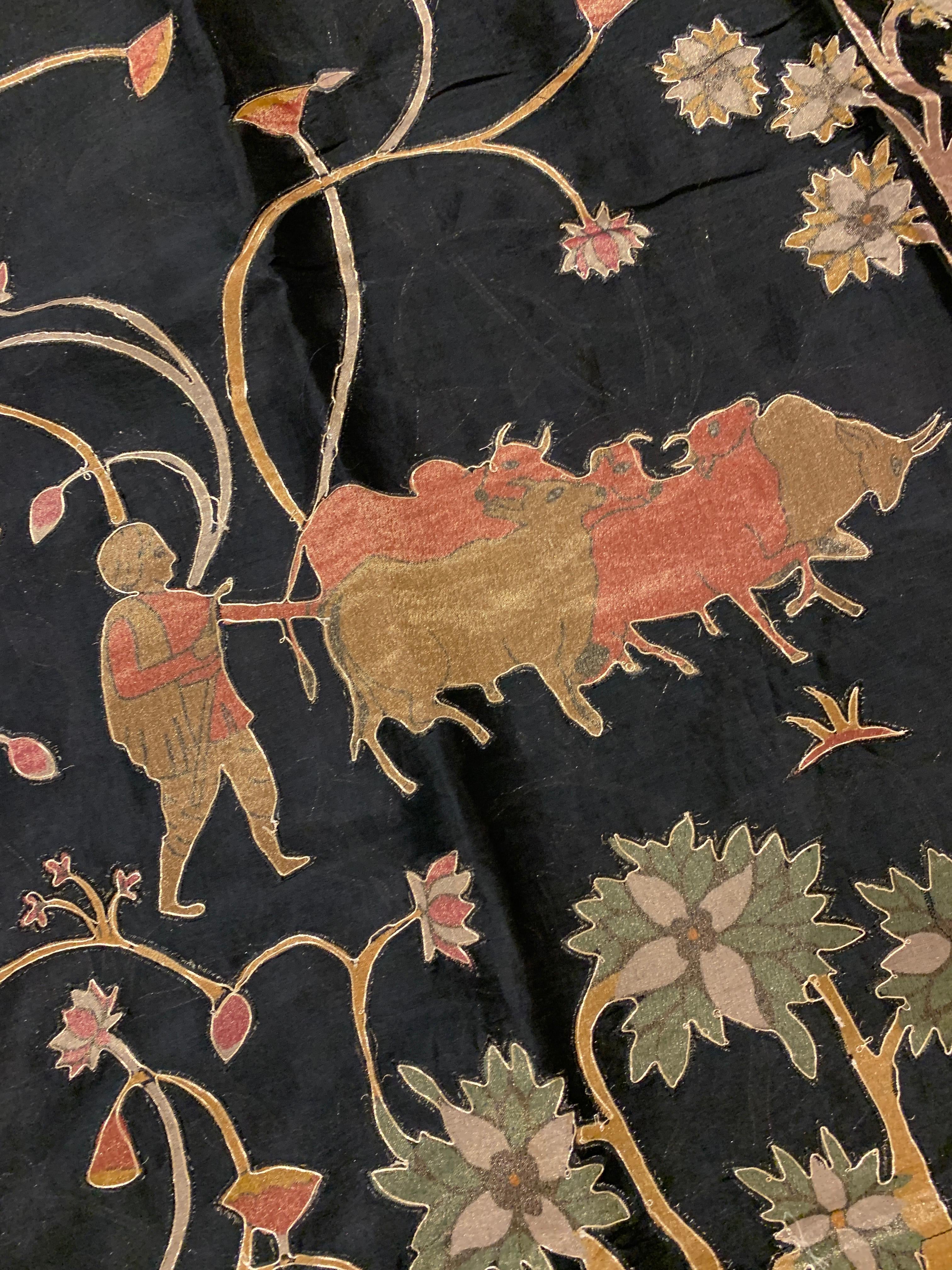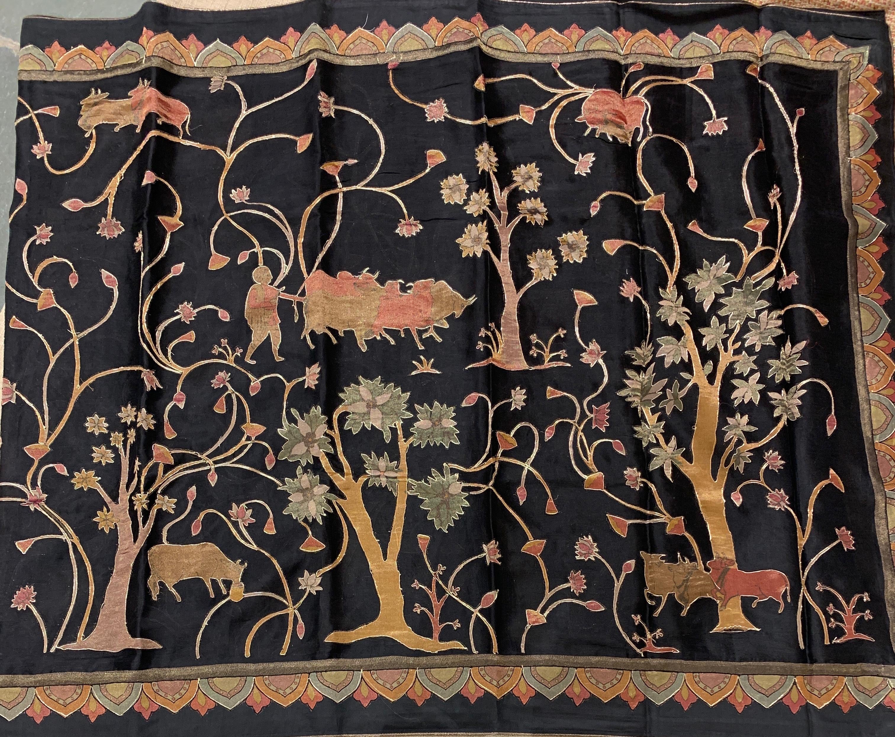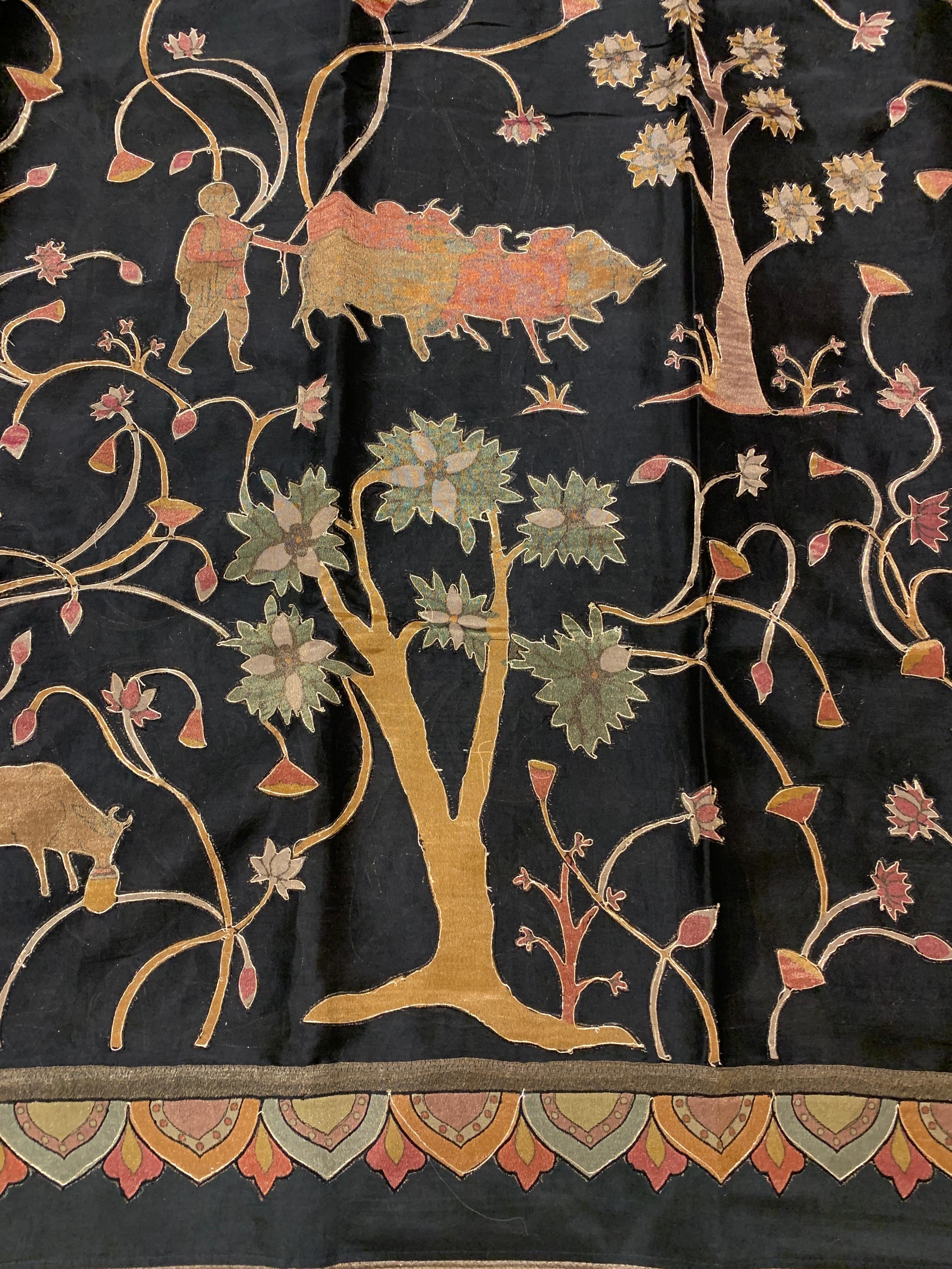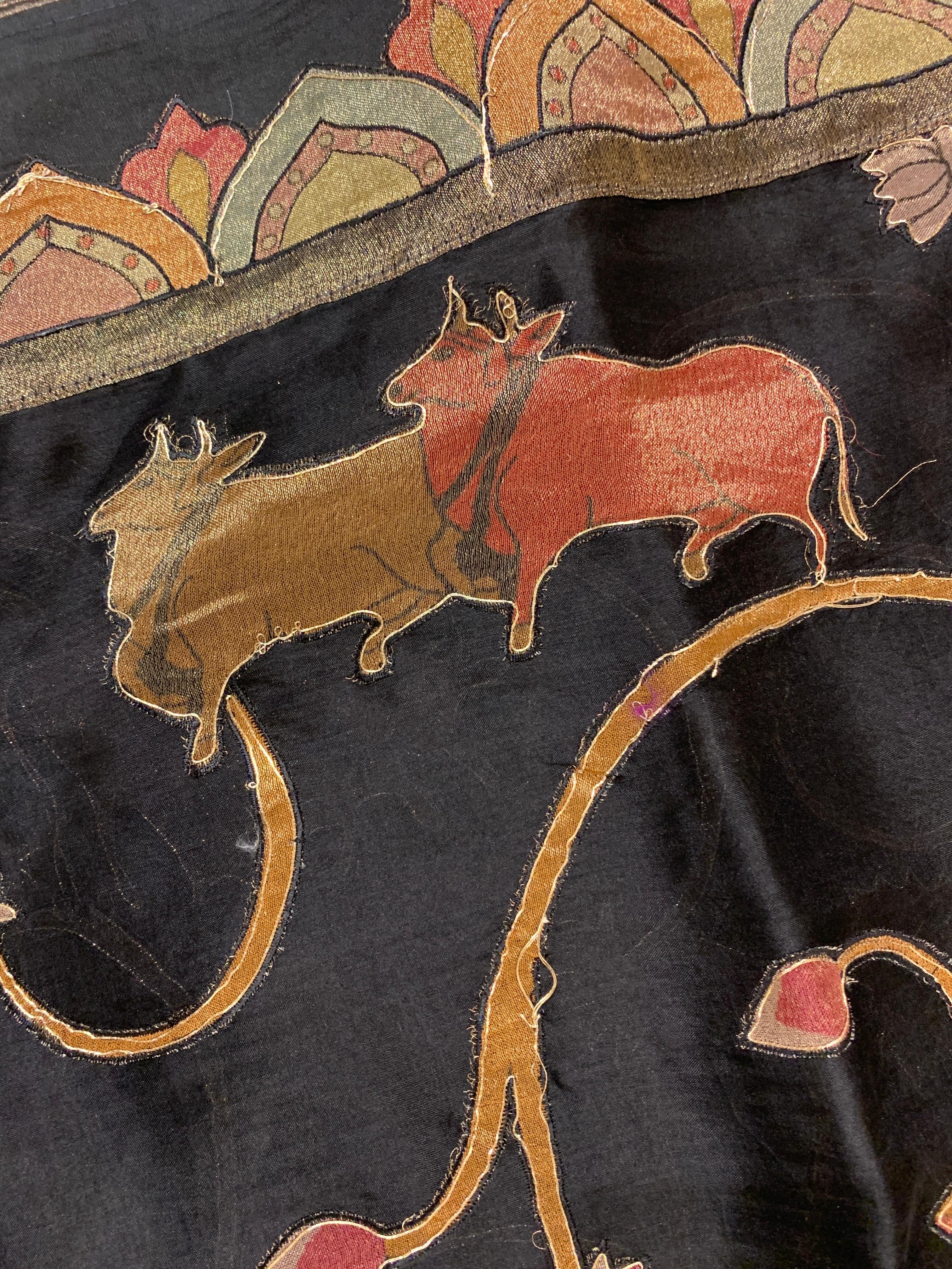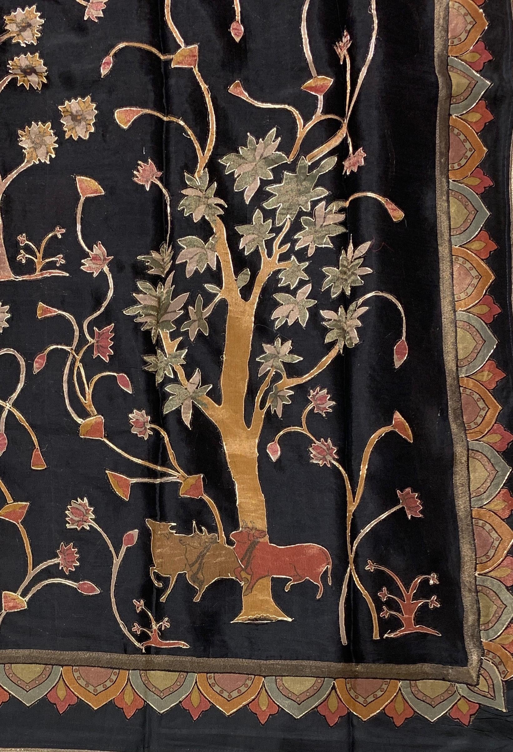 • Black Designer Organza Saree with Stunning Tissue Applique work Saree with Village theme