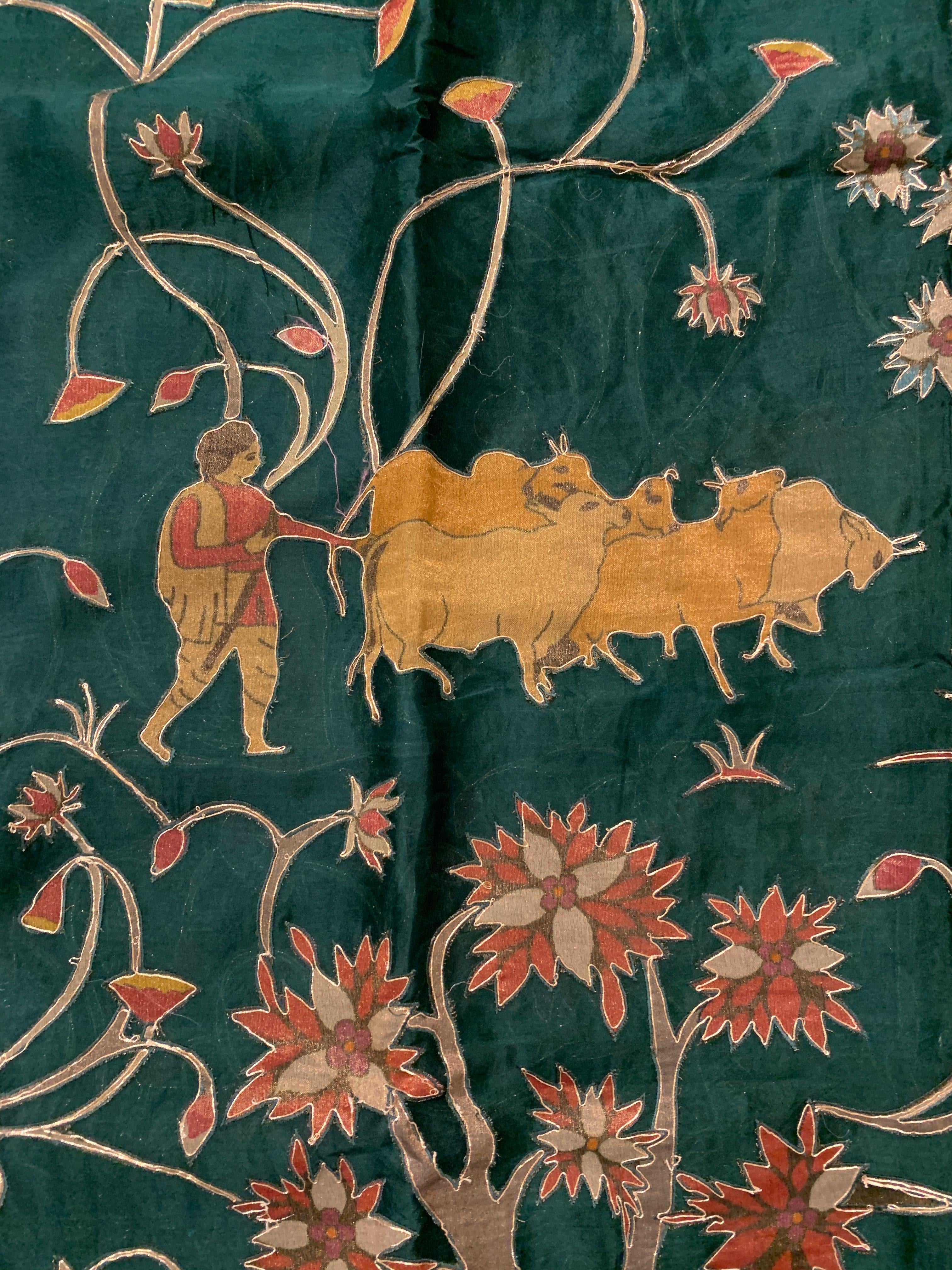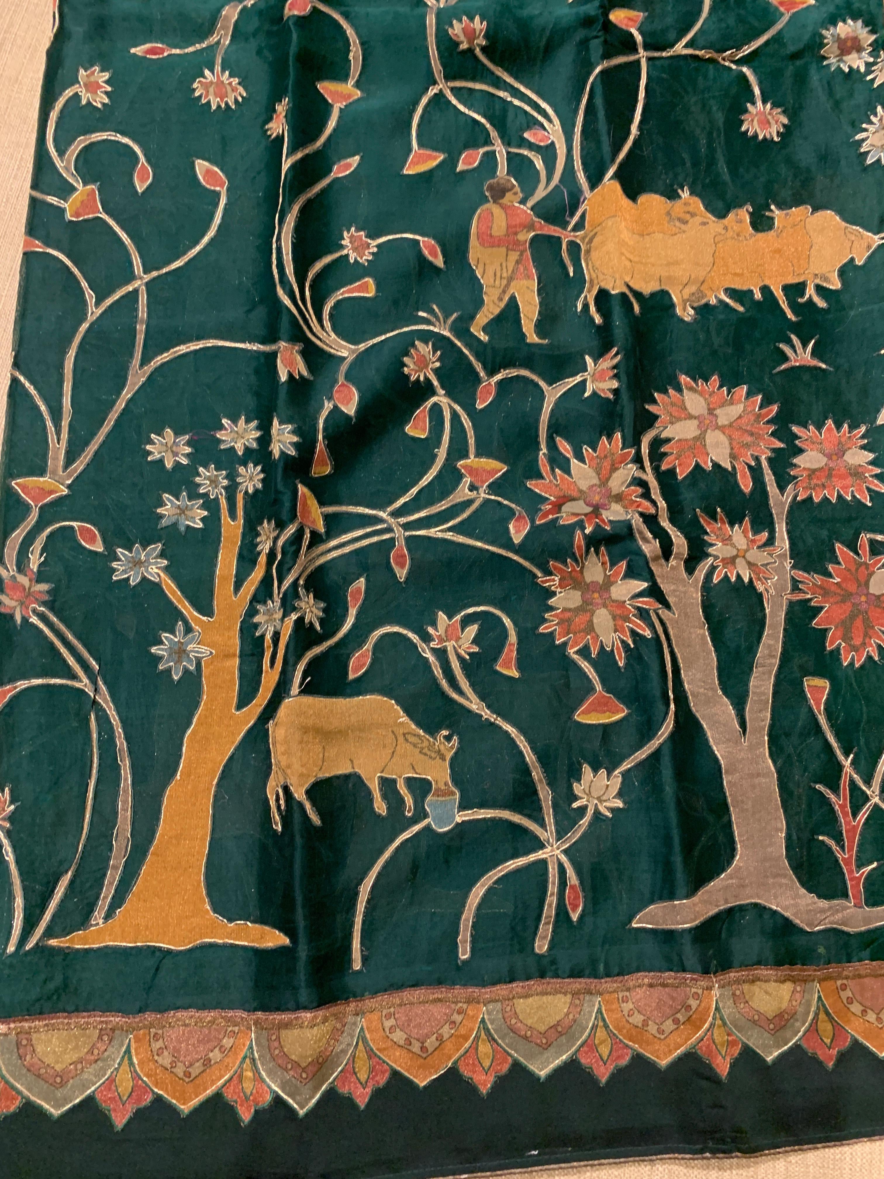 • Bottle Green Designer Organza Saree with Stunning Tissue Applique work Saree with village theme