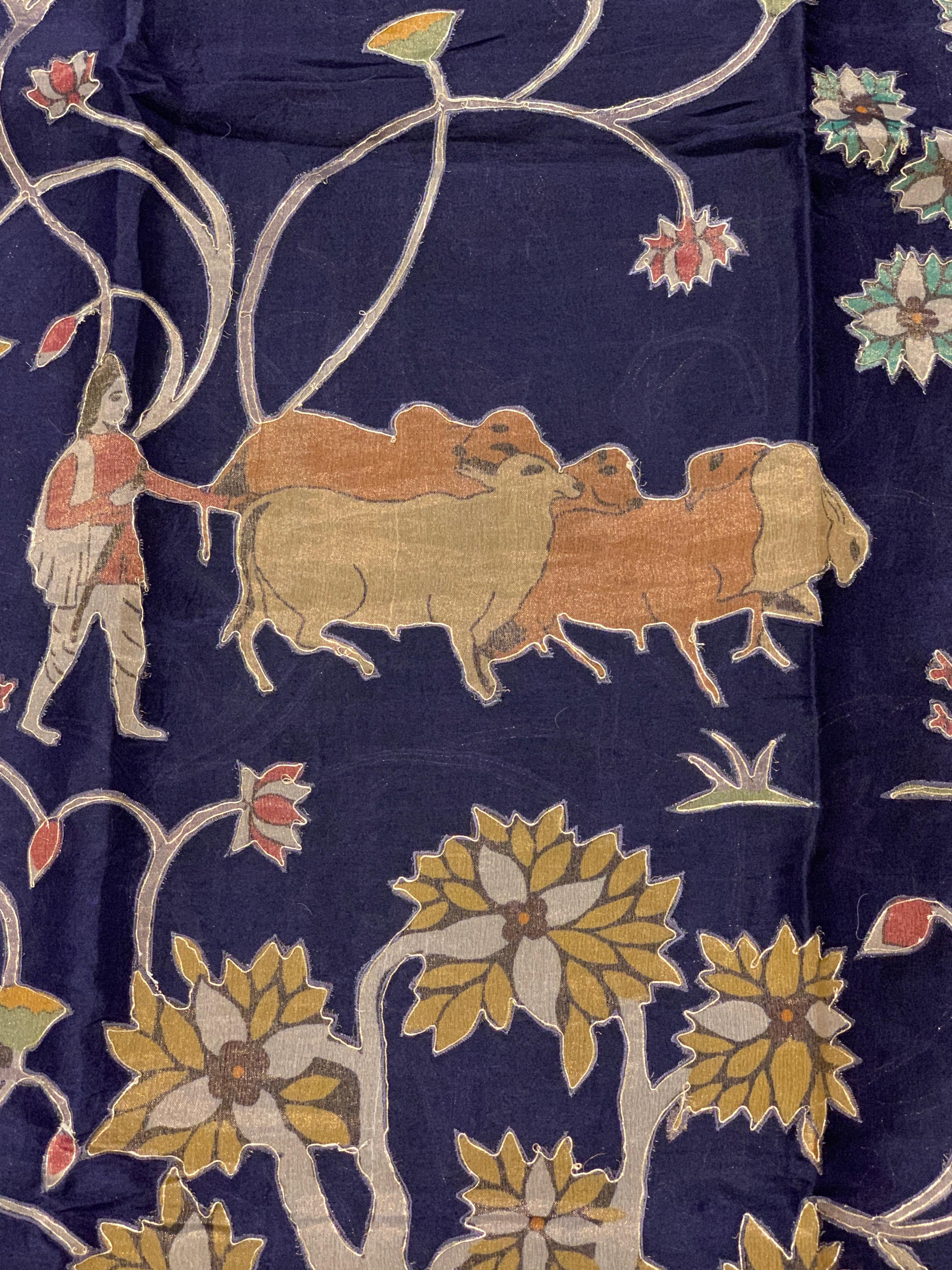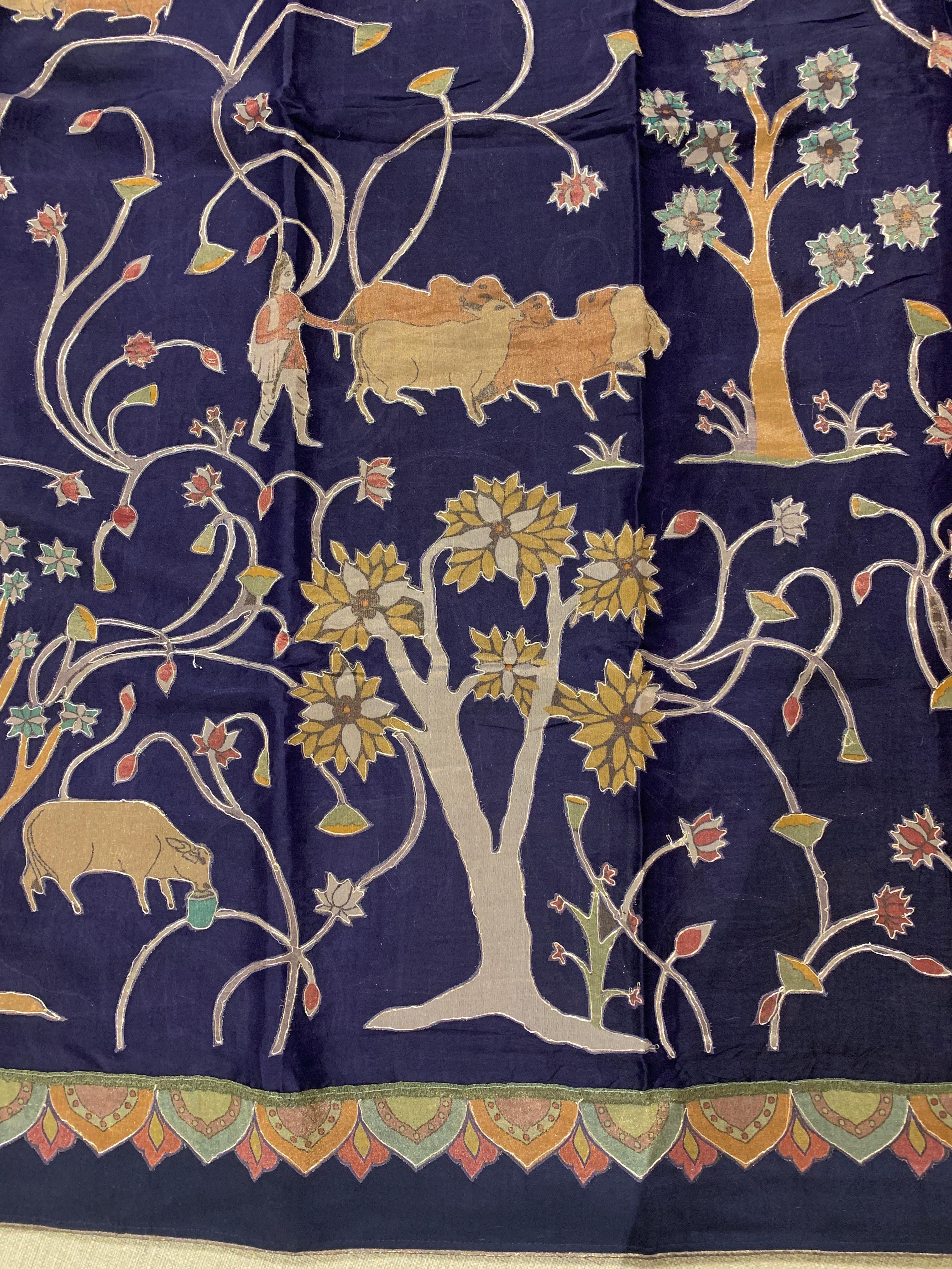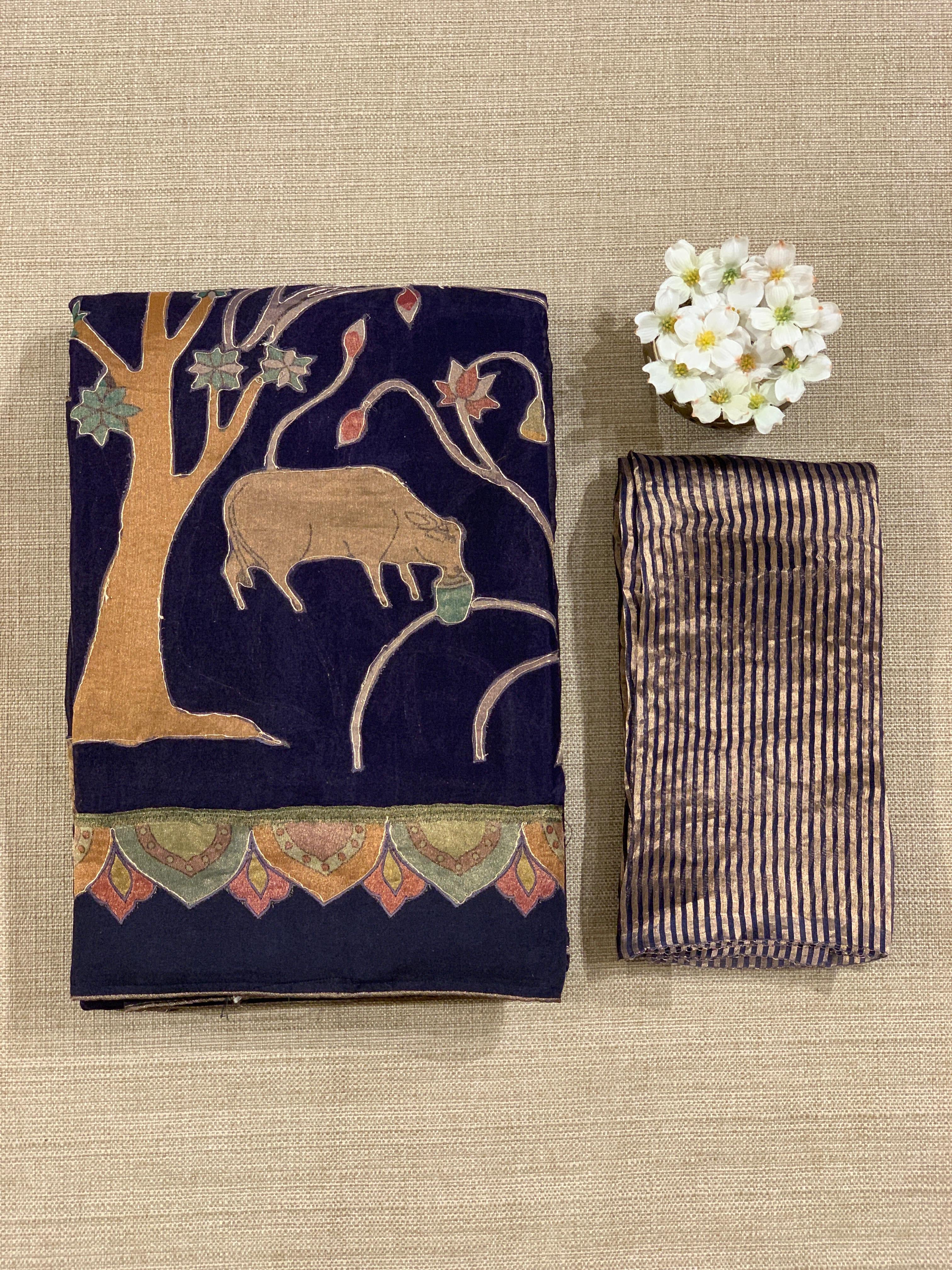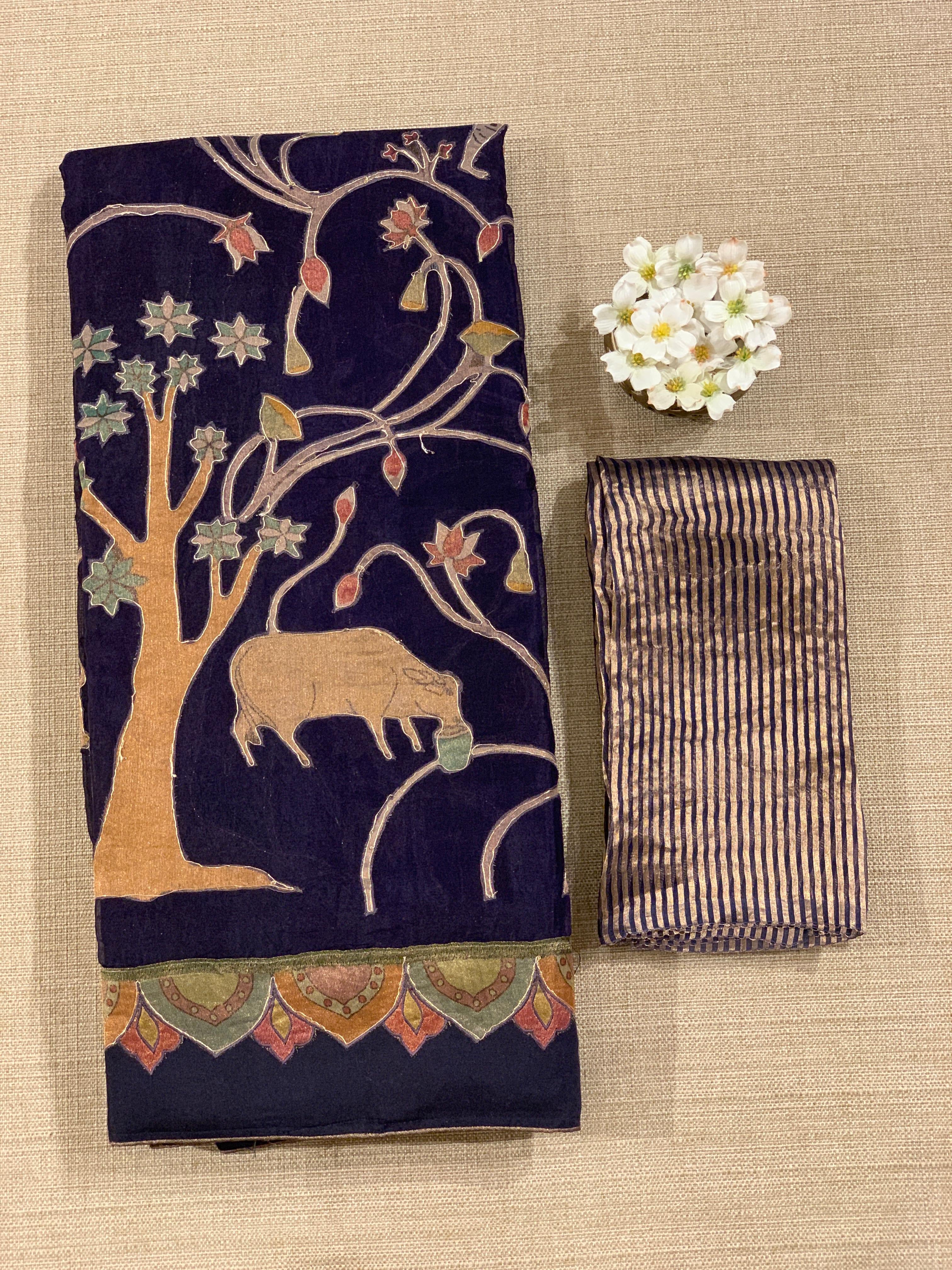 • Violet Designer Organza Saree with Stunning Tissue Applique work Saree with Village theme