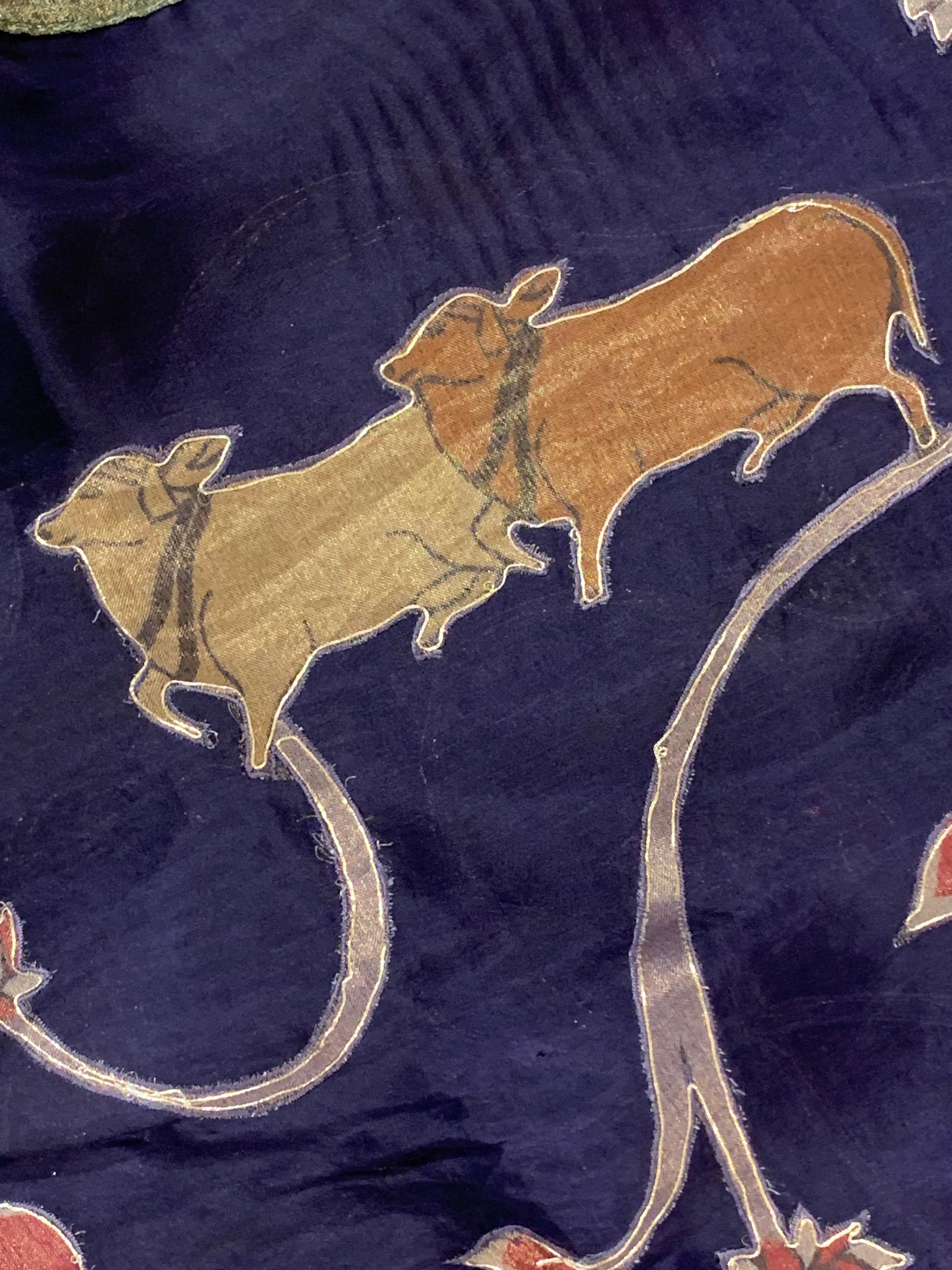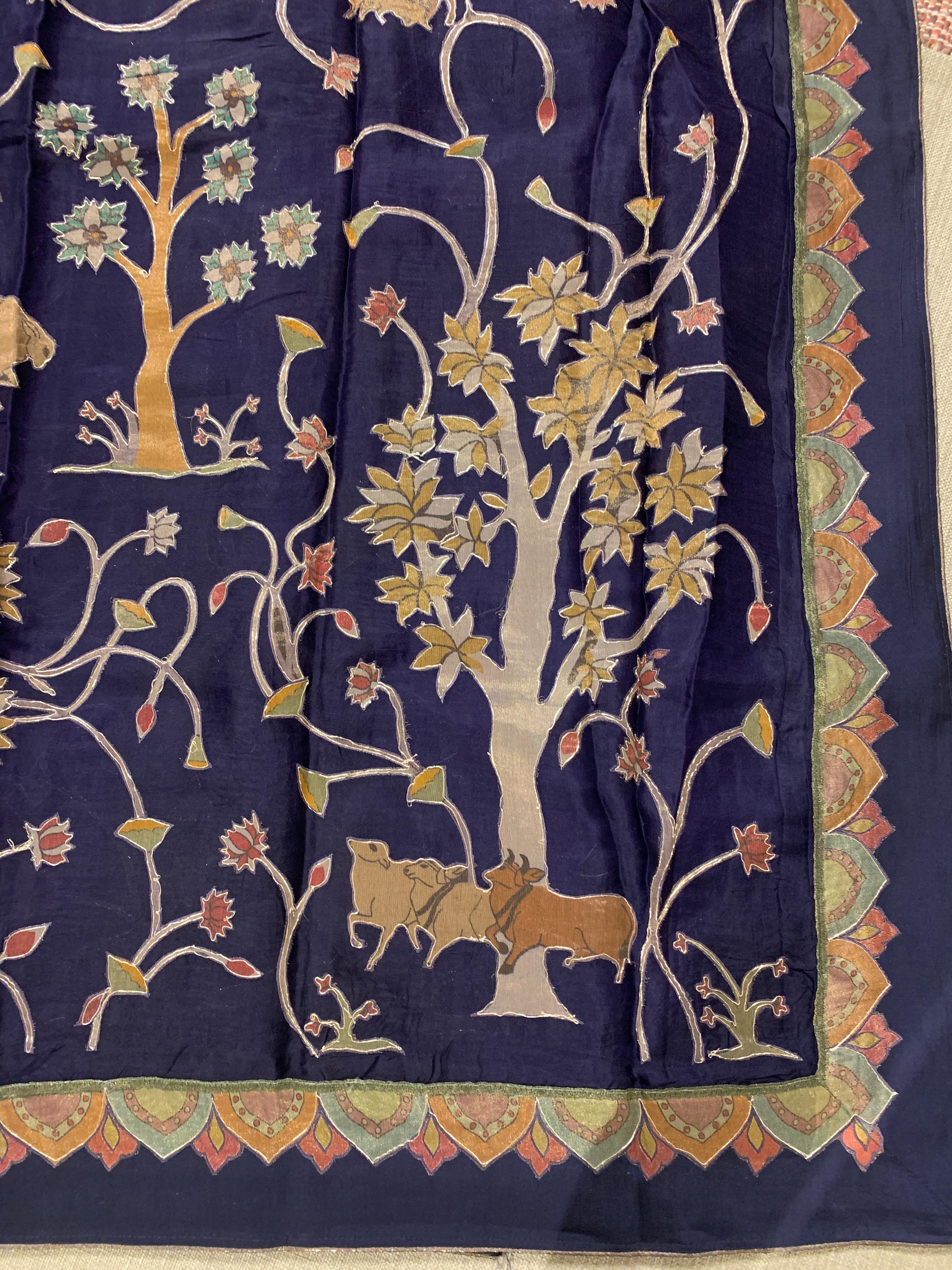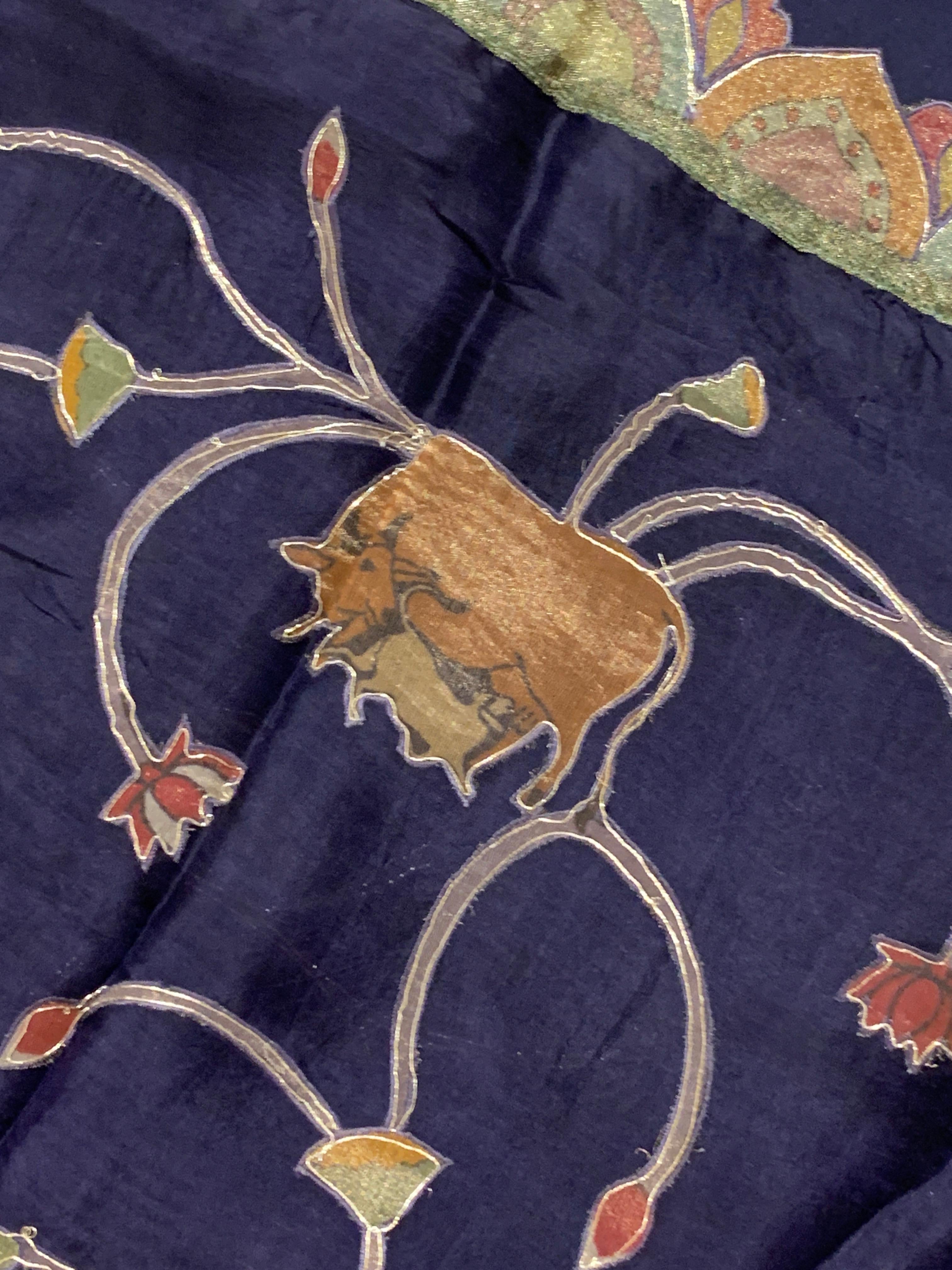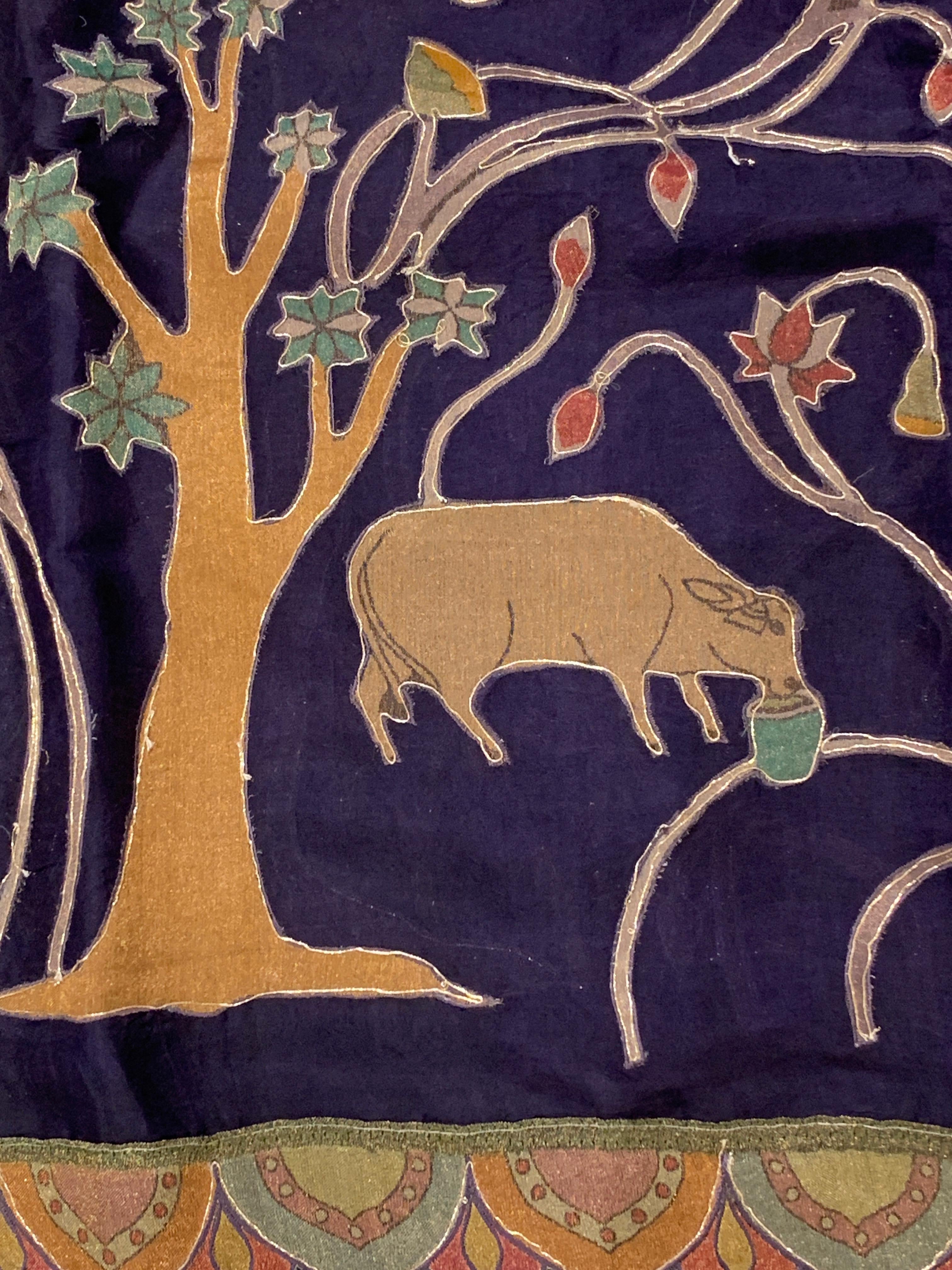 • Violet Designer Organza Saree with Stunning Tissue Applique work Saree with Village theme