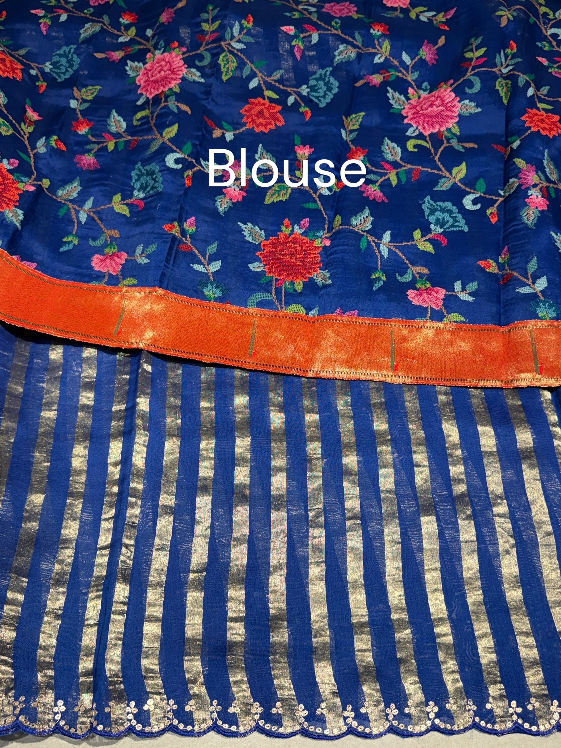 • Electric Blue Mul tissue stripes saree with fusion blouse : D62139