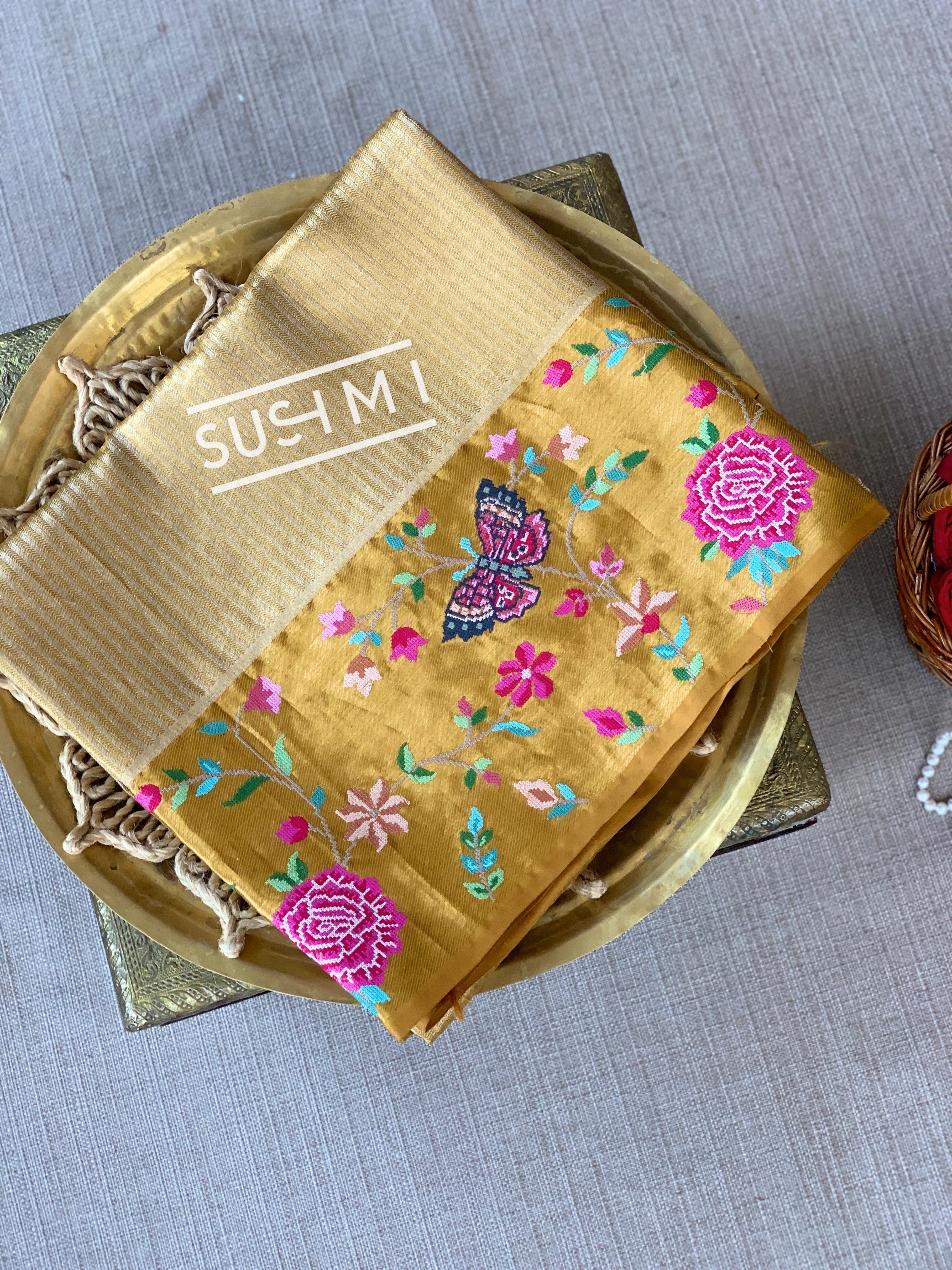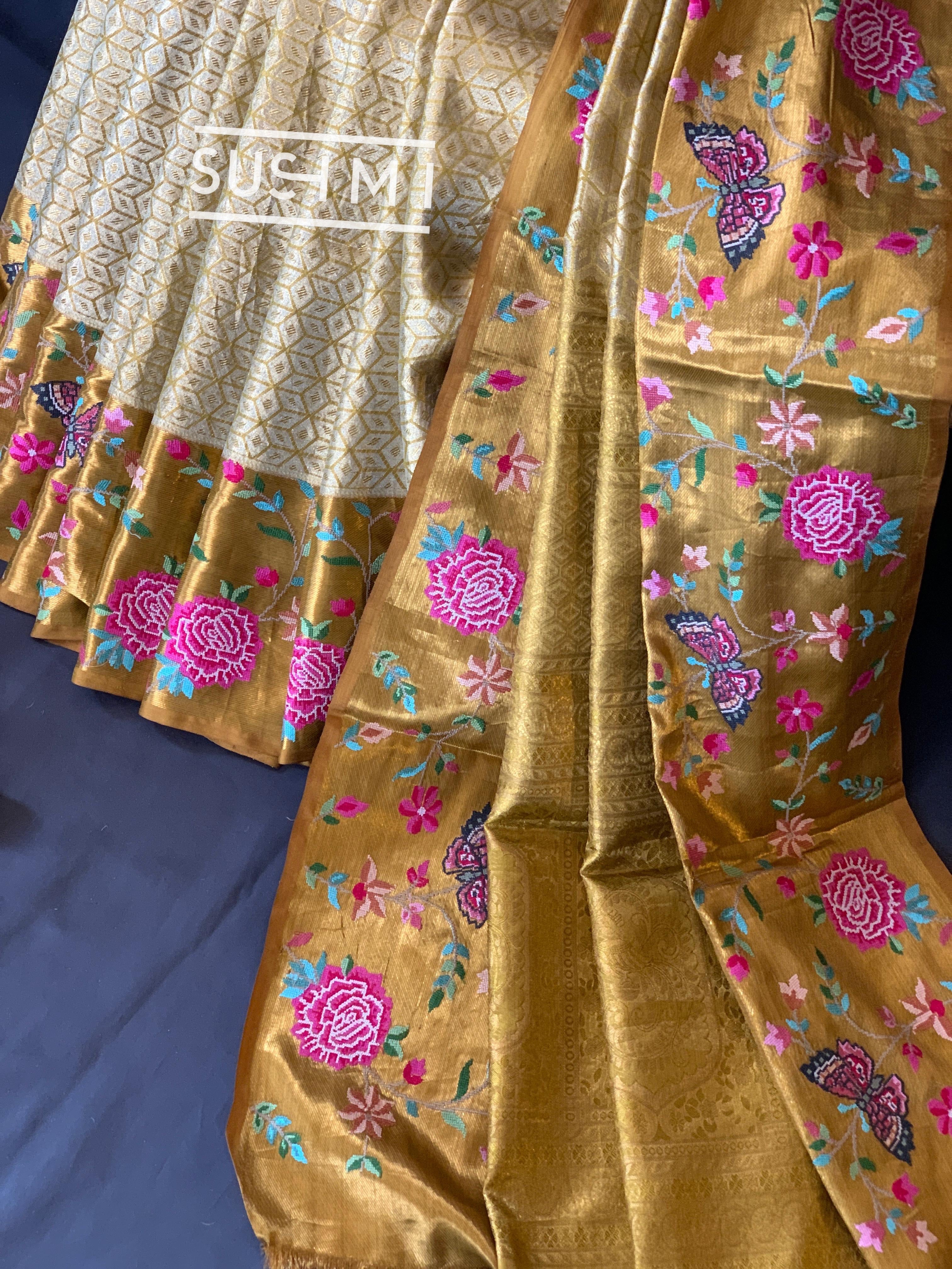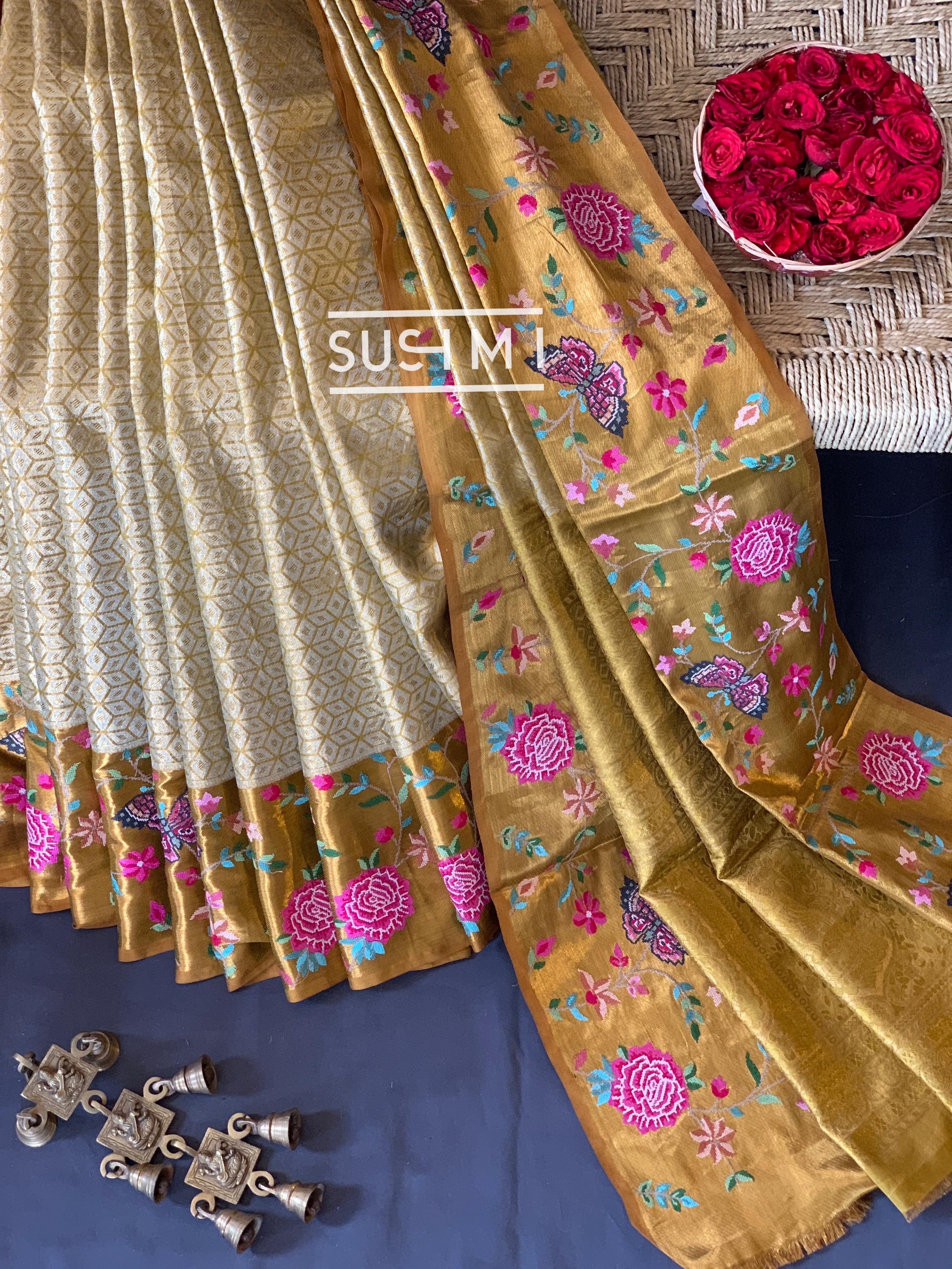 • Gold Kanjeevaram Tissue Sareewith petite point embroidery : S62F085
