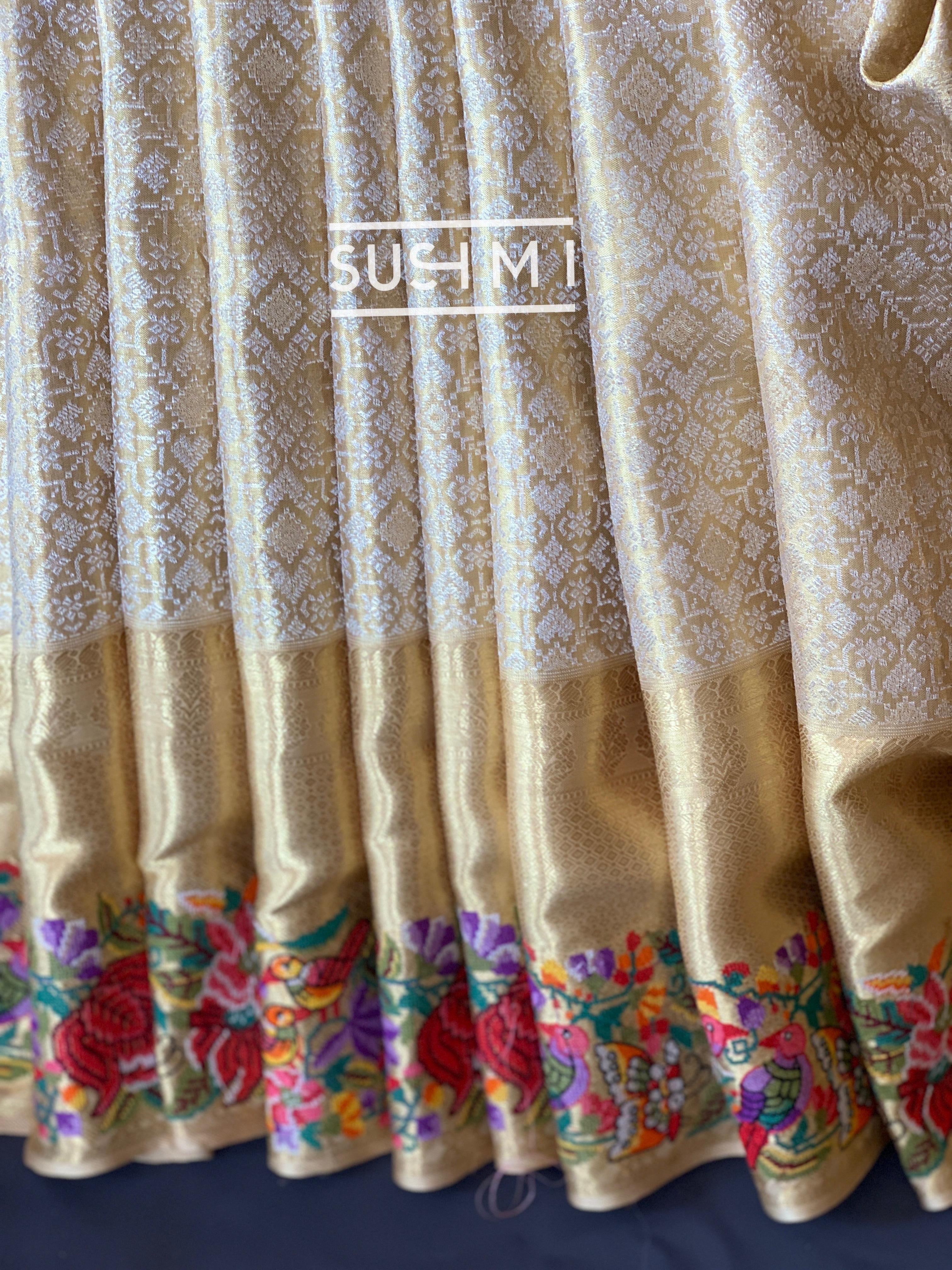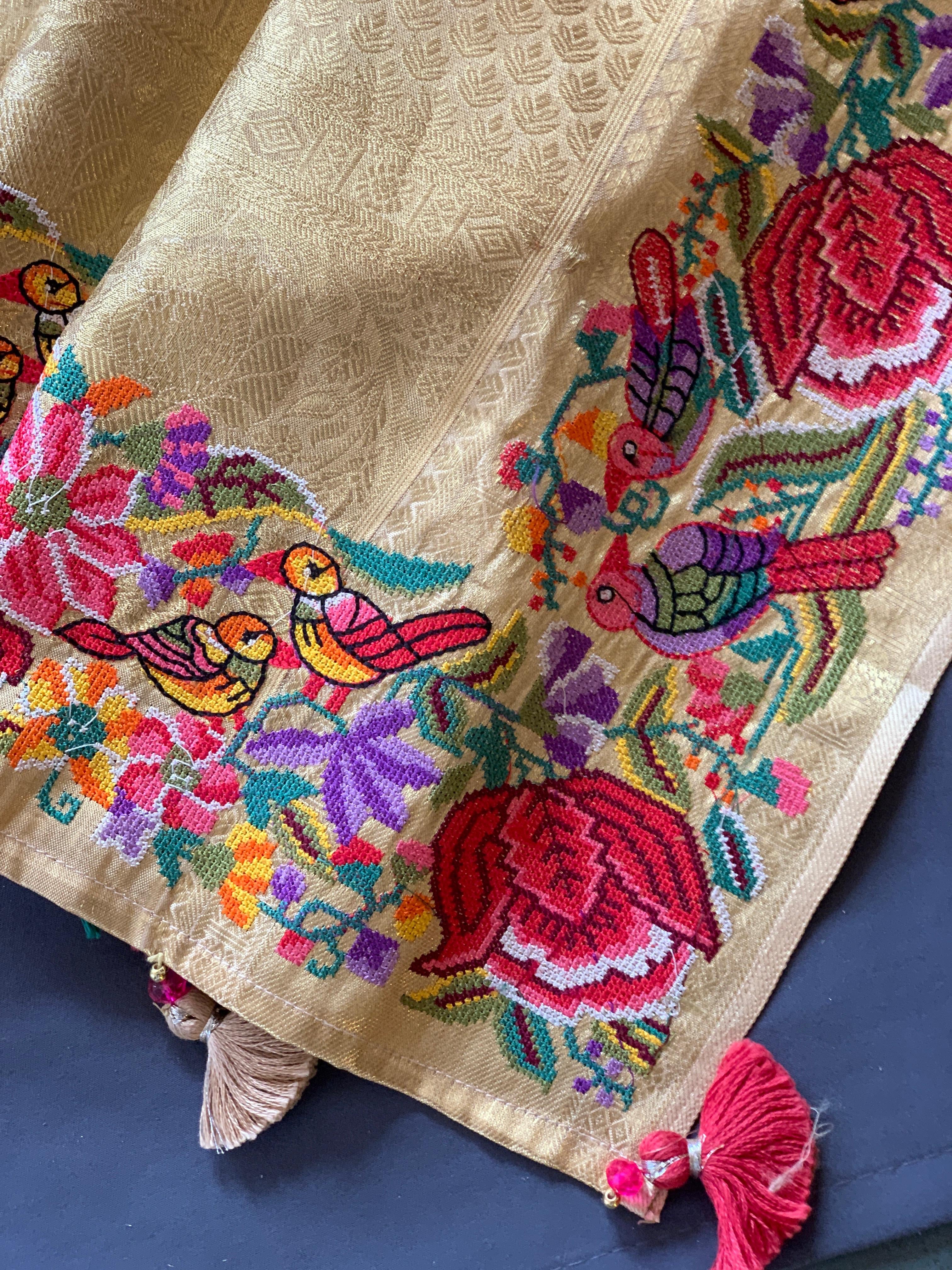 • Gold Kanjeevaram Tissue Sareewith petite point embroidery : S62F087