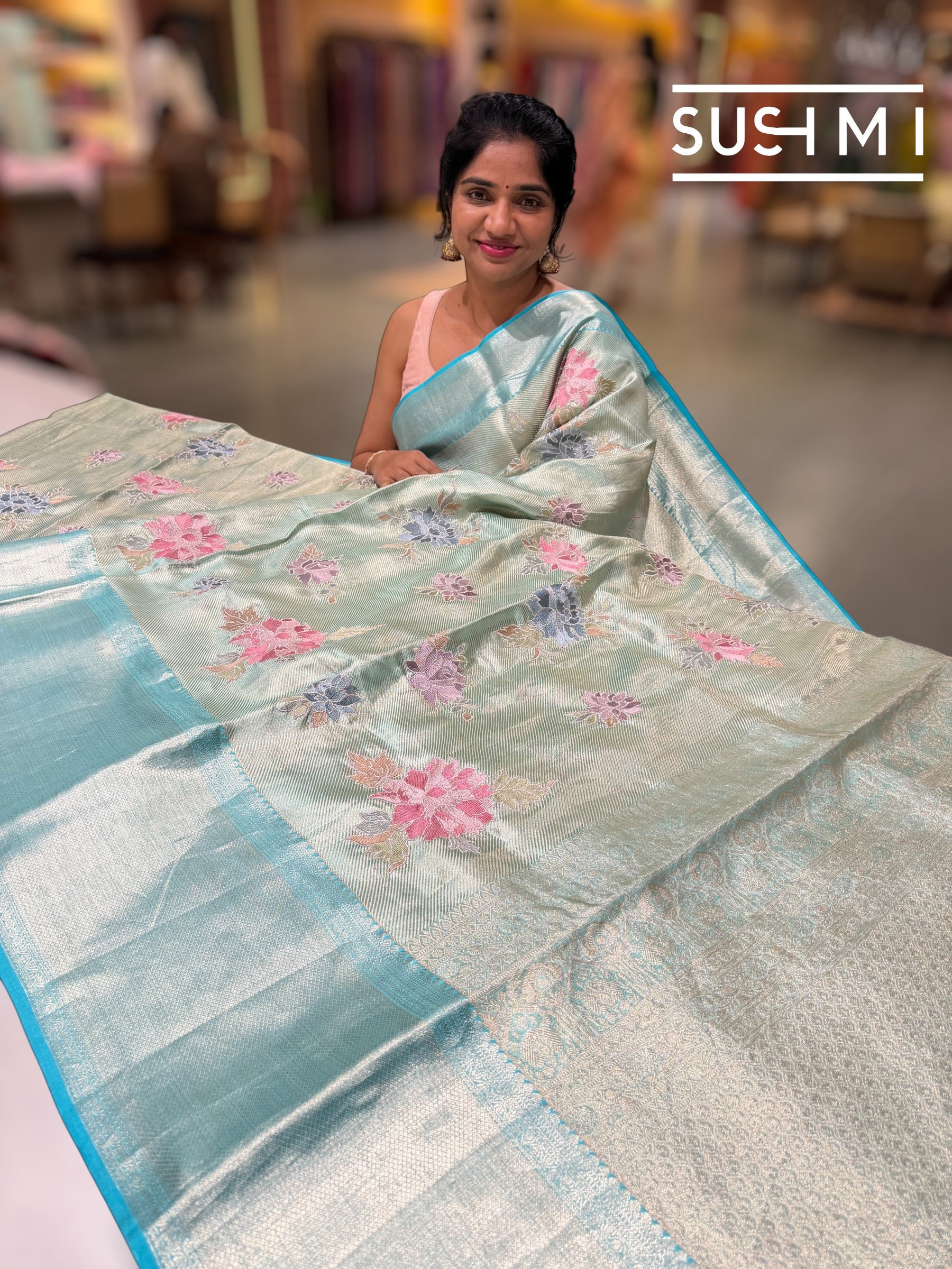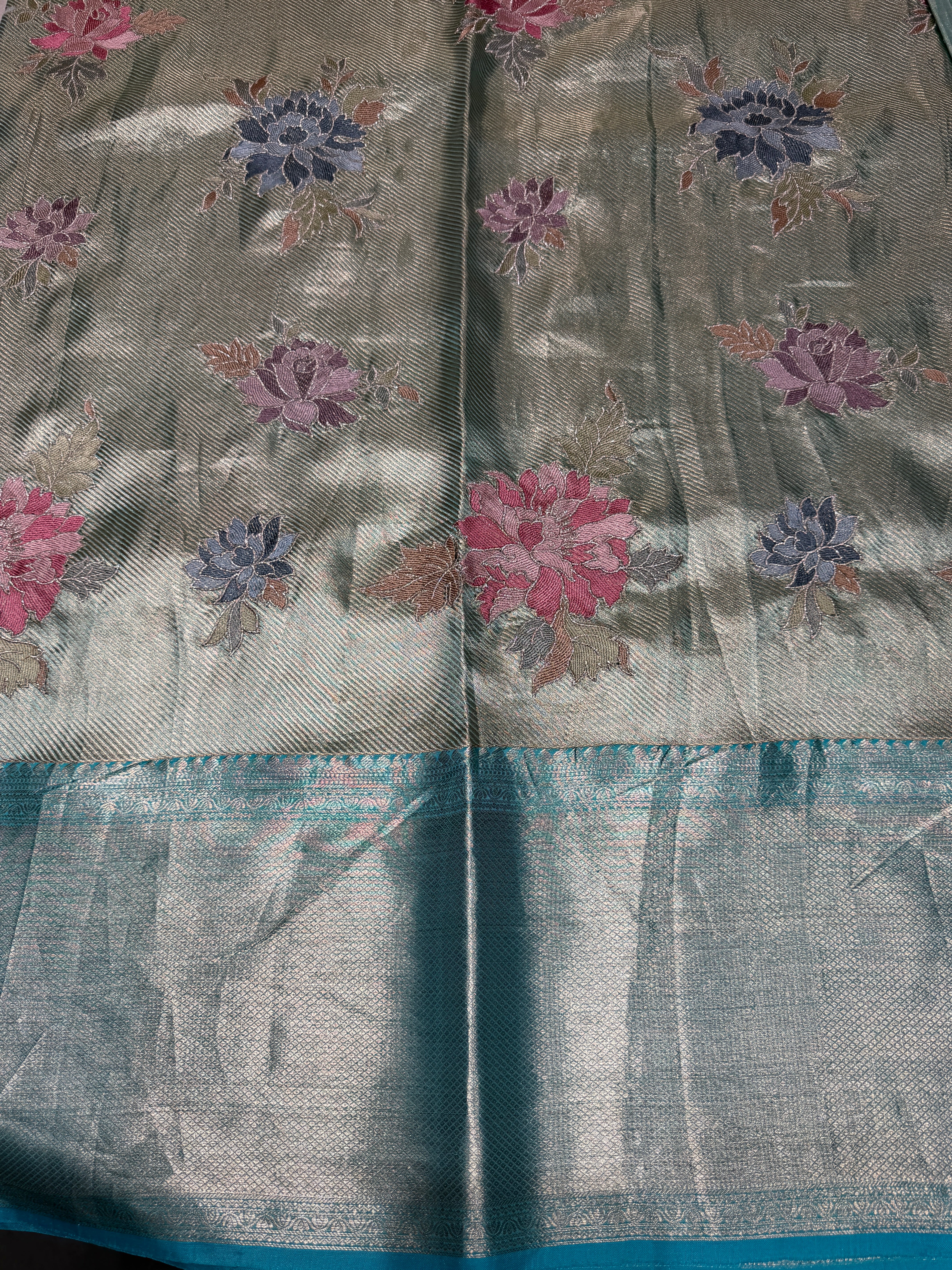 Blouse is self color plain tissue with borders