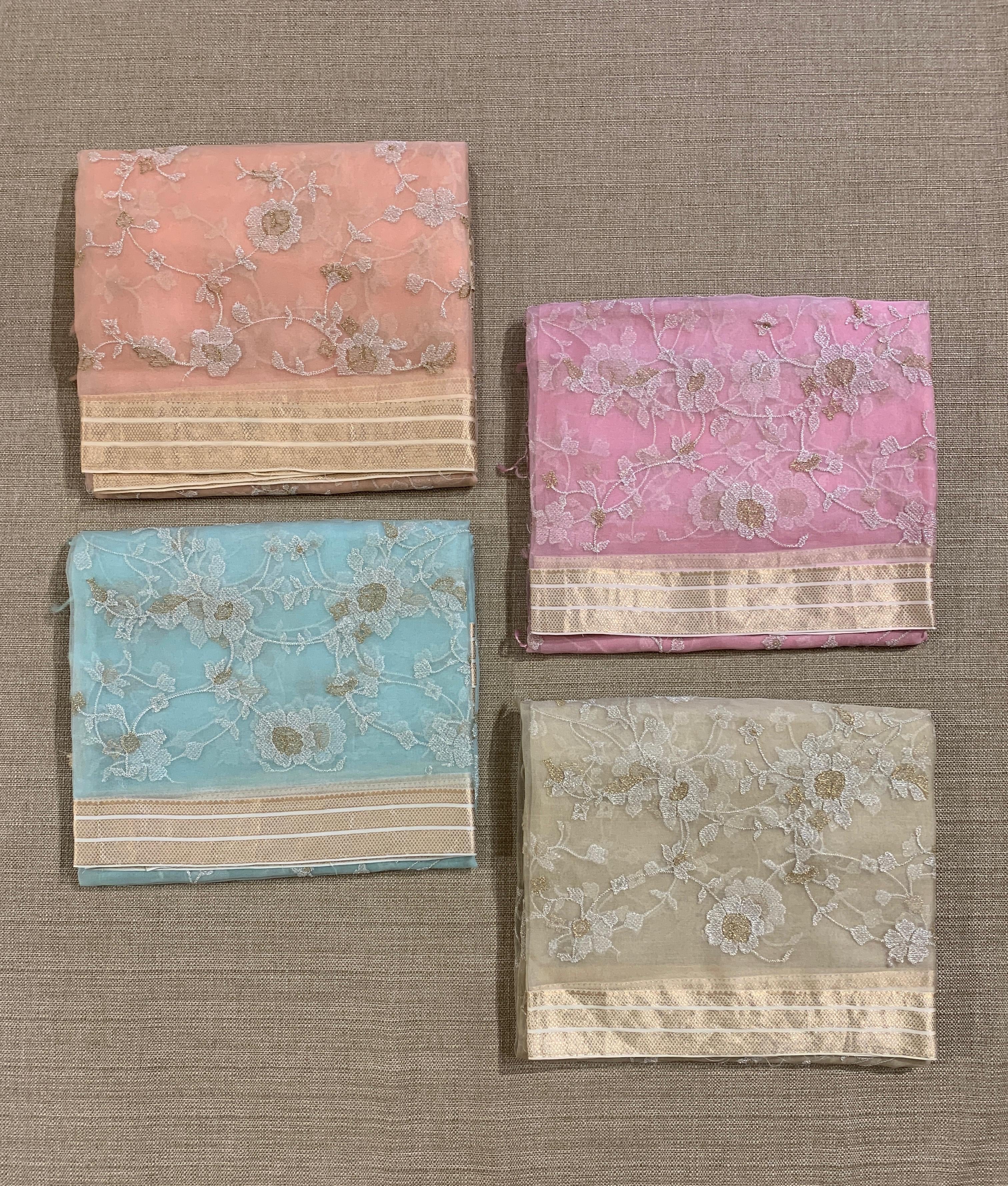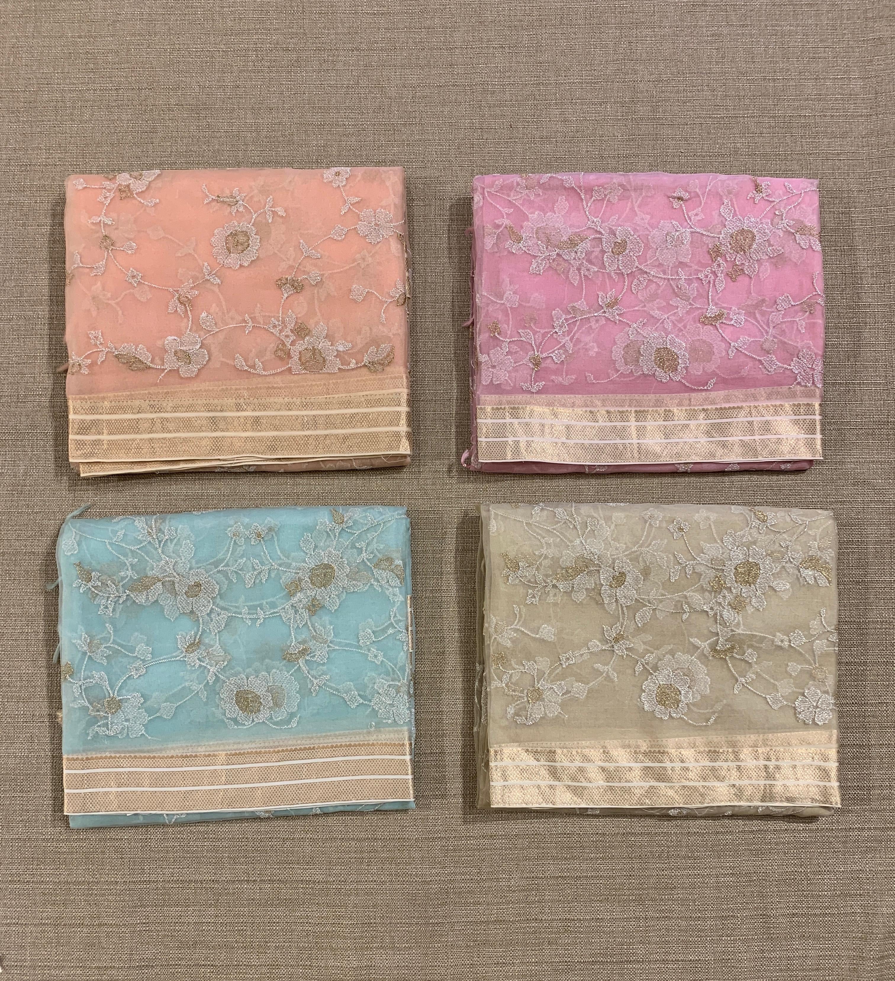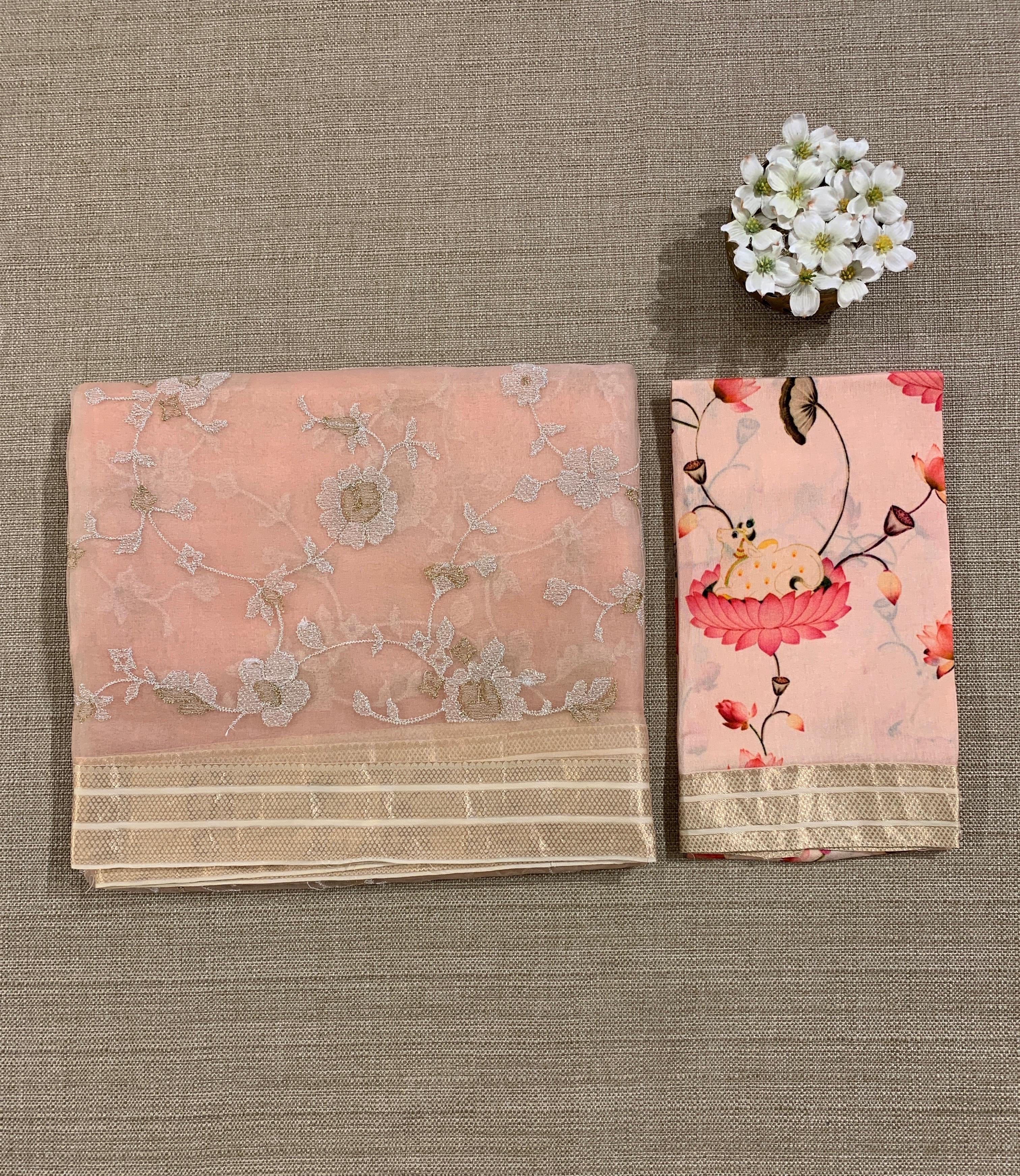 • Peach Muslin allover embroidered Saree with pichwai printed blosue