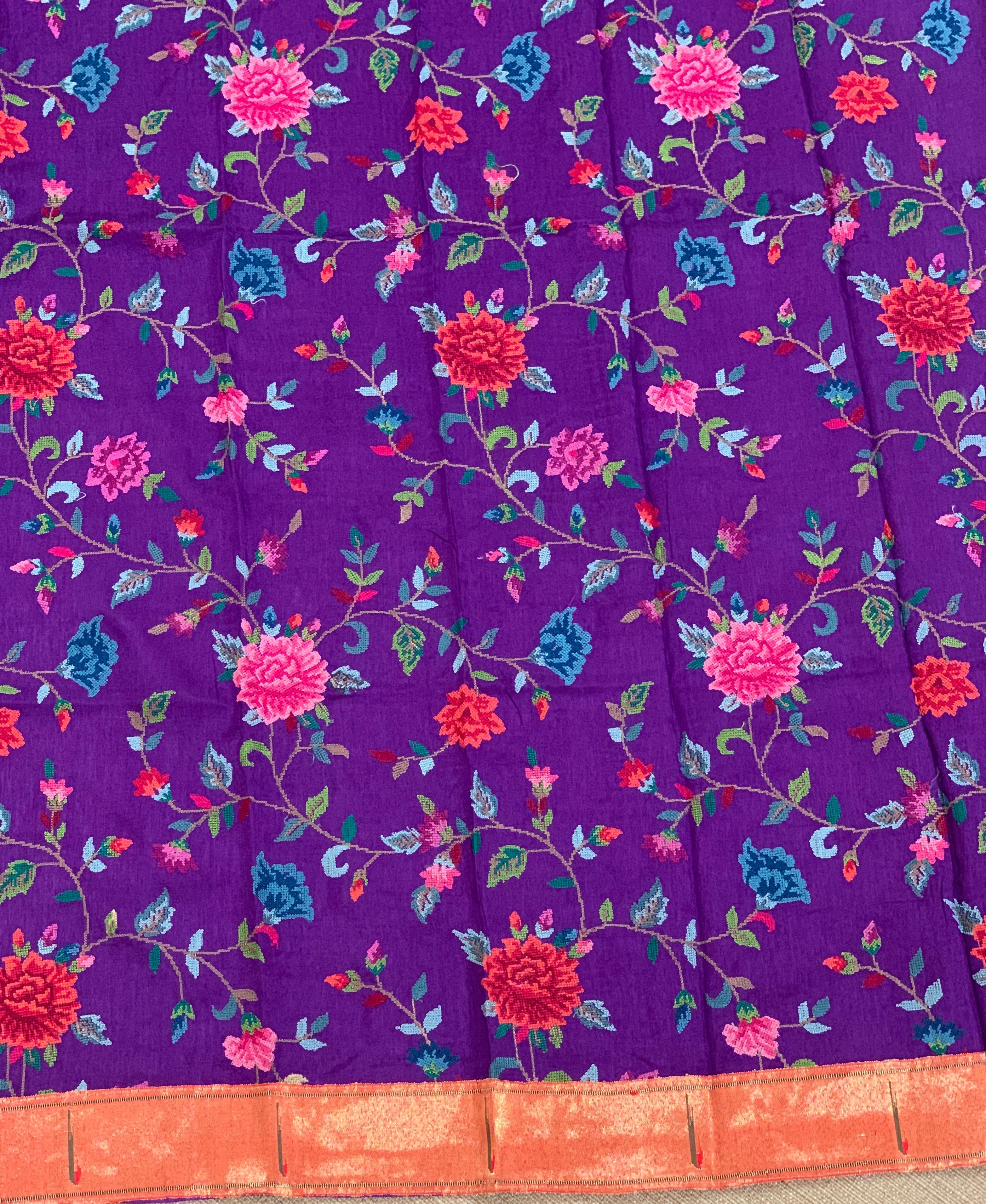 The saree is paired with a sheer organza blouse adorned with all-over petite point embroidery, finished with a pure handloom Paithani single muniya tissue border, adding a subtle yet regal touch to the ensemble.