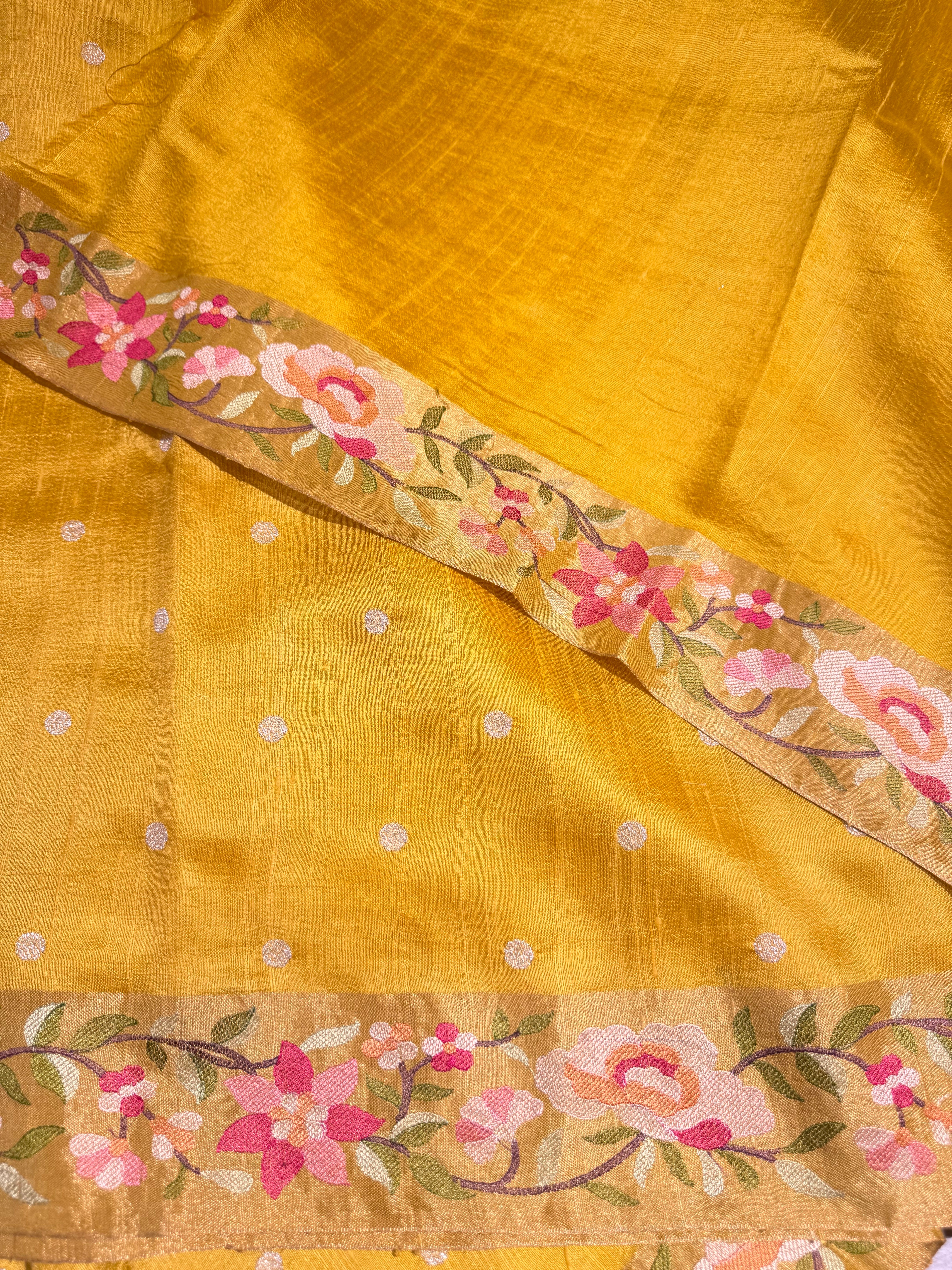 • Mango Yellow Raw Silk Saree with Embroidery