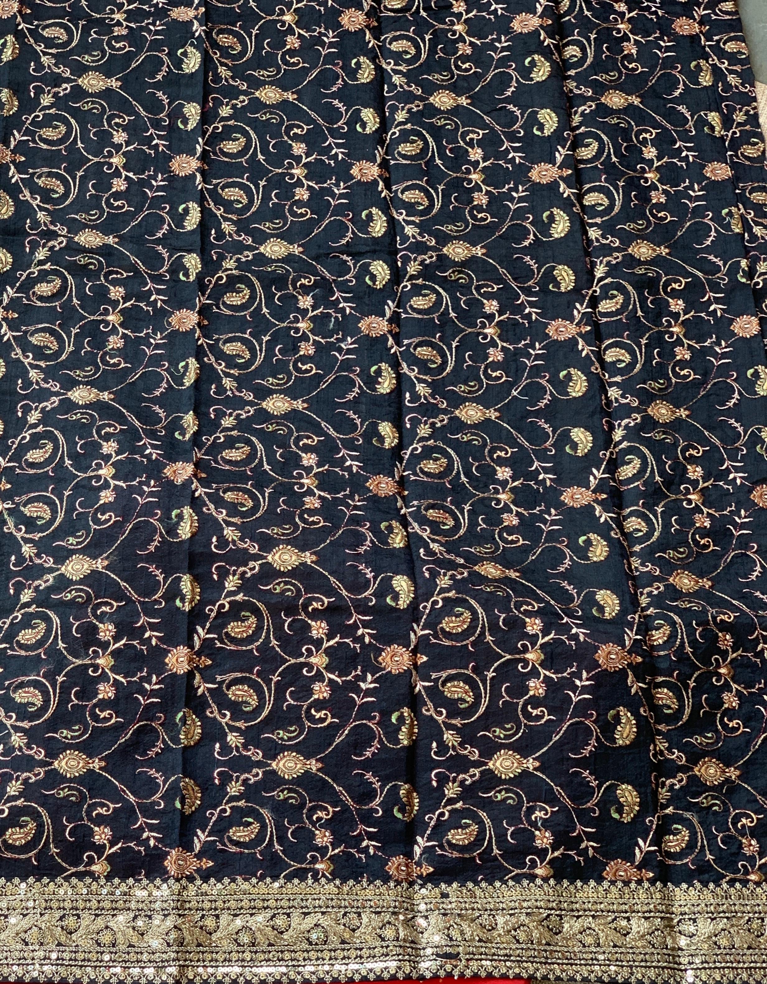 Paired with a black blouse with allover embroidery and hemlined with sabhyasachi borders