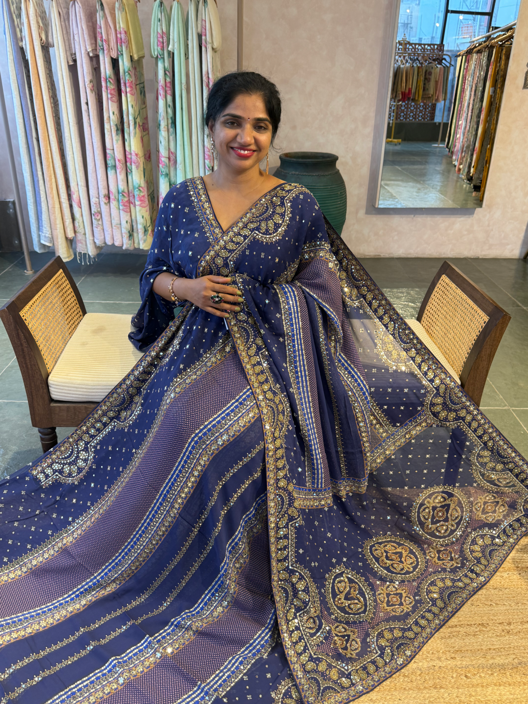 • Royal Blue Kareena Kapoor Inspired Gorgette Saree