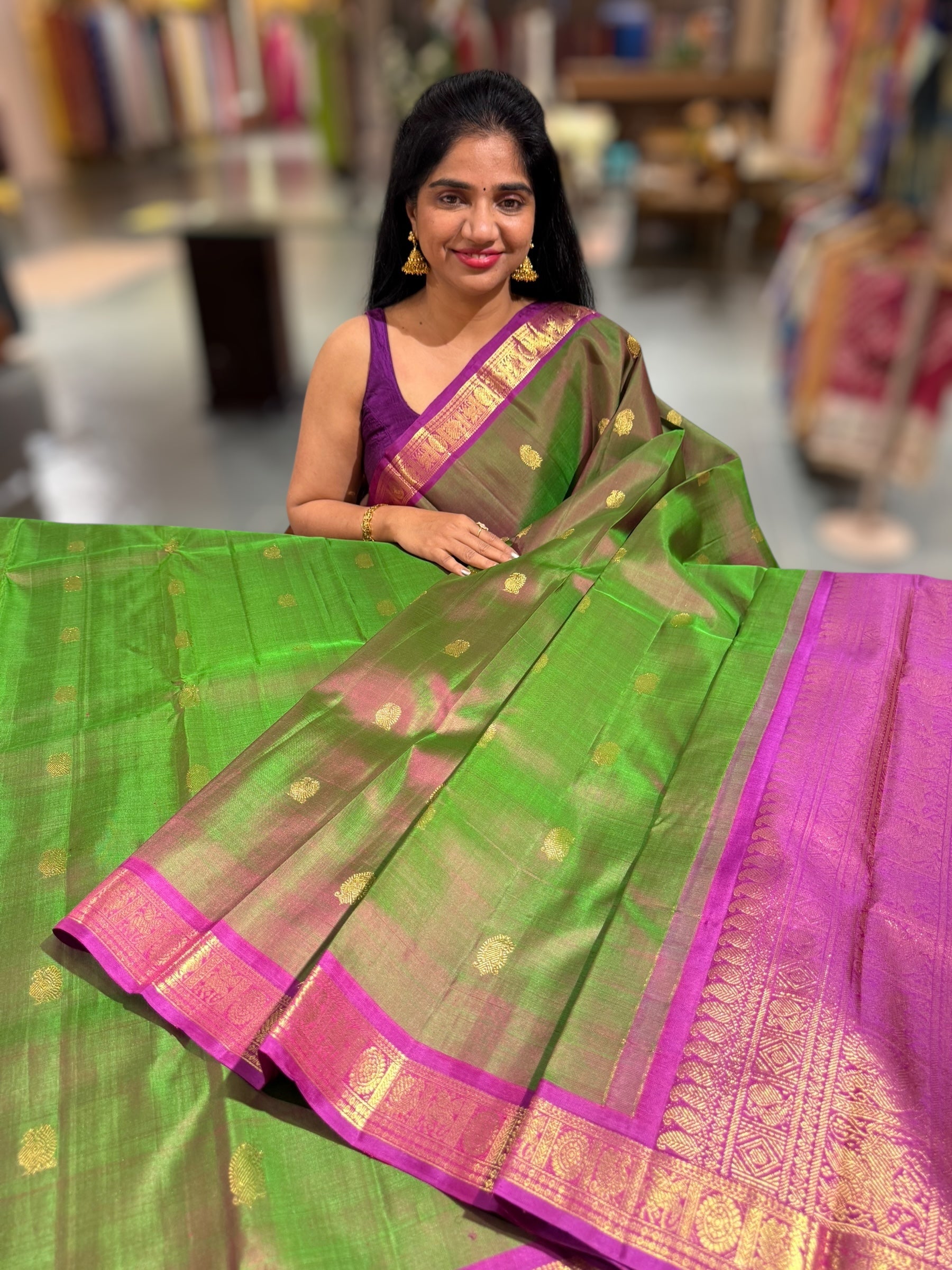• Leaf Green & Majenta Combo Vintage Kanjeevaram Saree