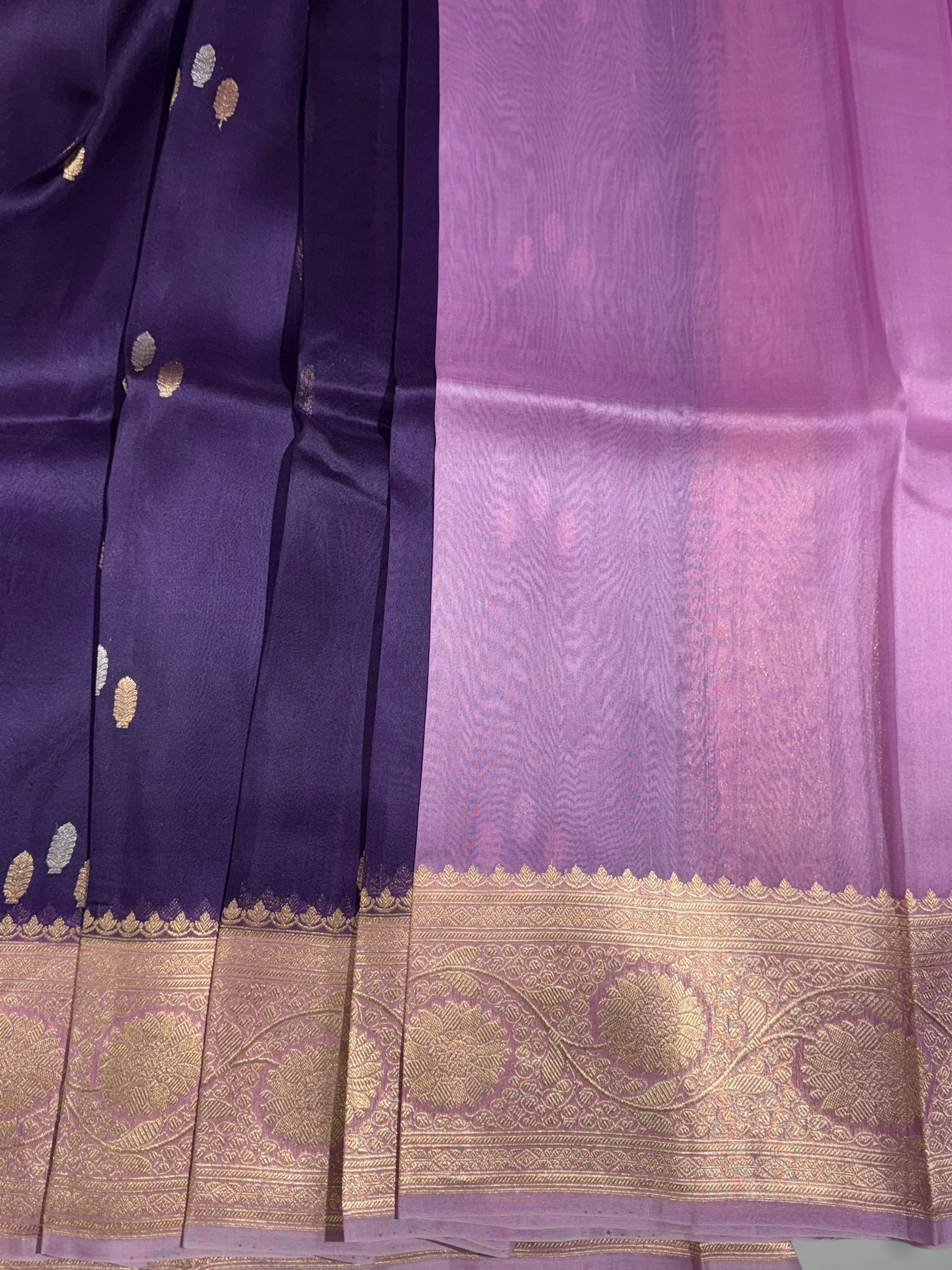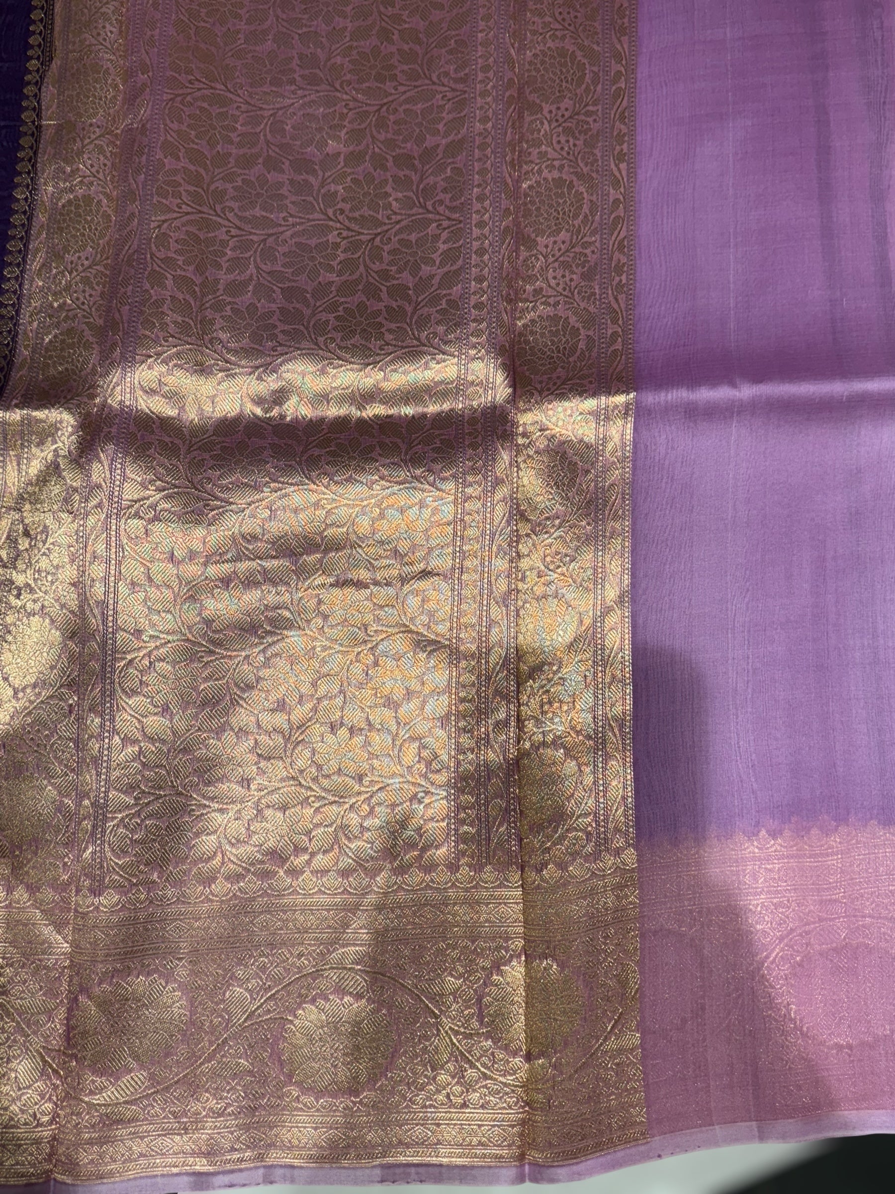 • Violet & Lilac Pure Handloom premium Kora Banarasi Saree