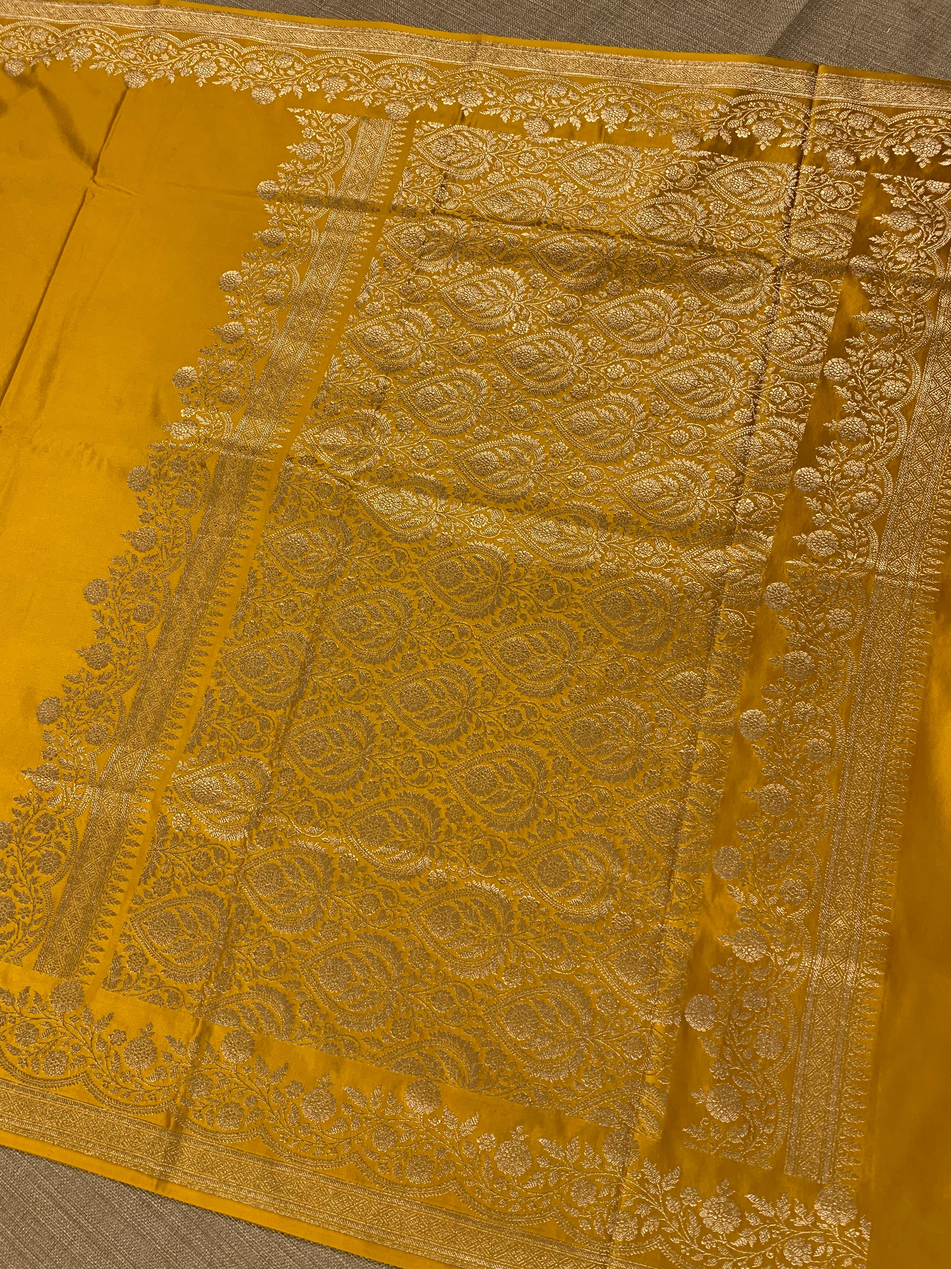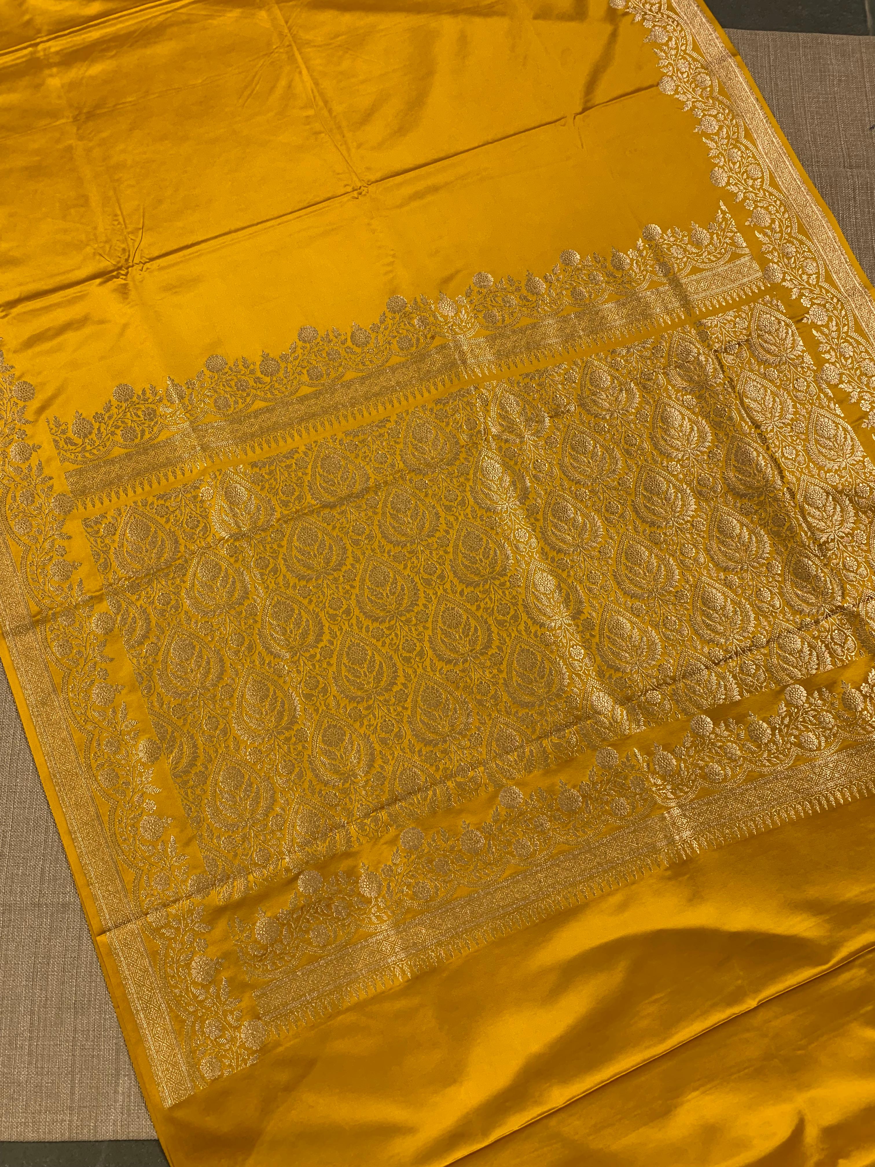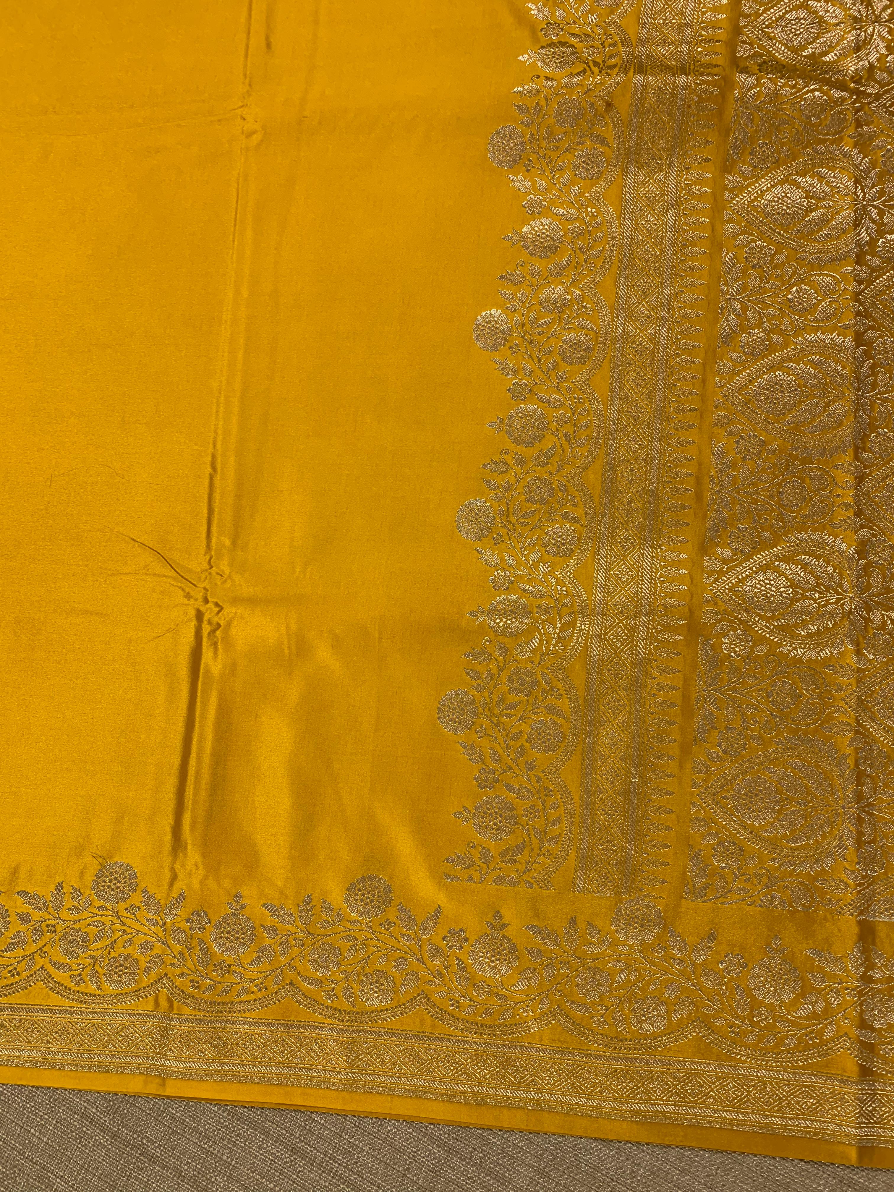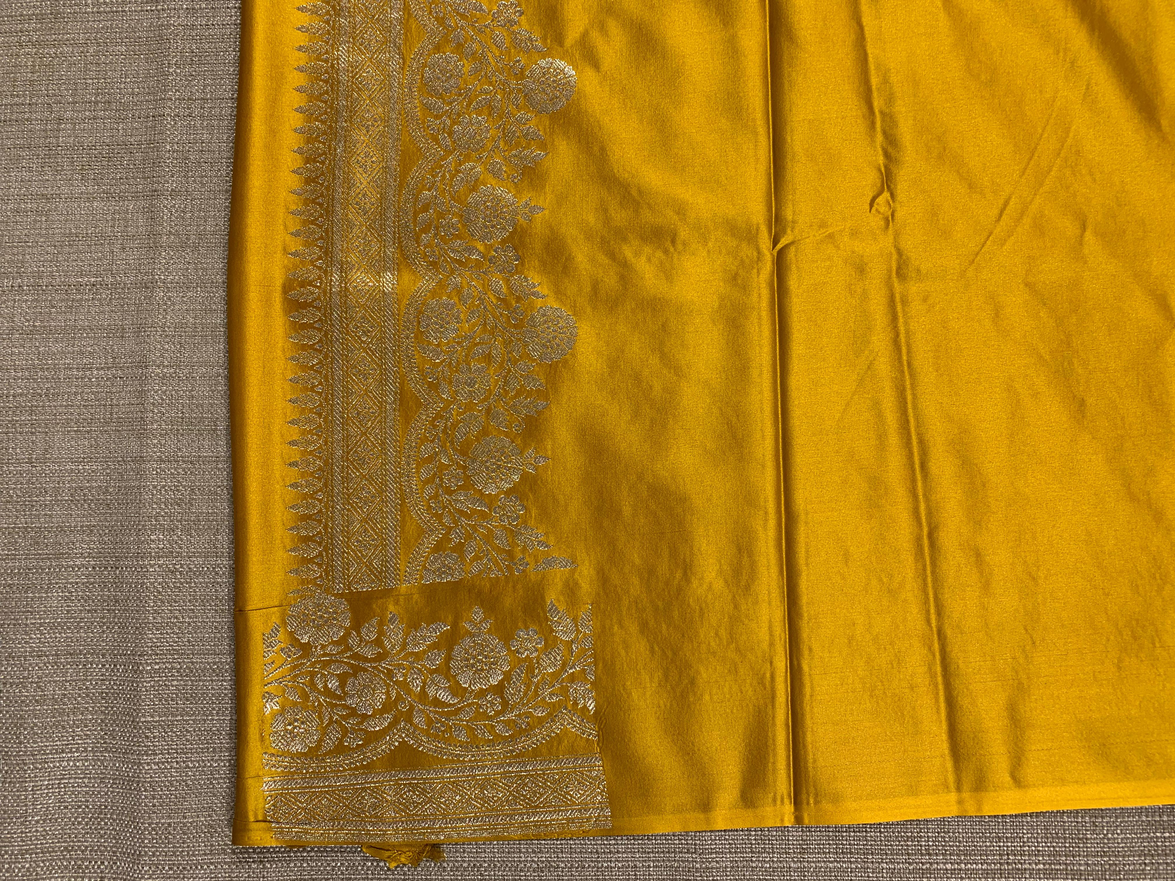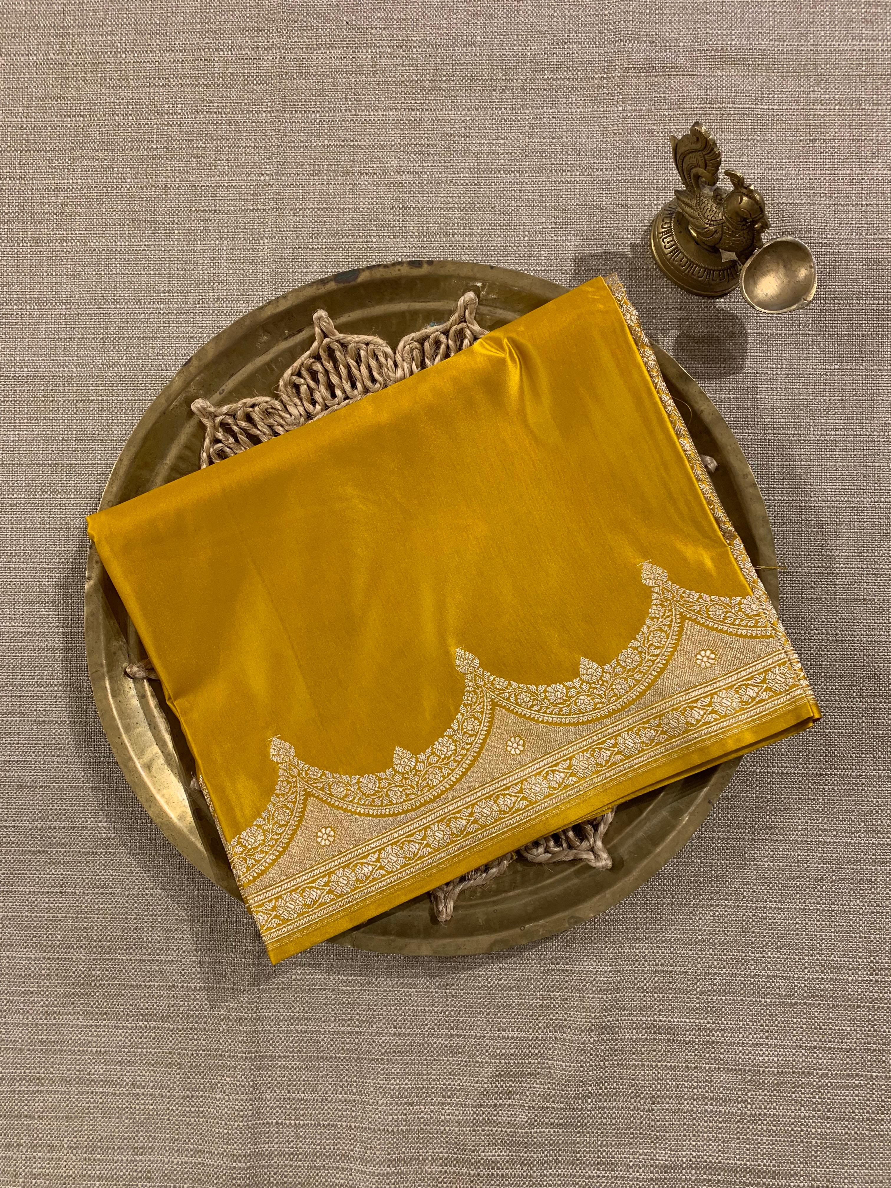 • SMSSA213 Yellow Mashru Silk Saree With Scallop Border
