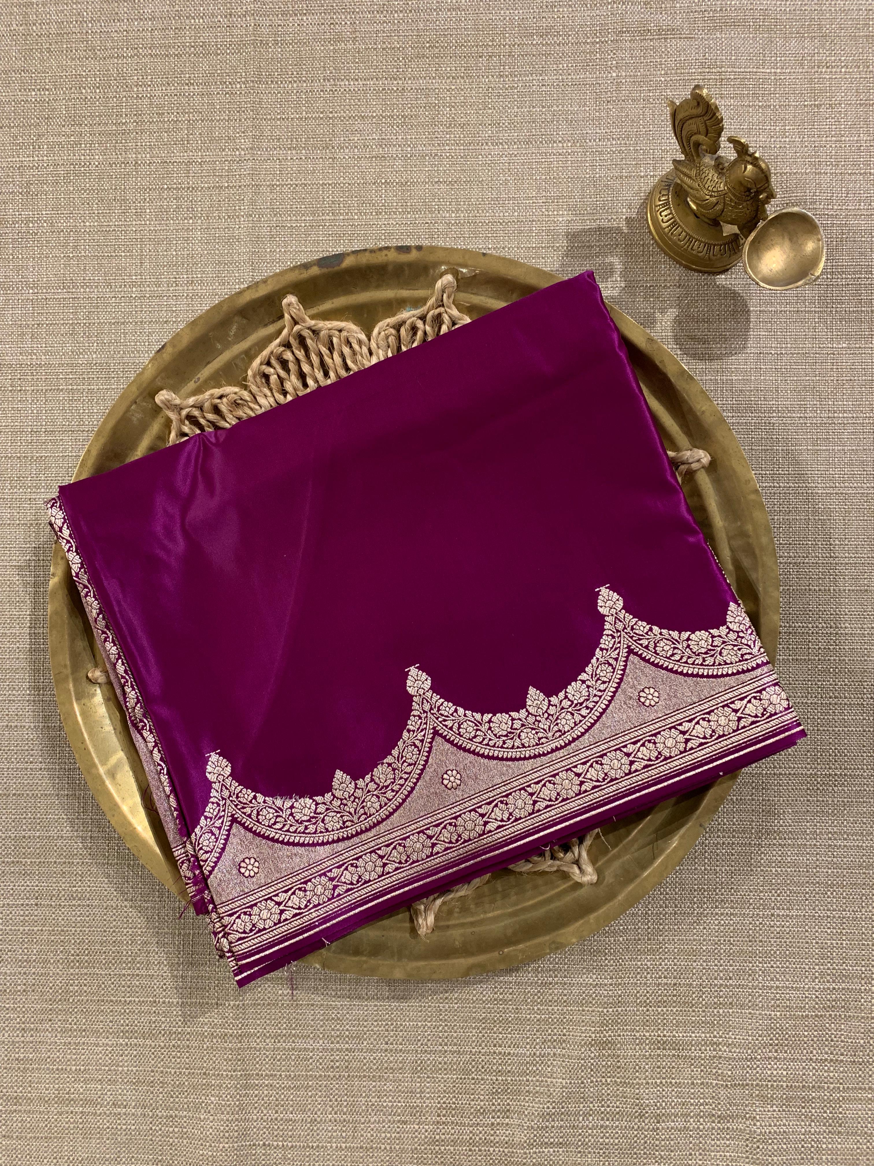 • SMSSA216 Wine Mashru Silk Saree With Scallop Border