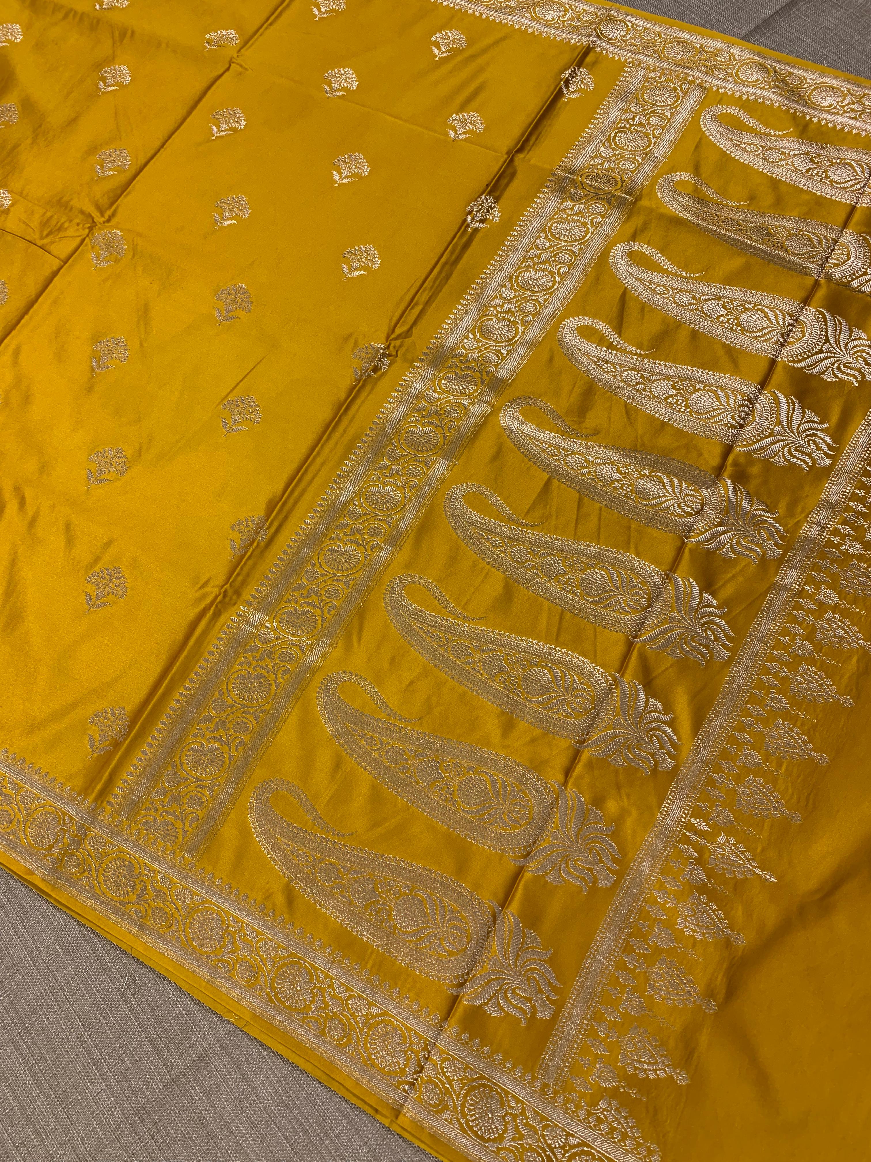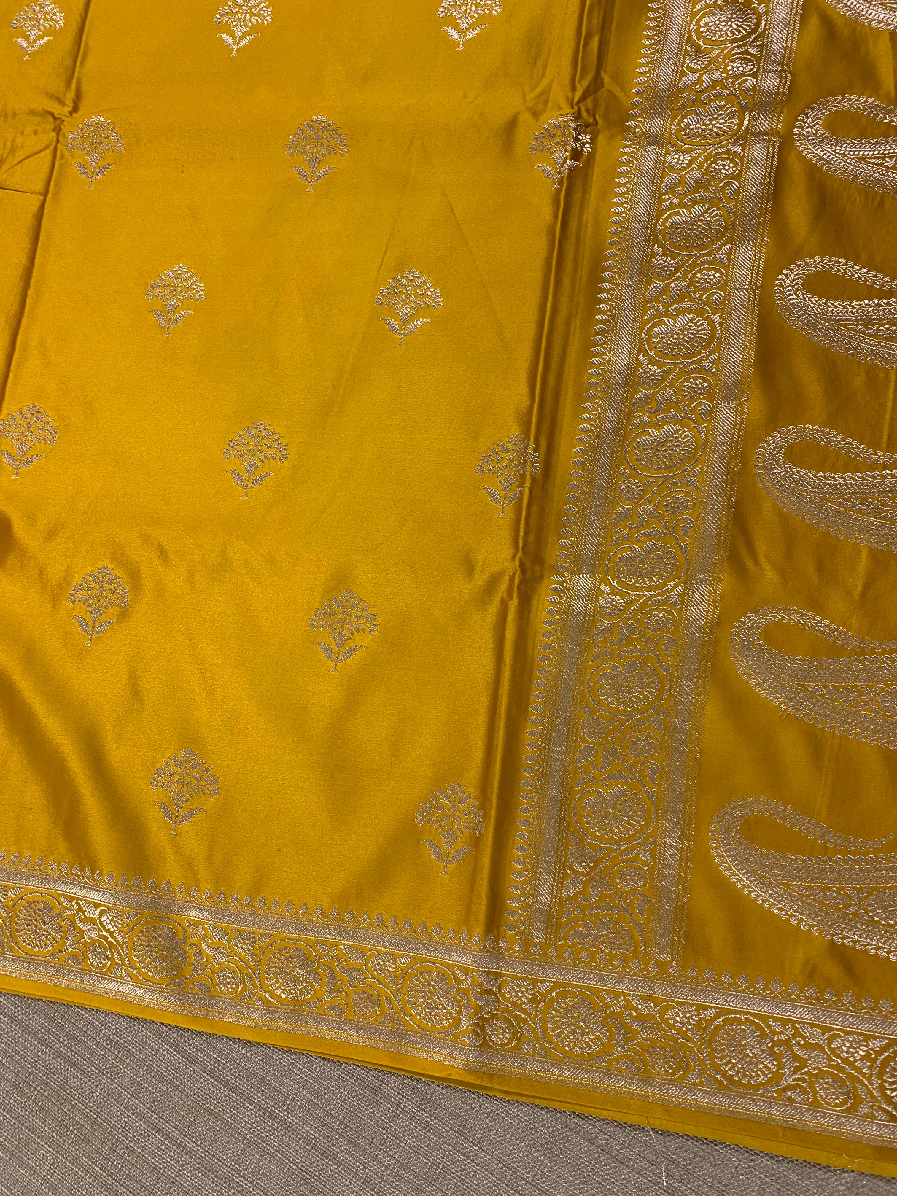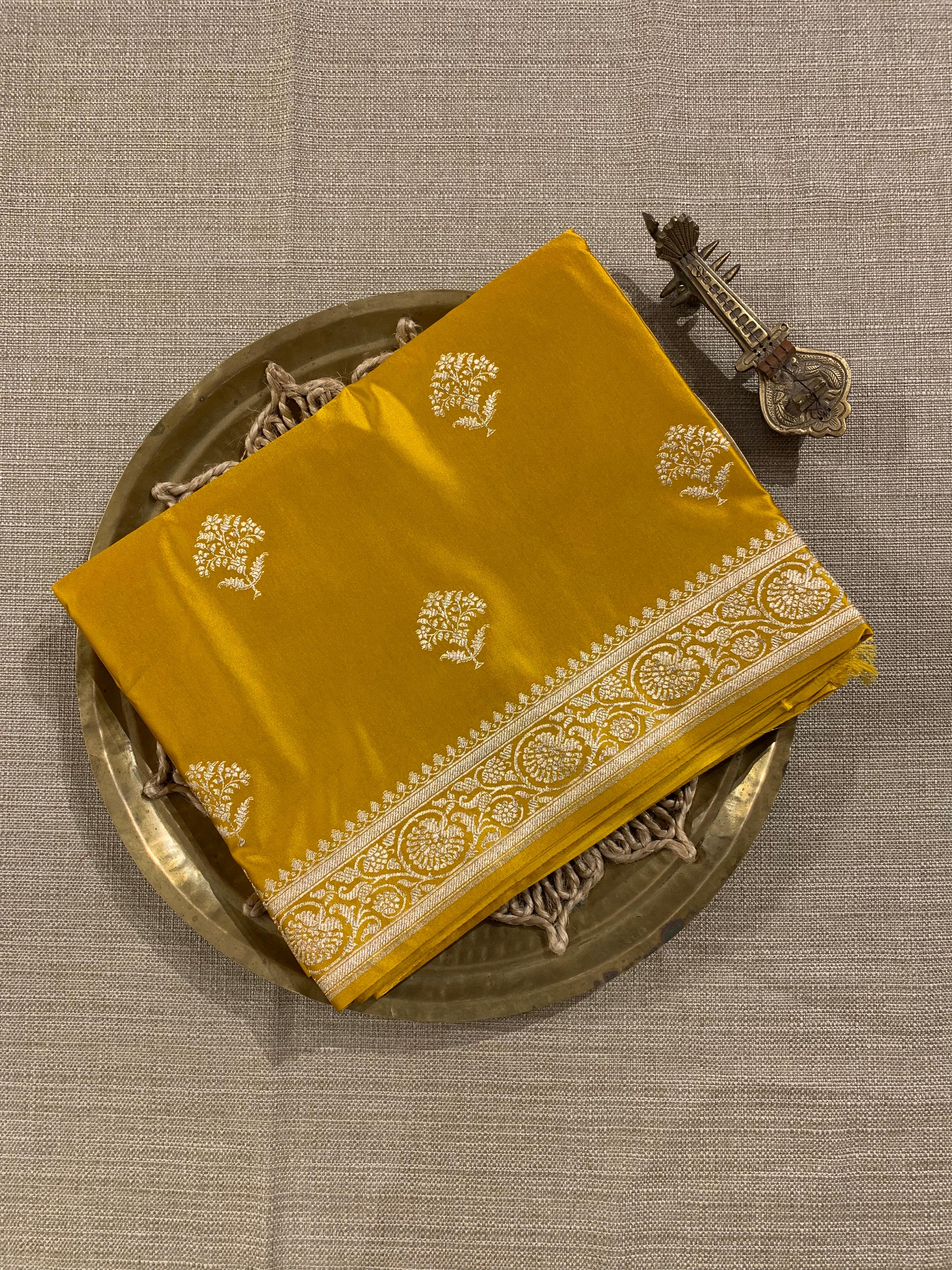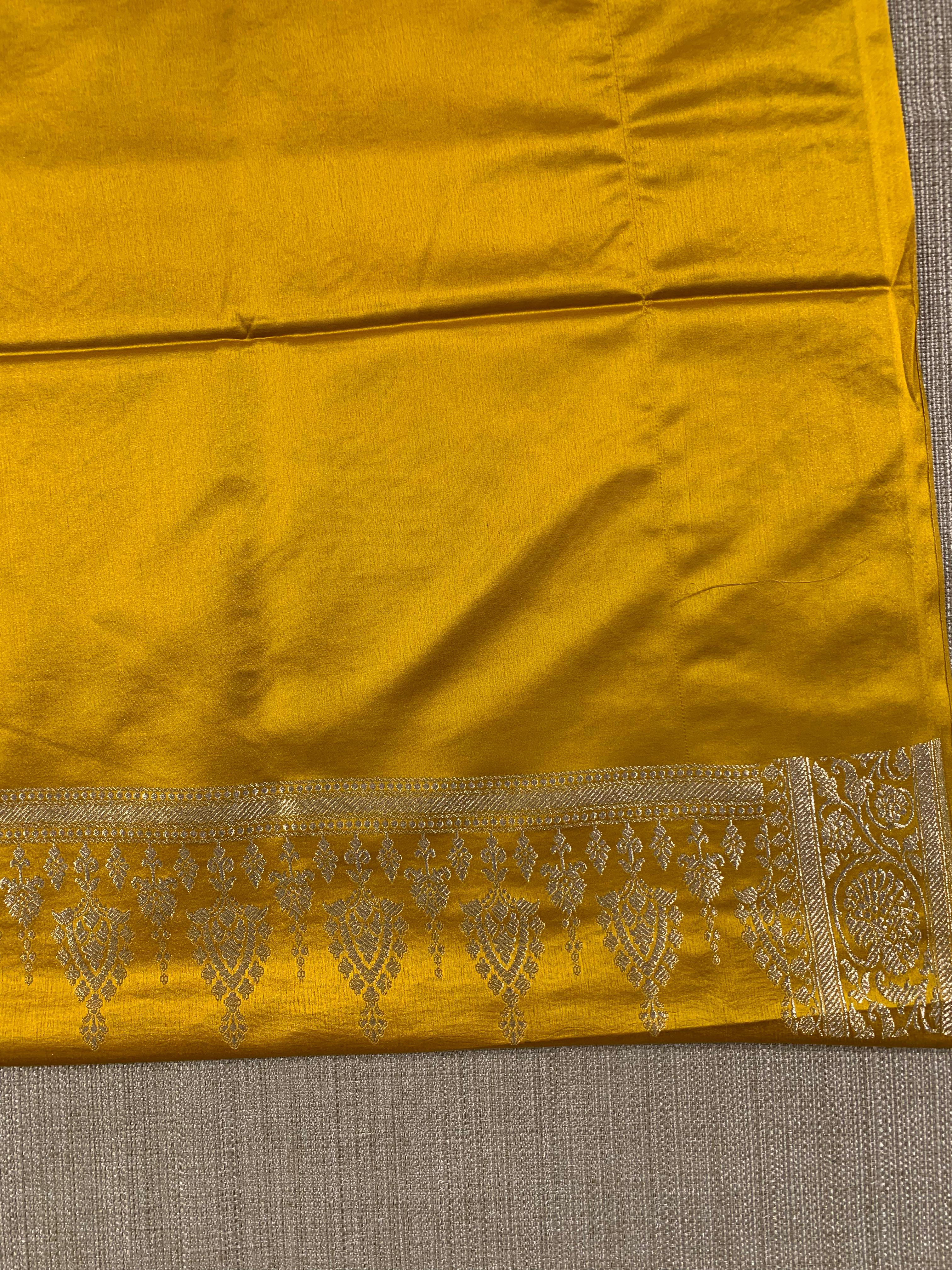 • SMSSA223 Yellow Mashru Silk Saree With Scallop Border