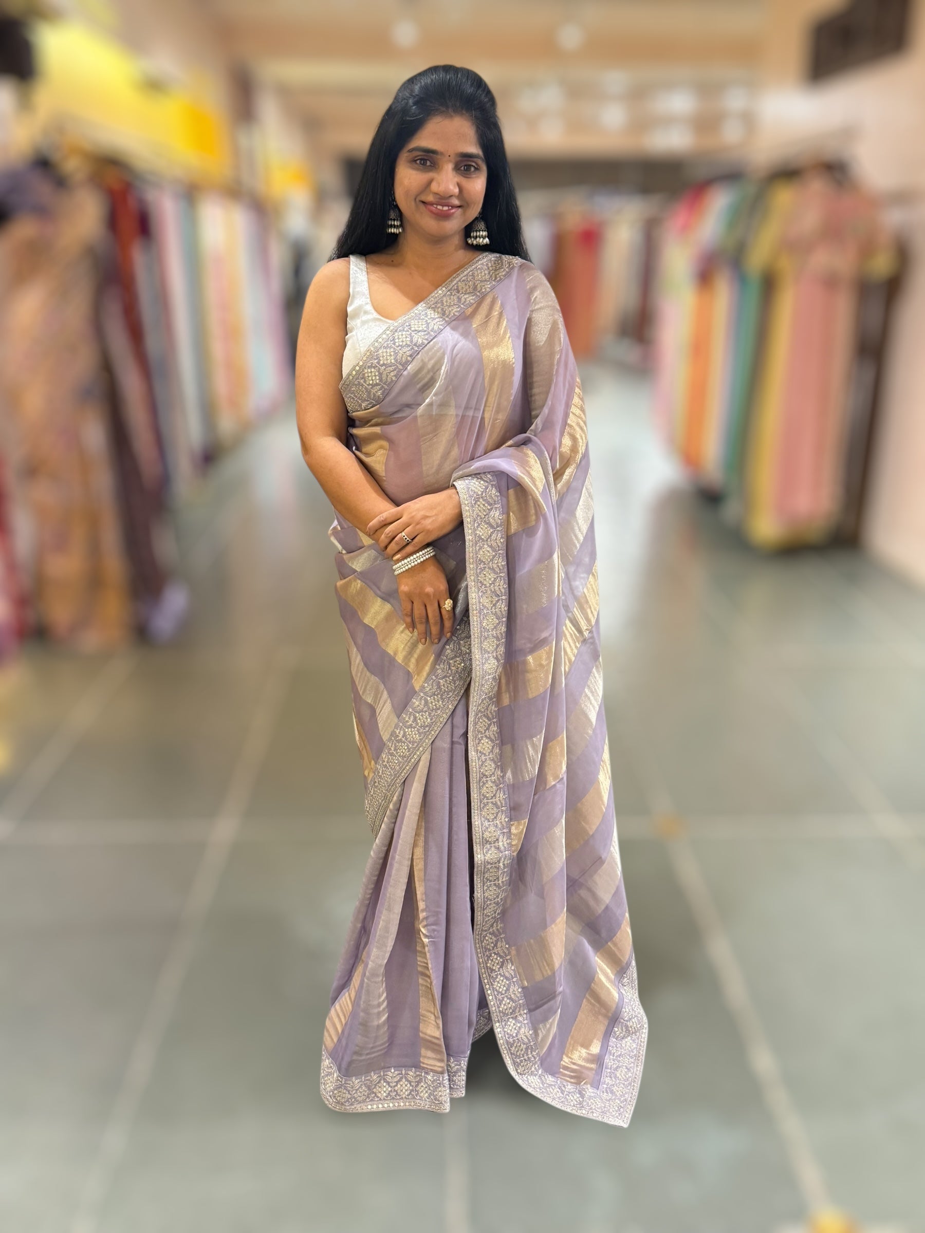 • Dusty Lilac kora tissue stripes saree