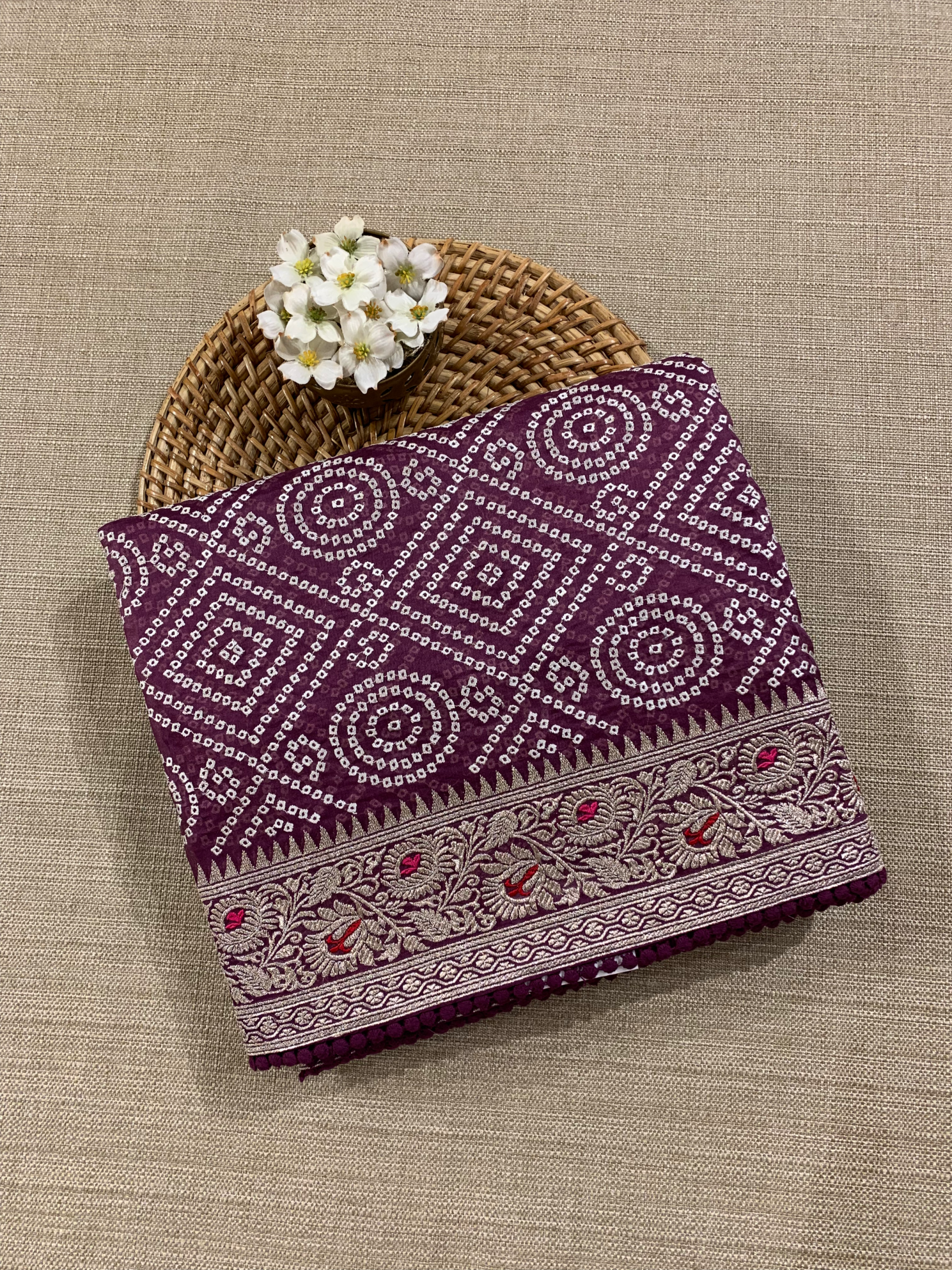 • SOBBM172 : Wine Organza Banarasi with Bandhini Look Allover Embroidery