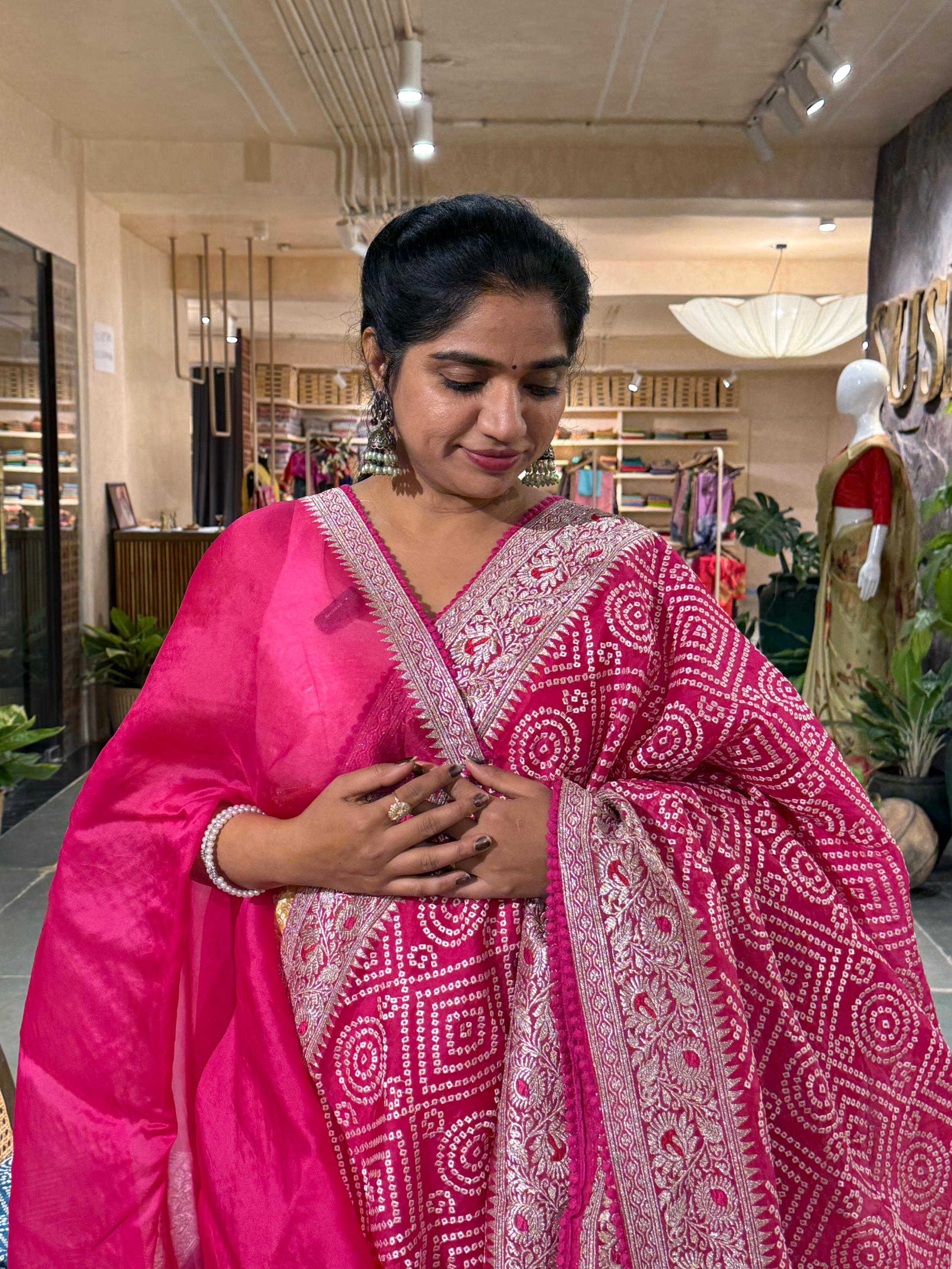 • SOBBM177: Rani Organza Banarasi with Bandhini Look Allover Embroidery
