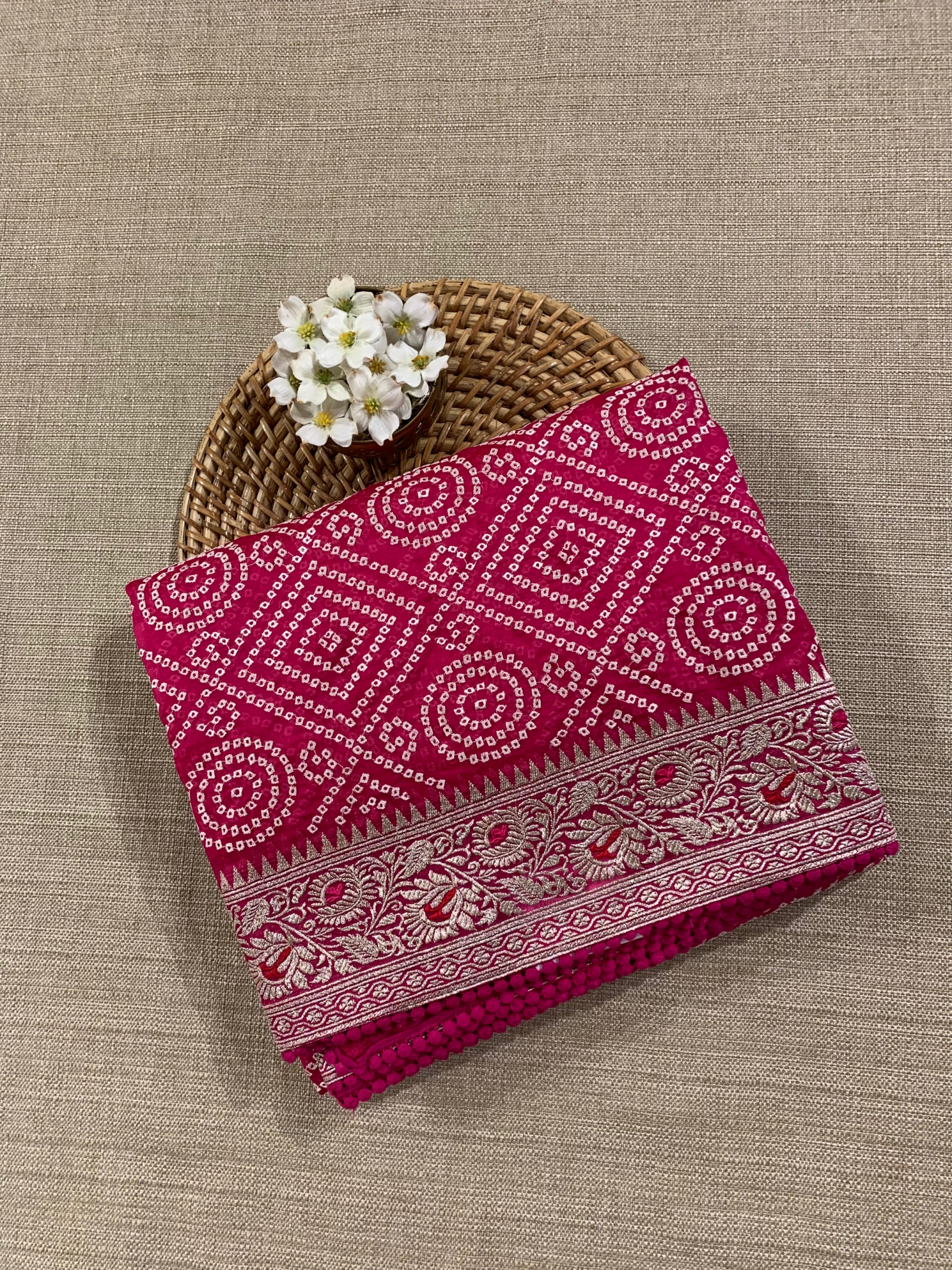 Organza Banarasi Saree with beaitiful tissue banarasi borders with meenakari and Bandhini Look thread Embroidery allover the saree .