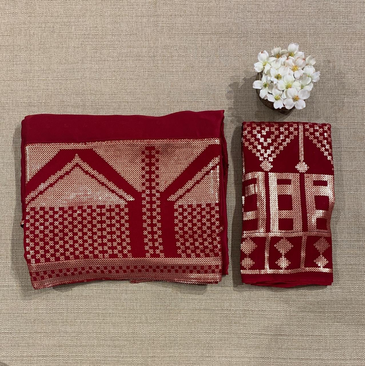 • Dark Pink Pure Satin Saree with designer sequence border and blouse