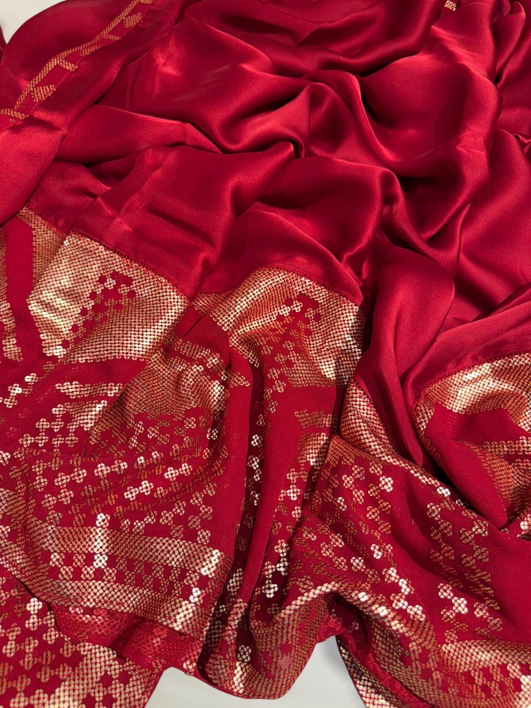 • Red pure Satin Saree with designer sequence border and blouse