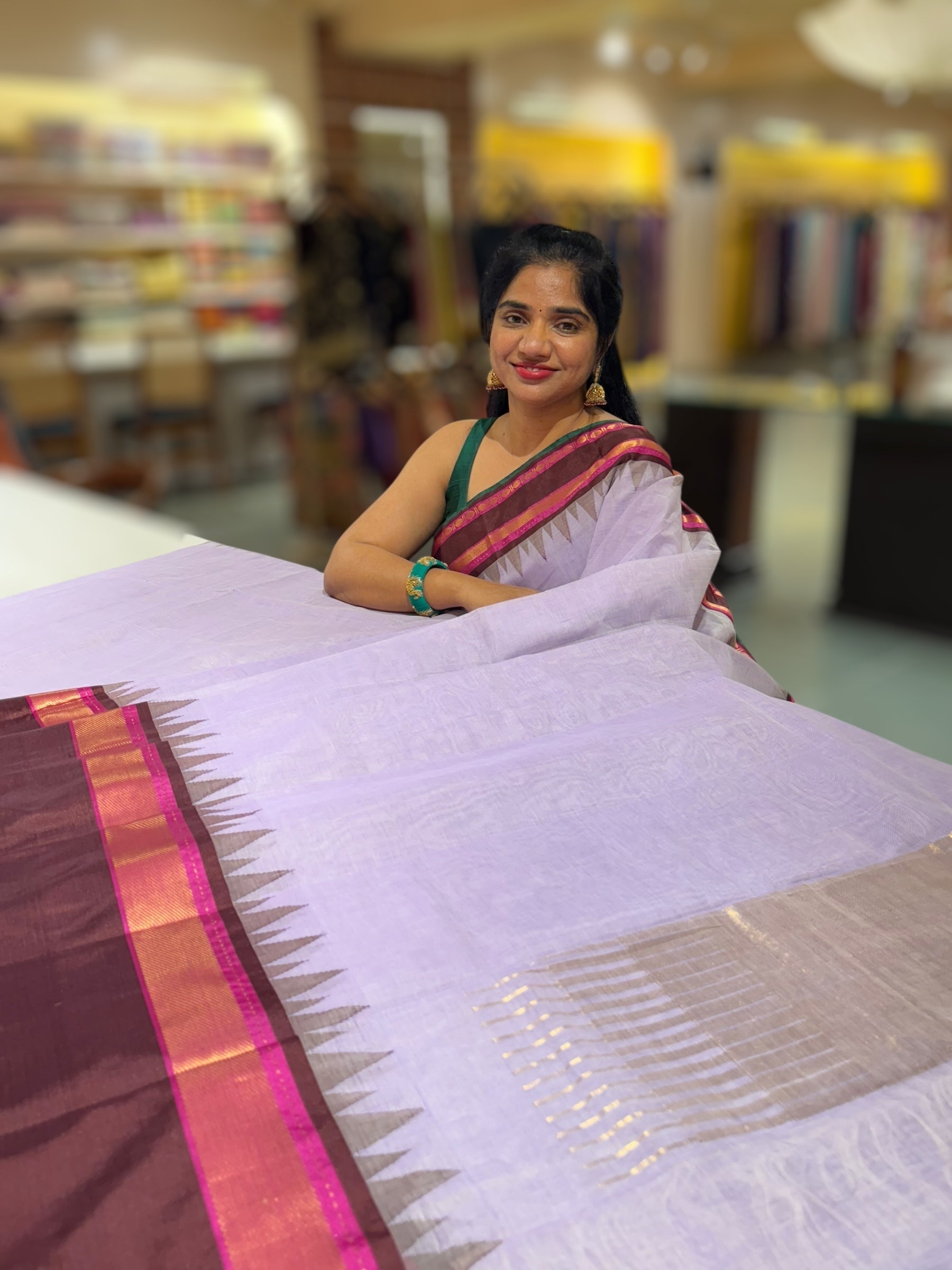 • Ponduru Khadi Saree in 80’s Count with Kanchi Style borders