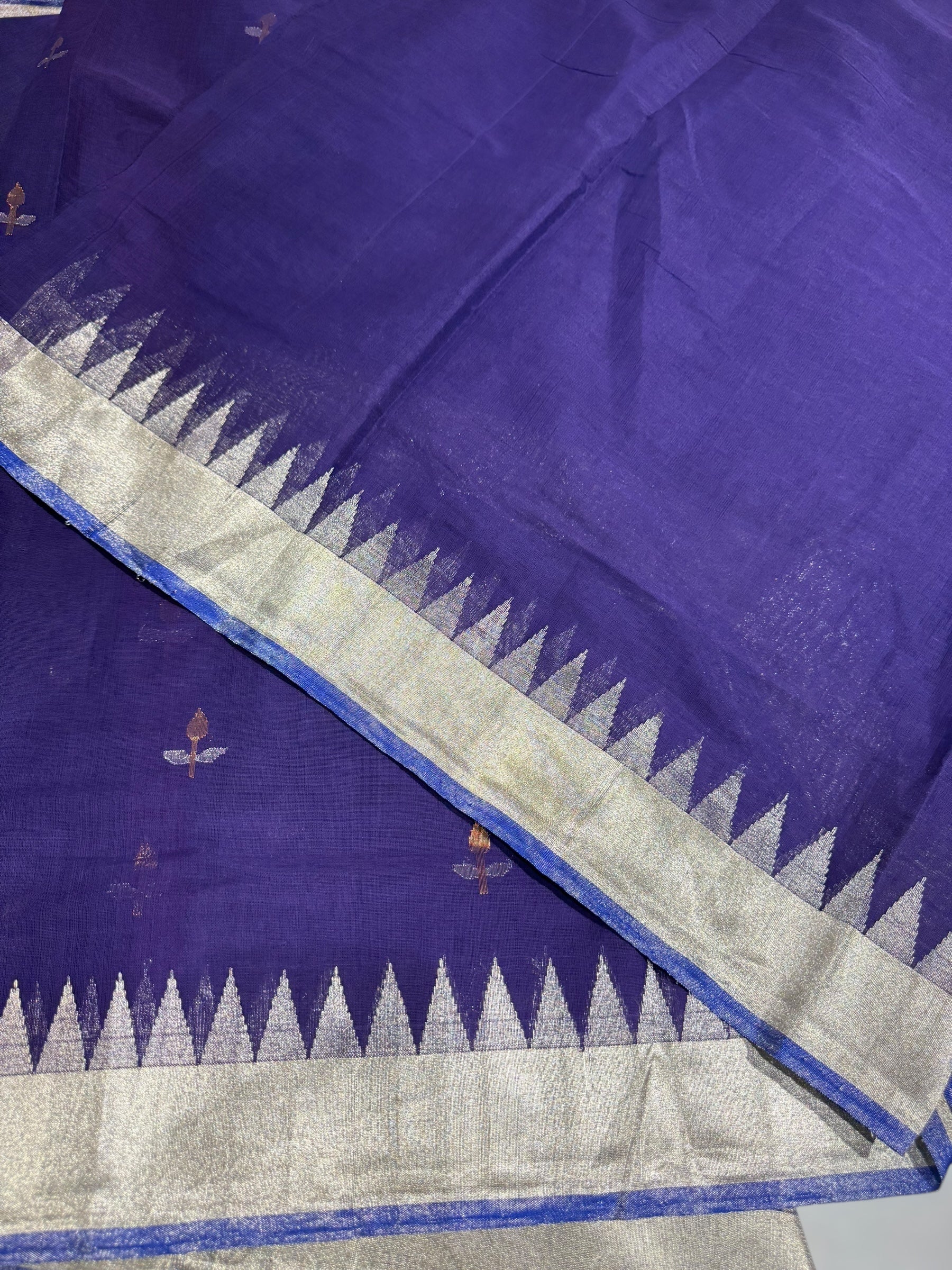 • Violet Pure handloom Ponduru Khadi jamdani Saree with designer pallu