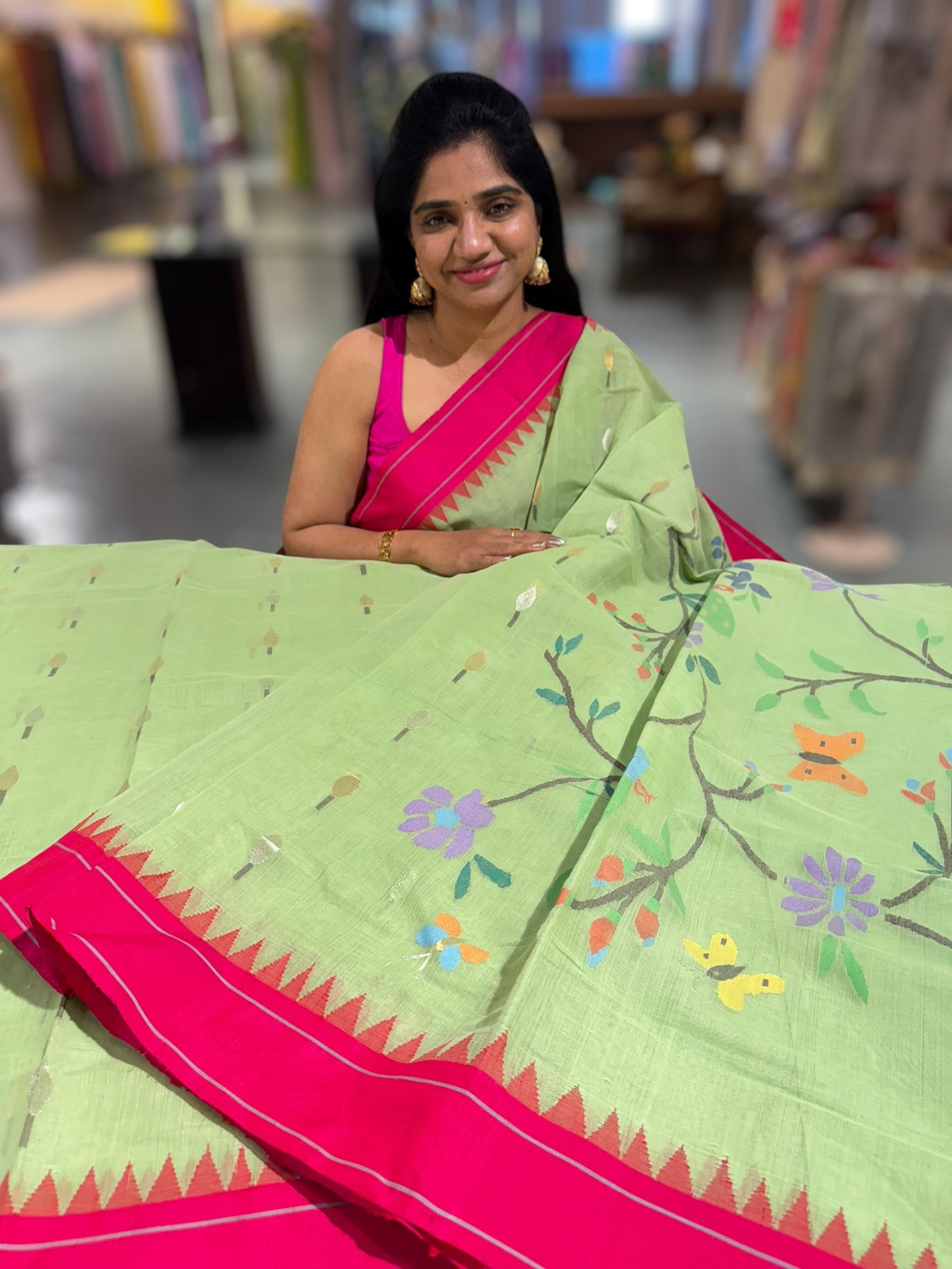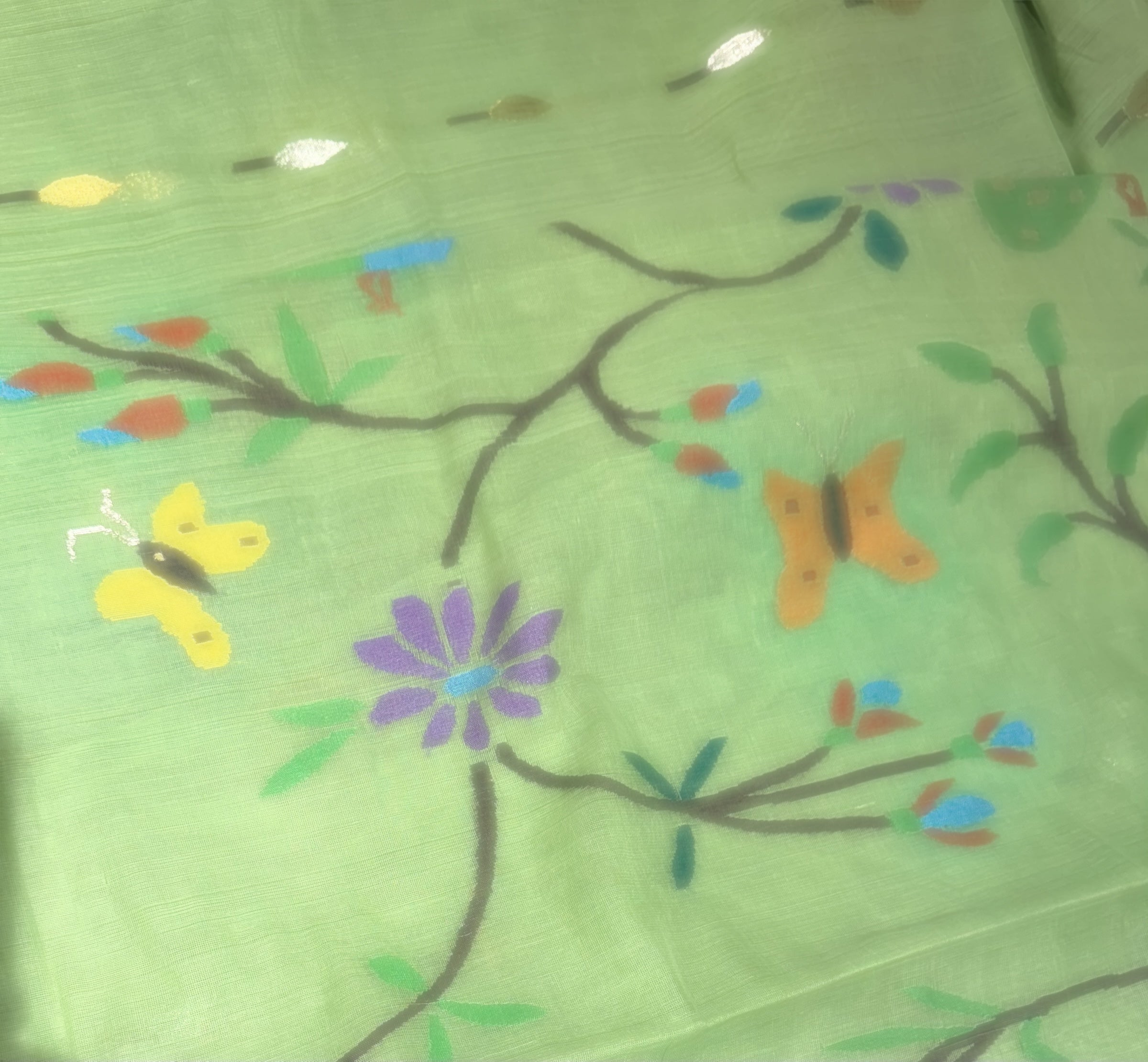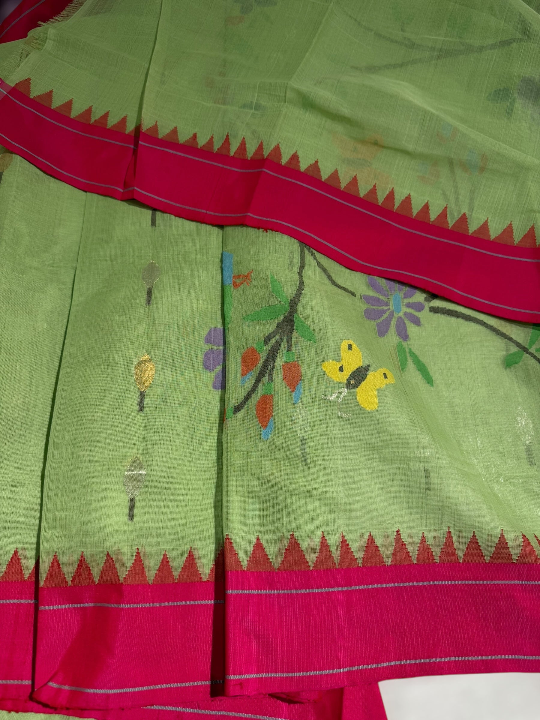 • Pista Green pure handloom Ponduru Khadi jamdani Saree