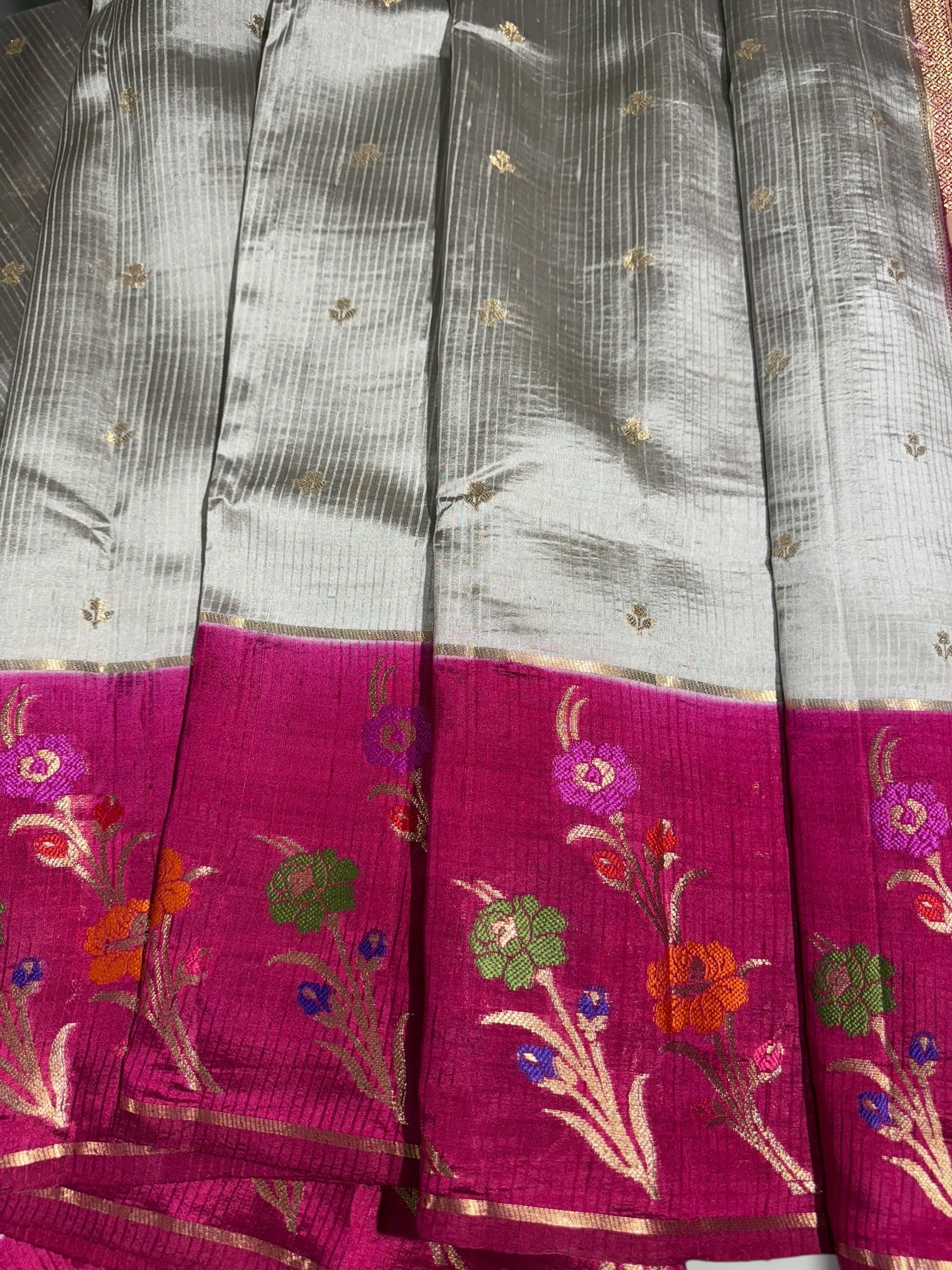Raw mango silk saree With meenakari borders . Blouse is in border color with borders .