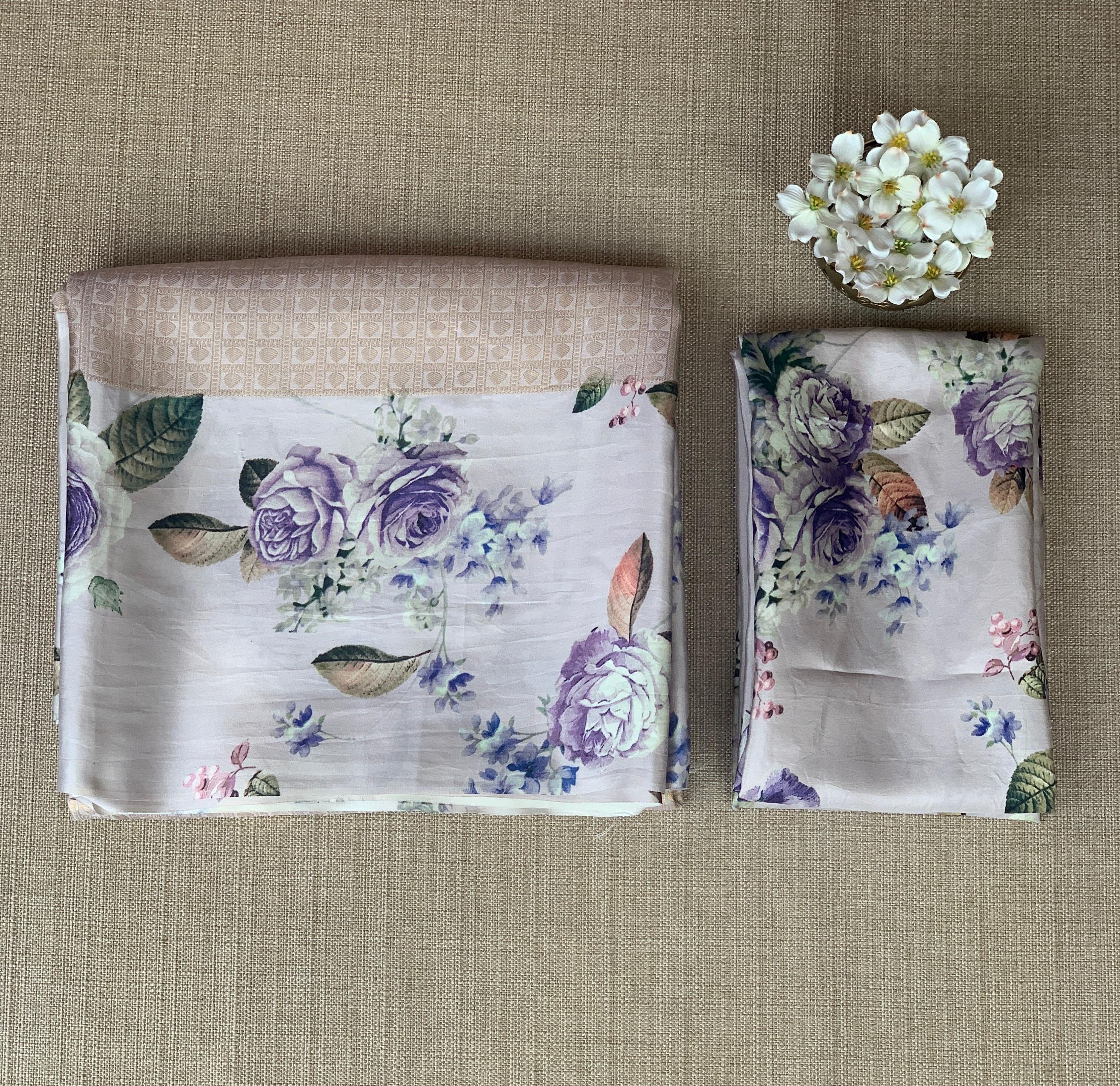 • Light Lilac kanchi Brocade Saree with printed border