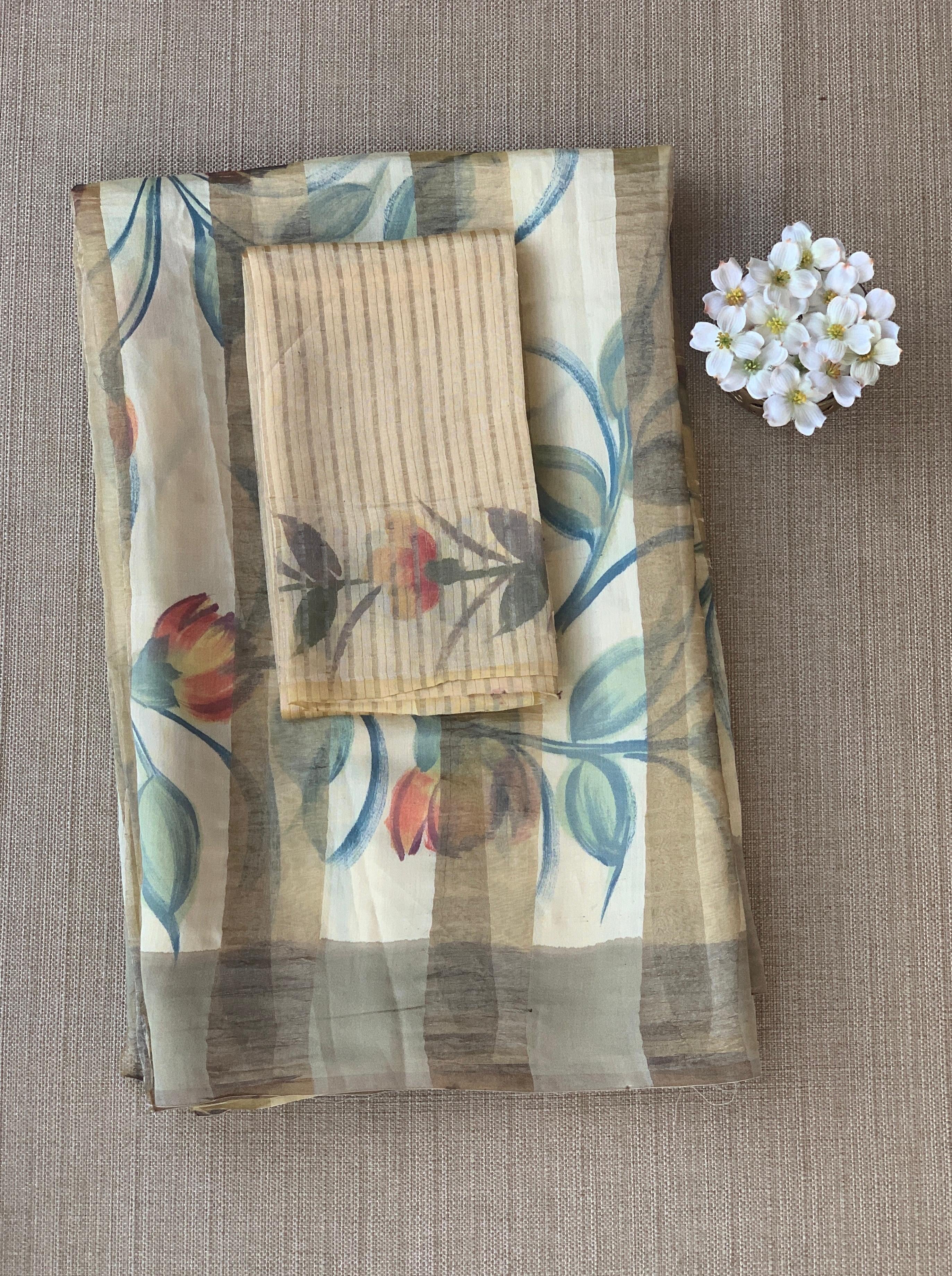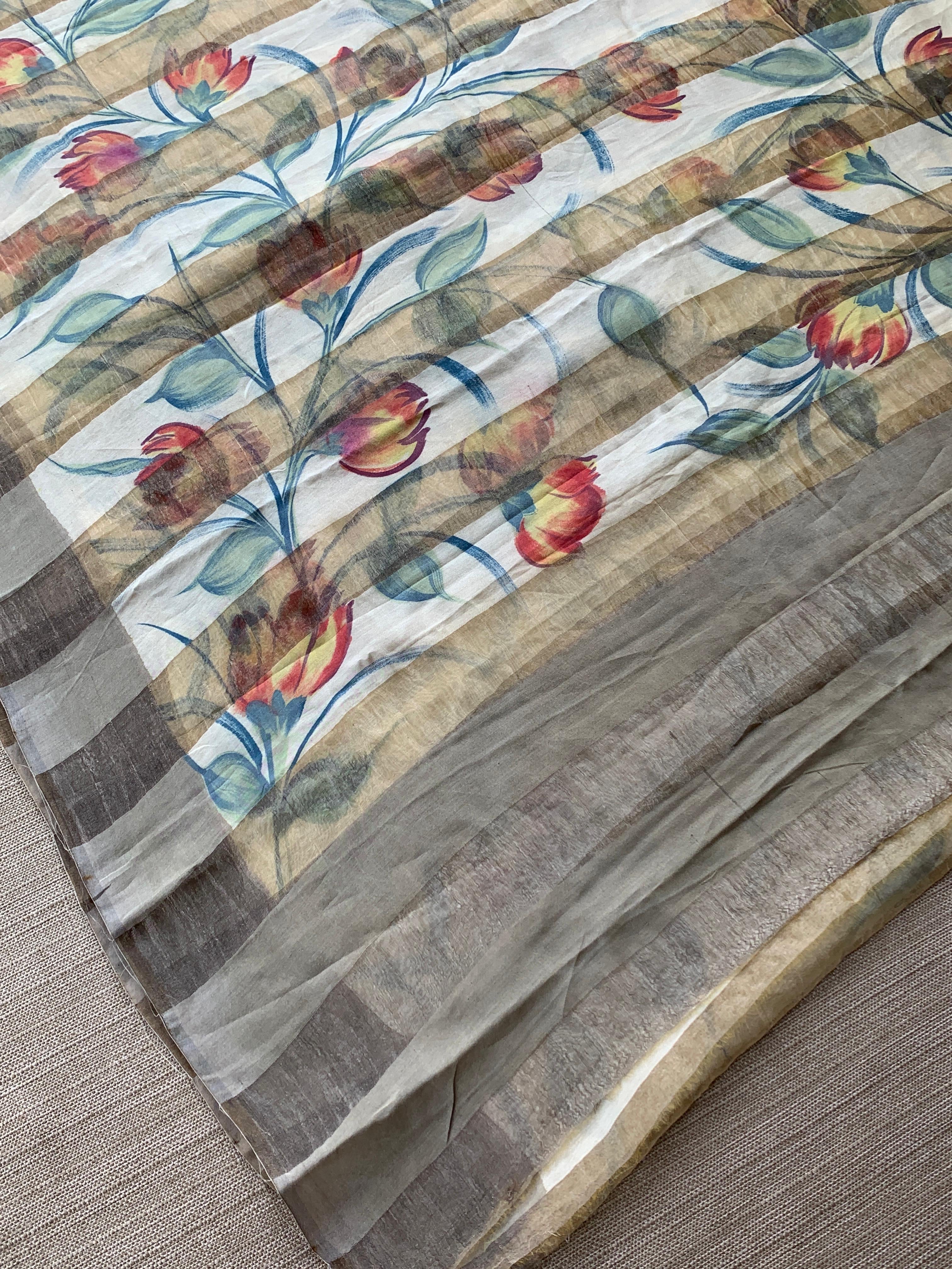 • Mul silk handpainted Saree with tissue stripes and