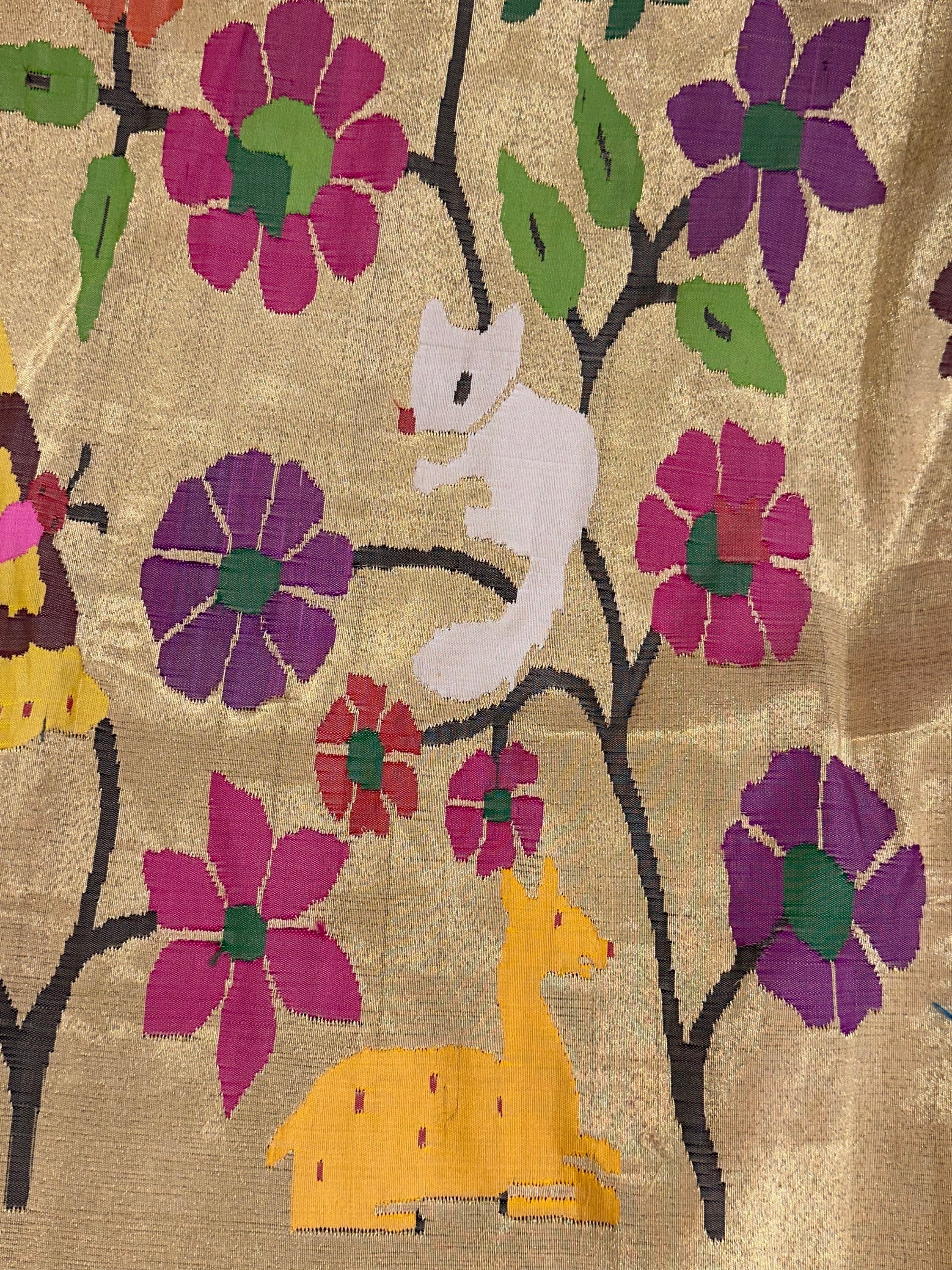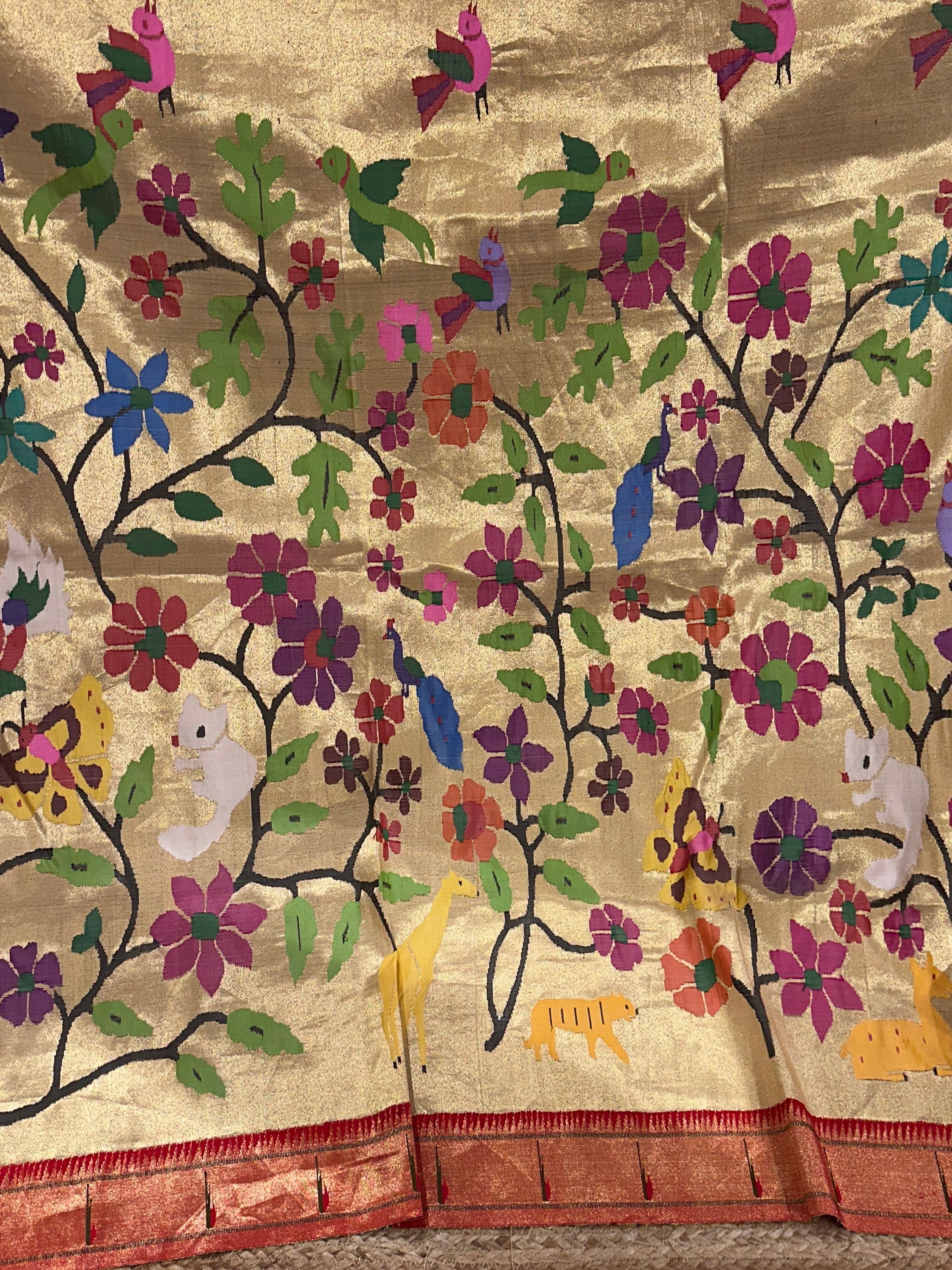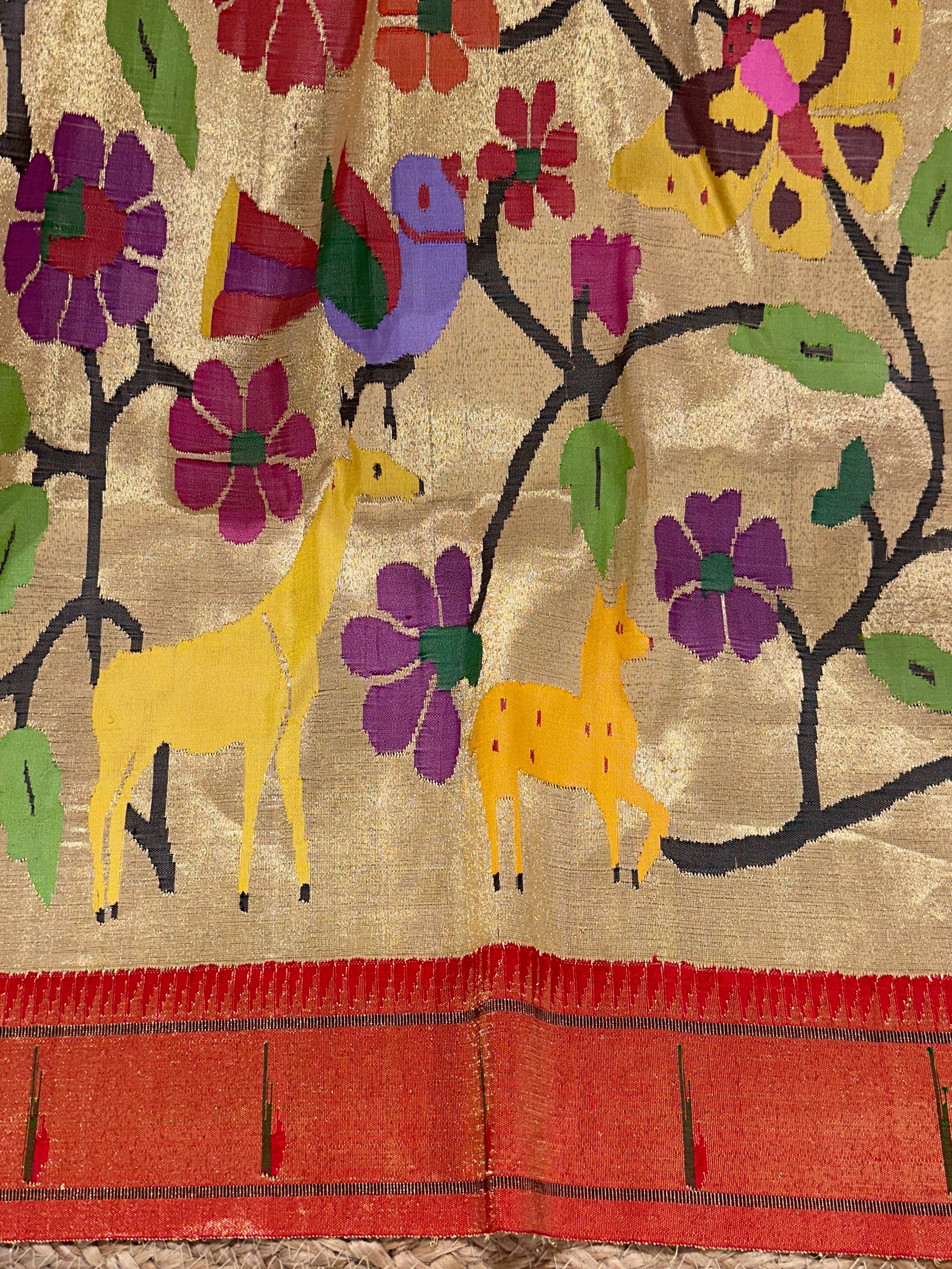 • Light Gold Tissue Allover Pure Handloom Paithani Saree