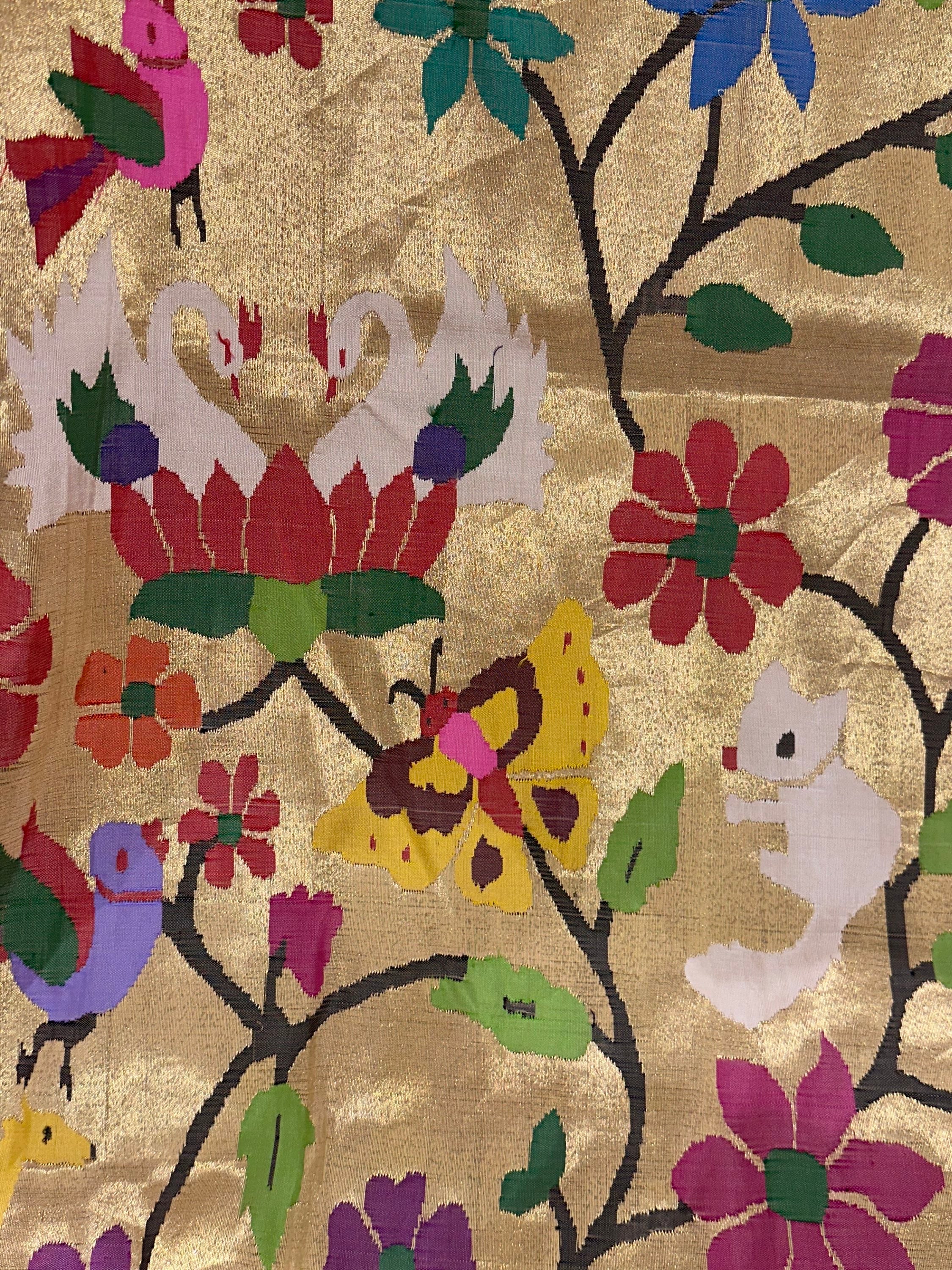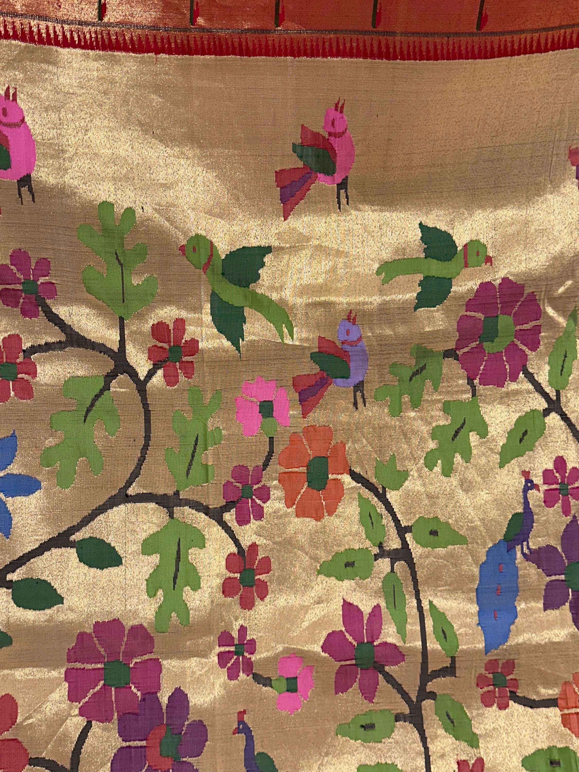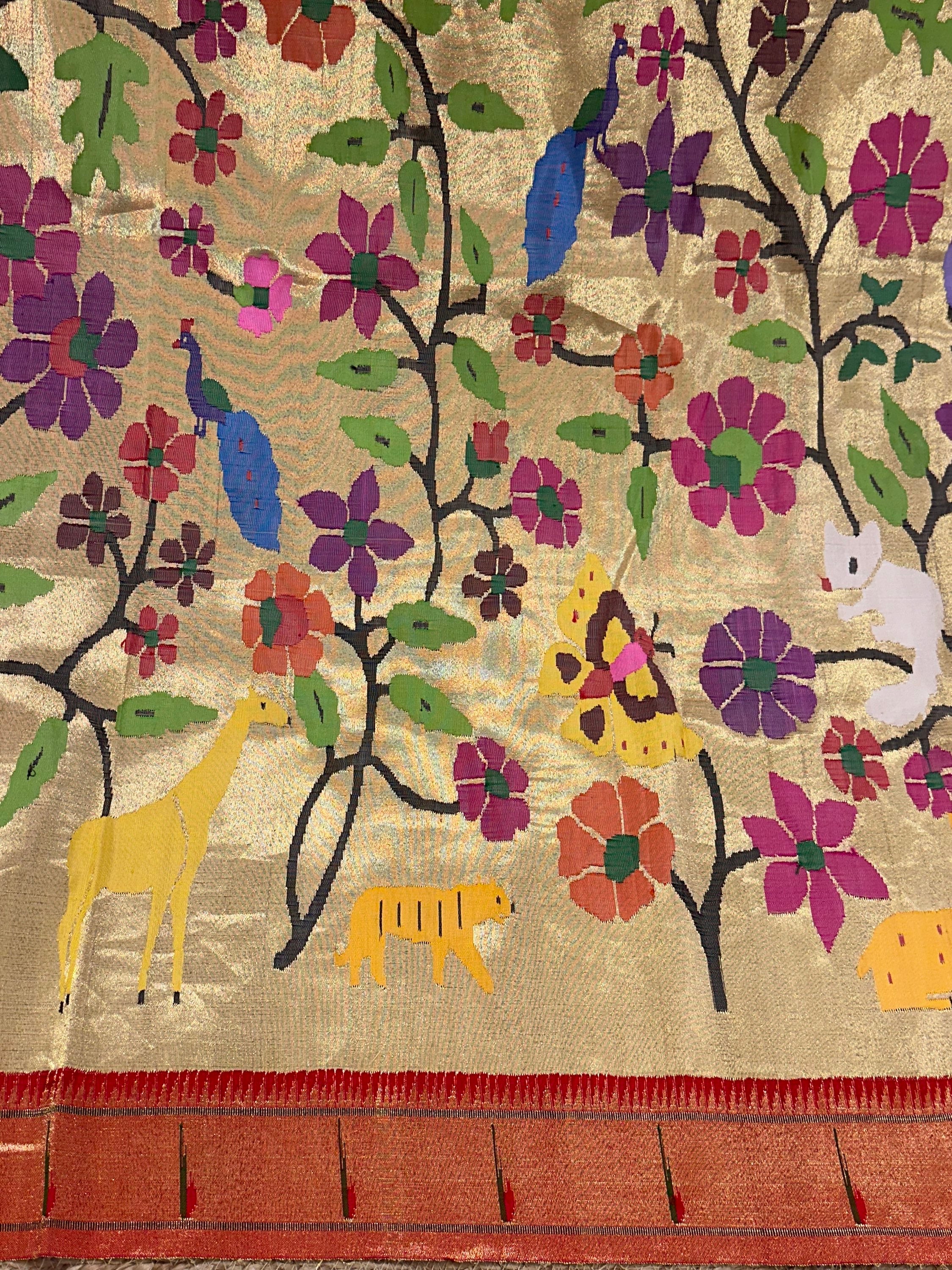 • Light Gold Tissue Allover Pure Handloom Paithani Saree