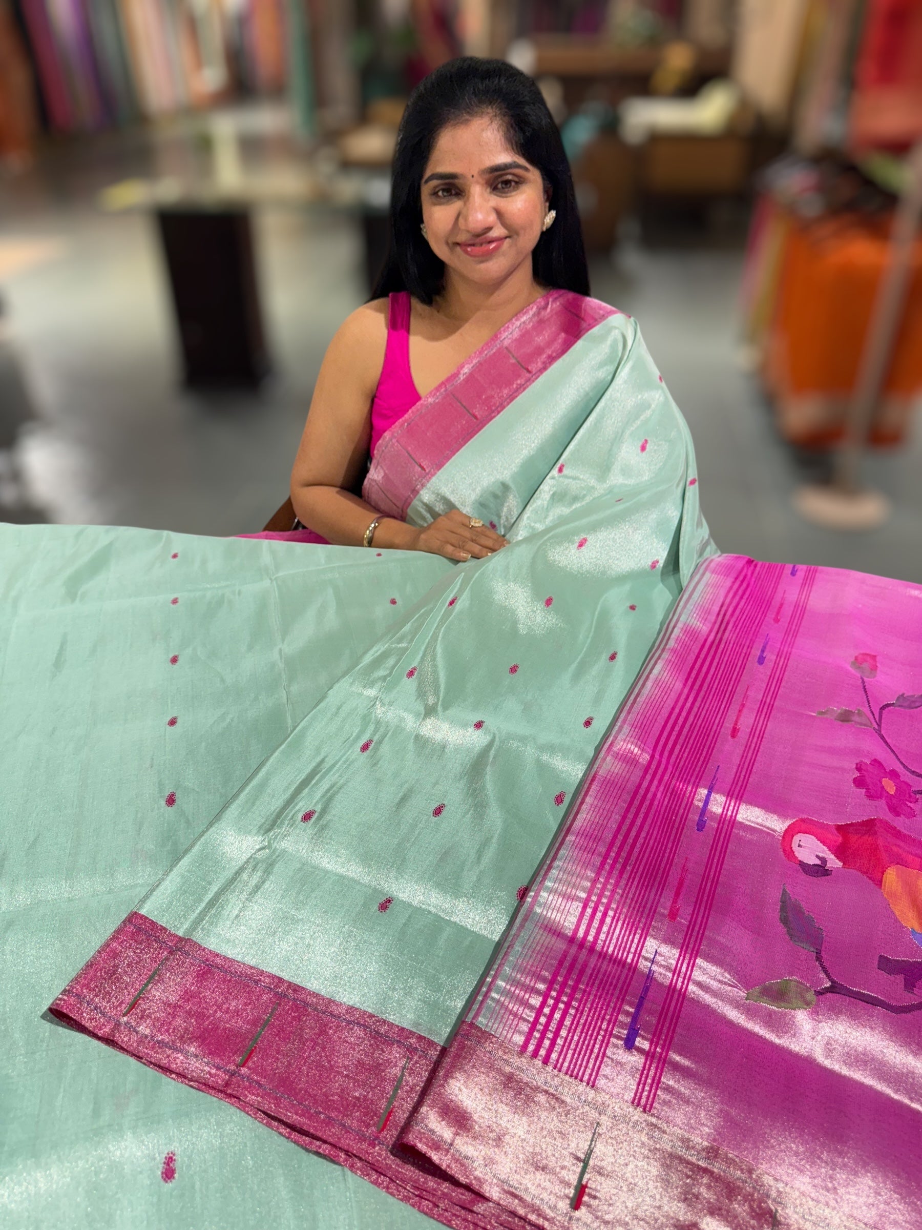 • Mint Blue Pure handloom paithani tissue saree
