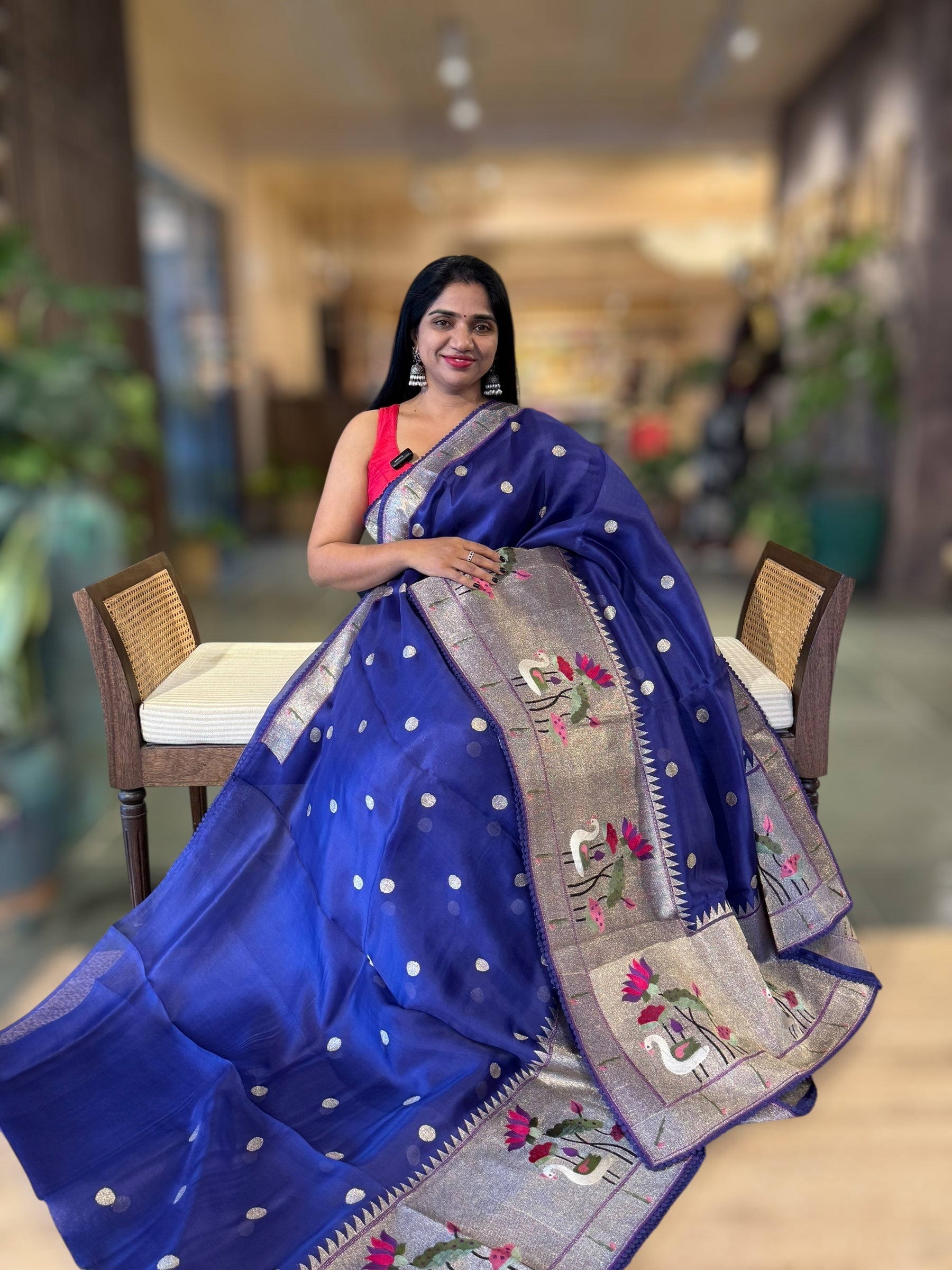 • Purplish Blue Pure Organza Saree With Pythani Embroidered Border