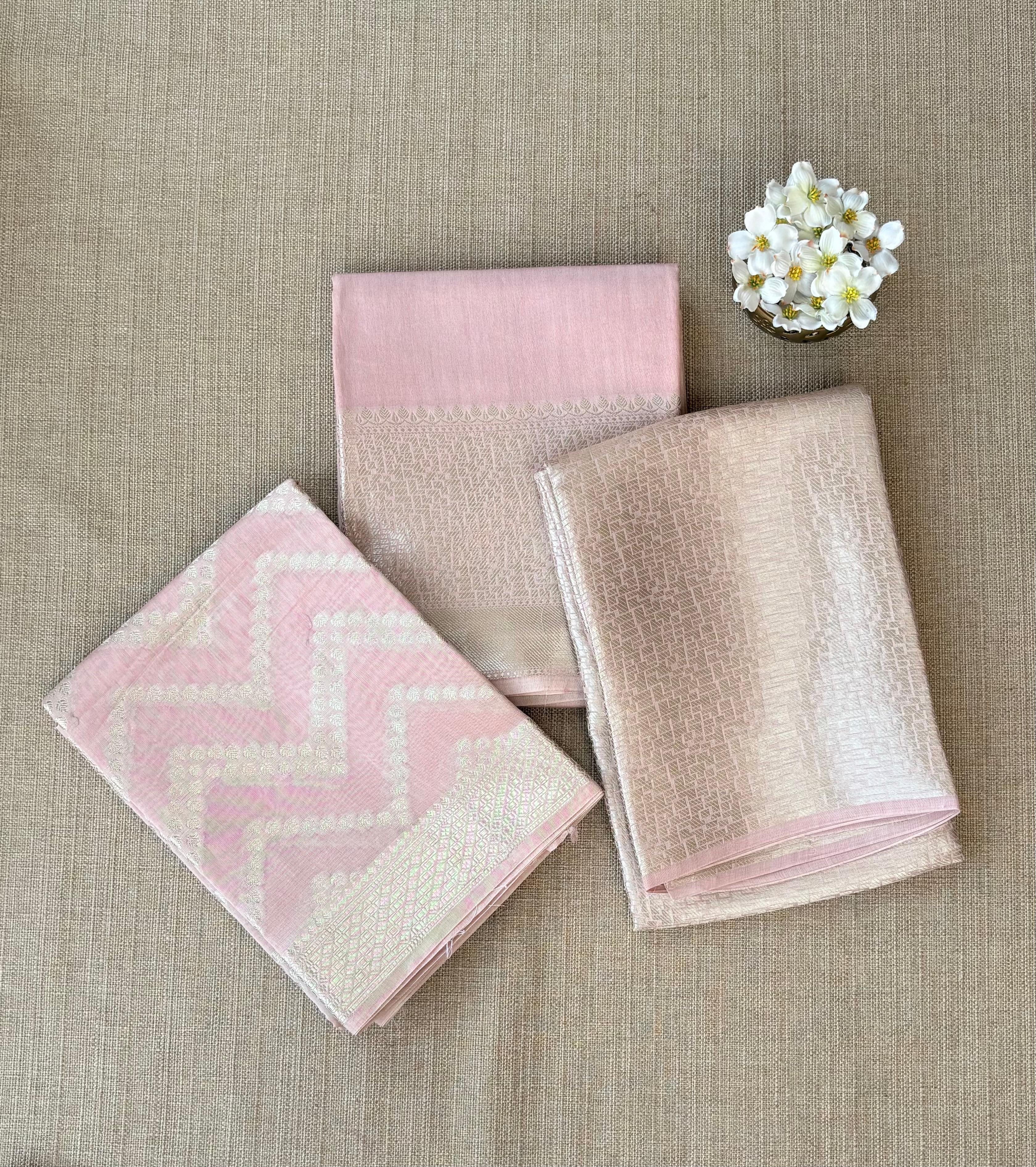 • Pastel Pink Banarasi Mul Silk Brocade 3-pc Sharara Suit set : SS62J14