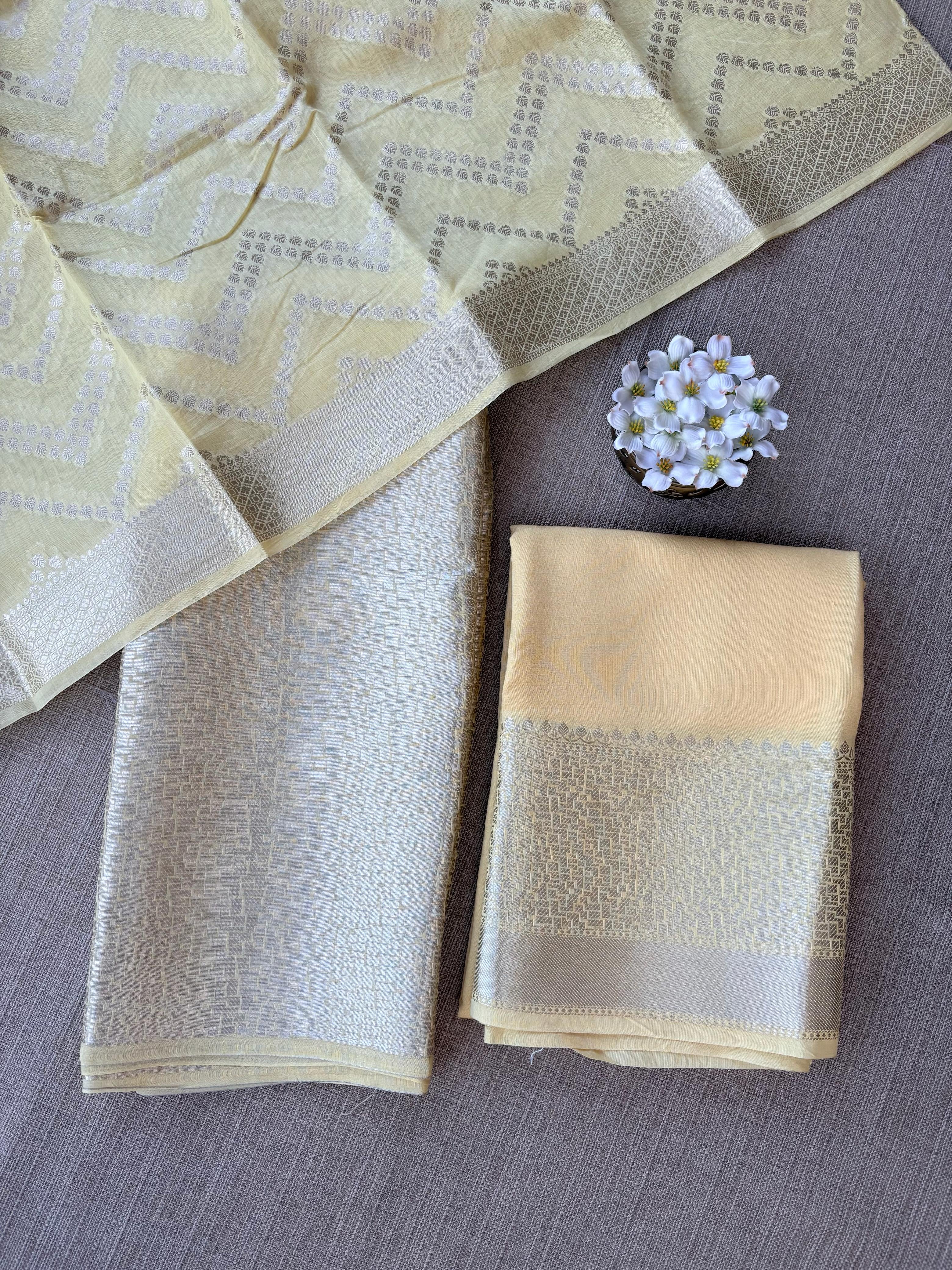 • Besan Yellow Banarasi Mul Silk Brocade 3-pc Sharara Suit set : SS62J17