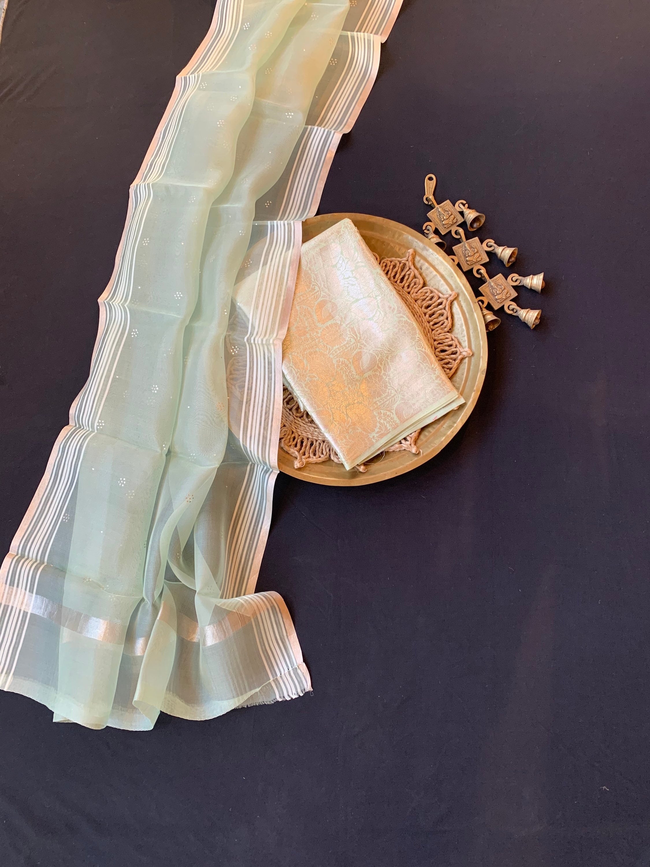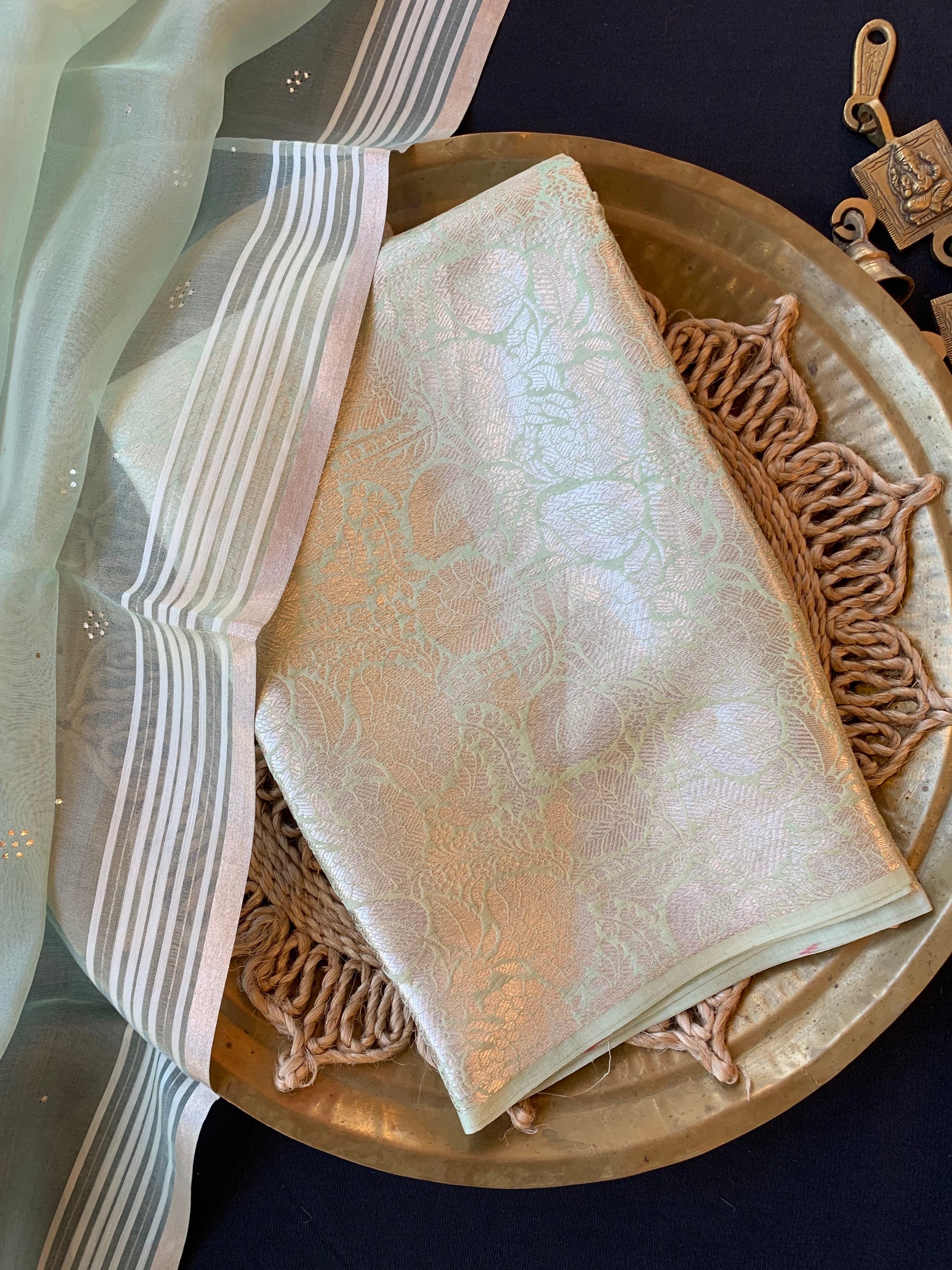 Mint Green Banarasi Handloom Brocade 3 pc suit set