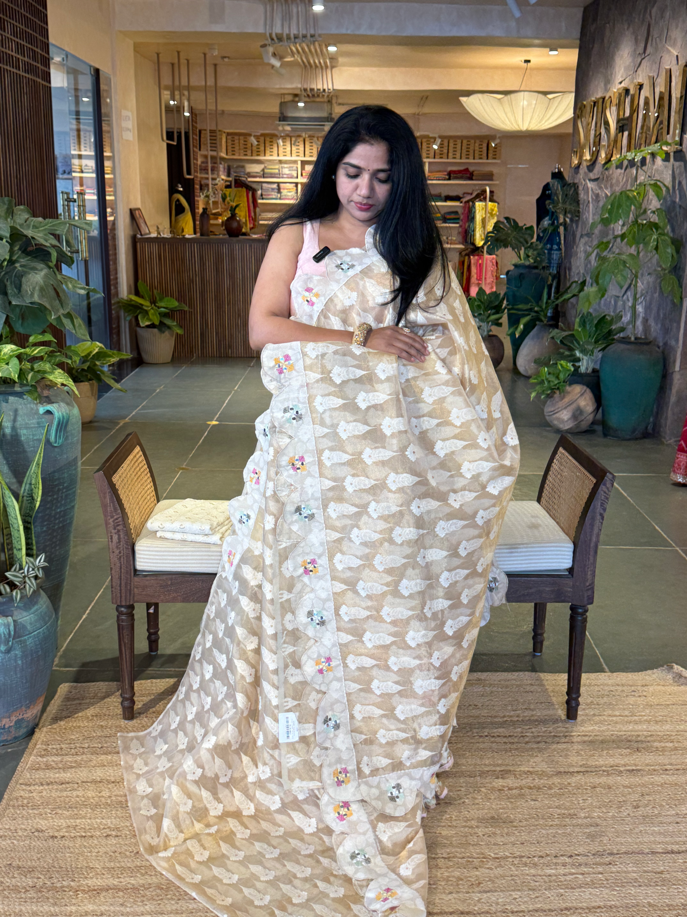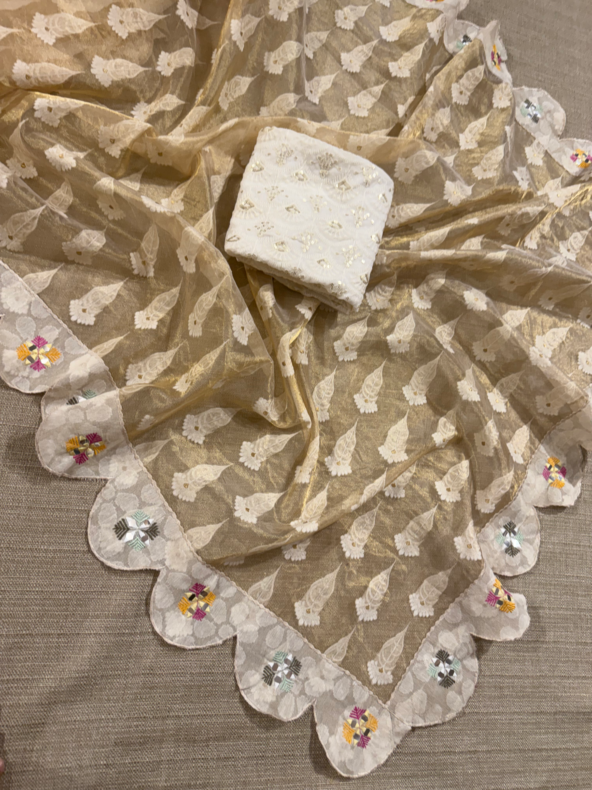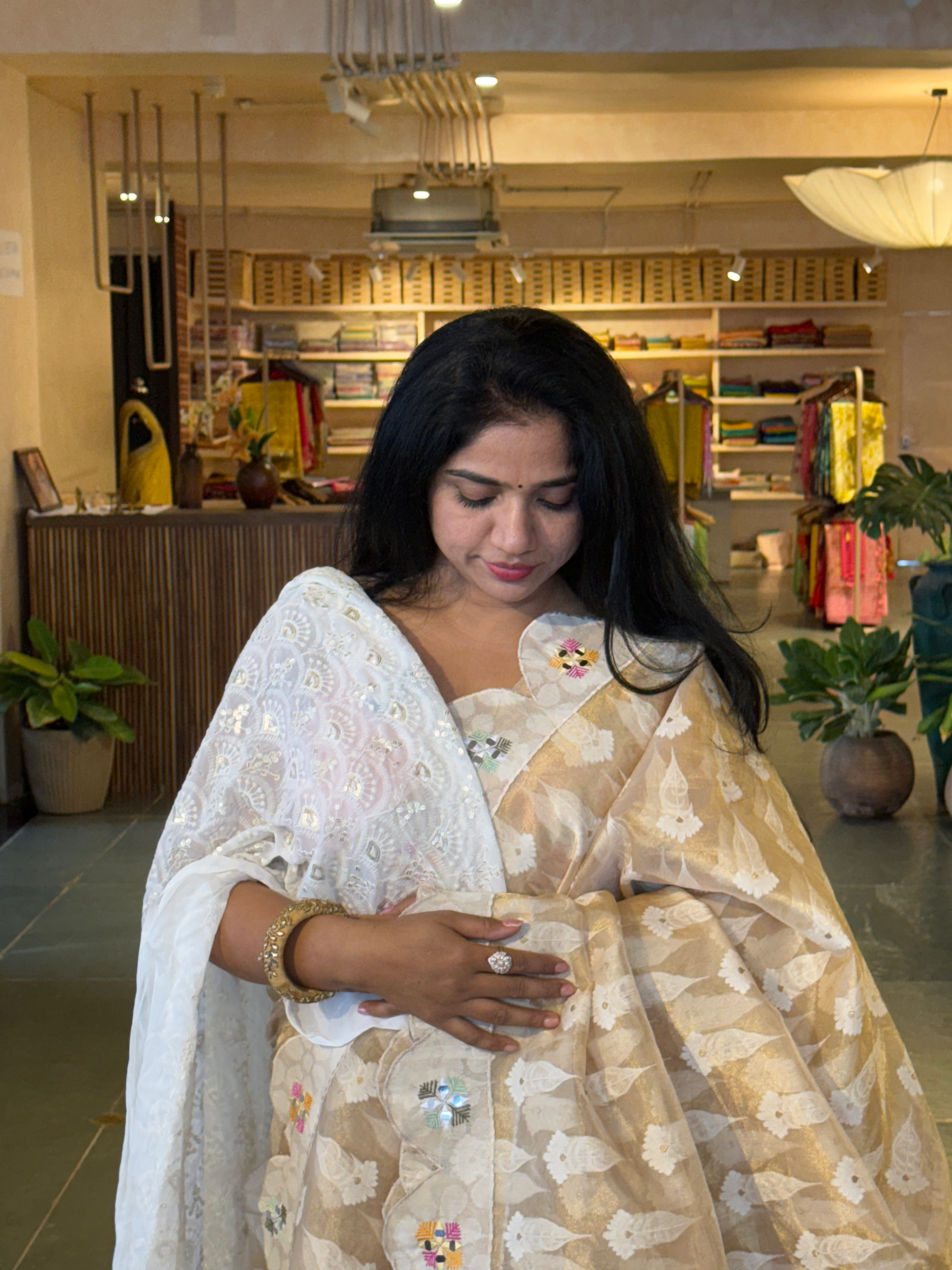 Pure Handloom Gold Tissue Saree With allover Resham weaving .
