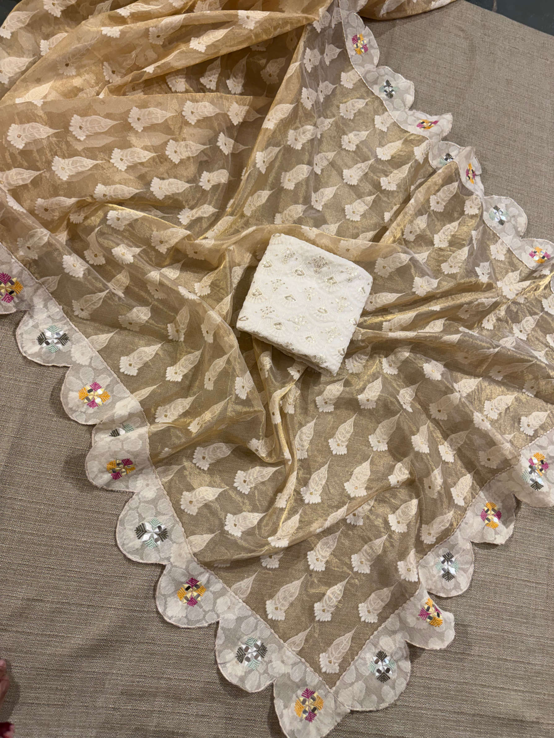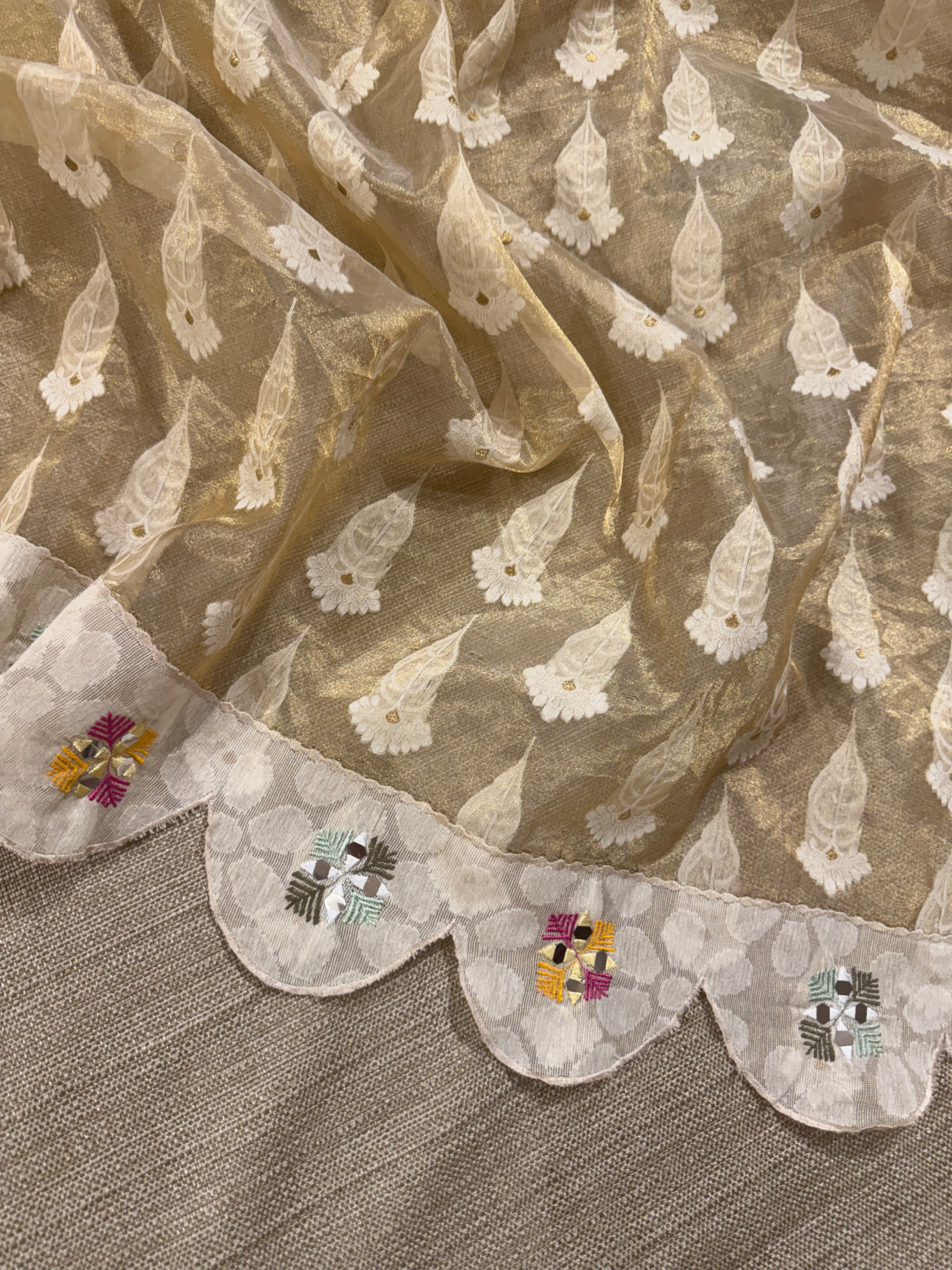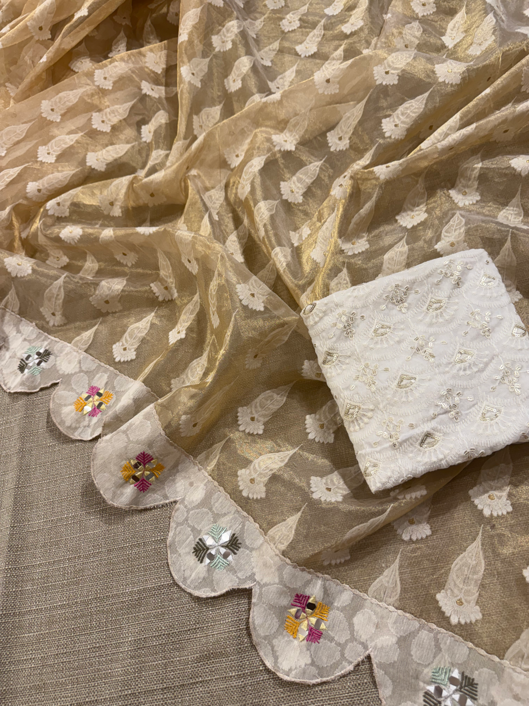 • GTEA2004 : Designer Handloom Gold Tissue Saree With handwork borders