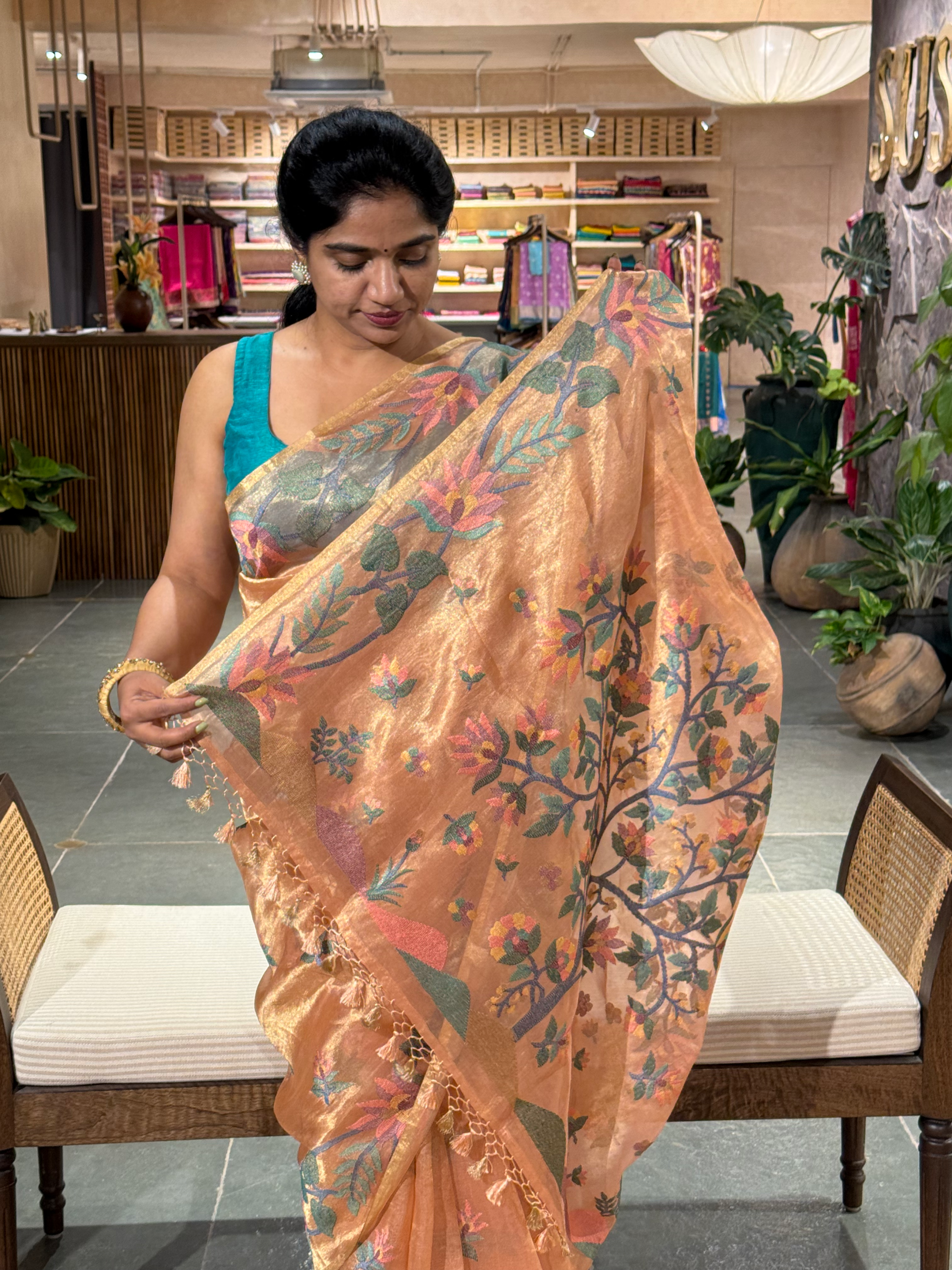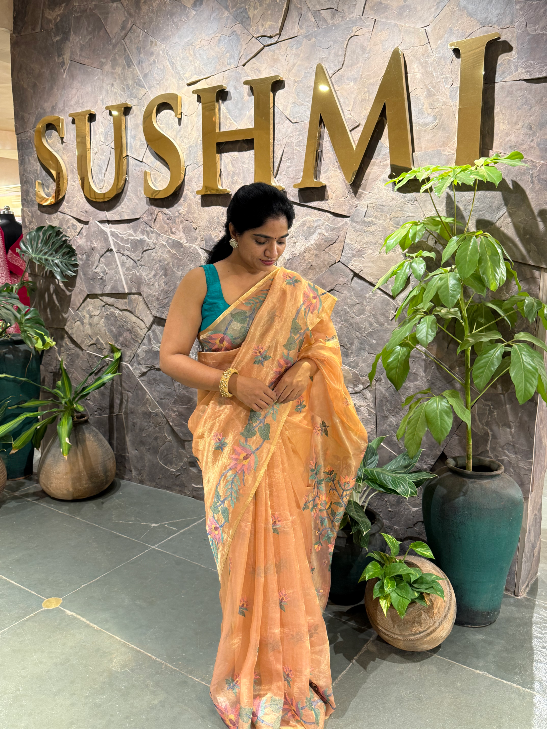 with Jamdani Look Creeper Embroidery border and Heavy Pallu .