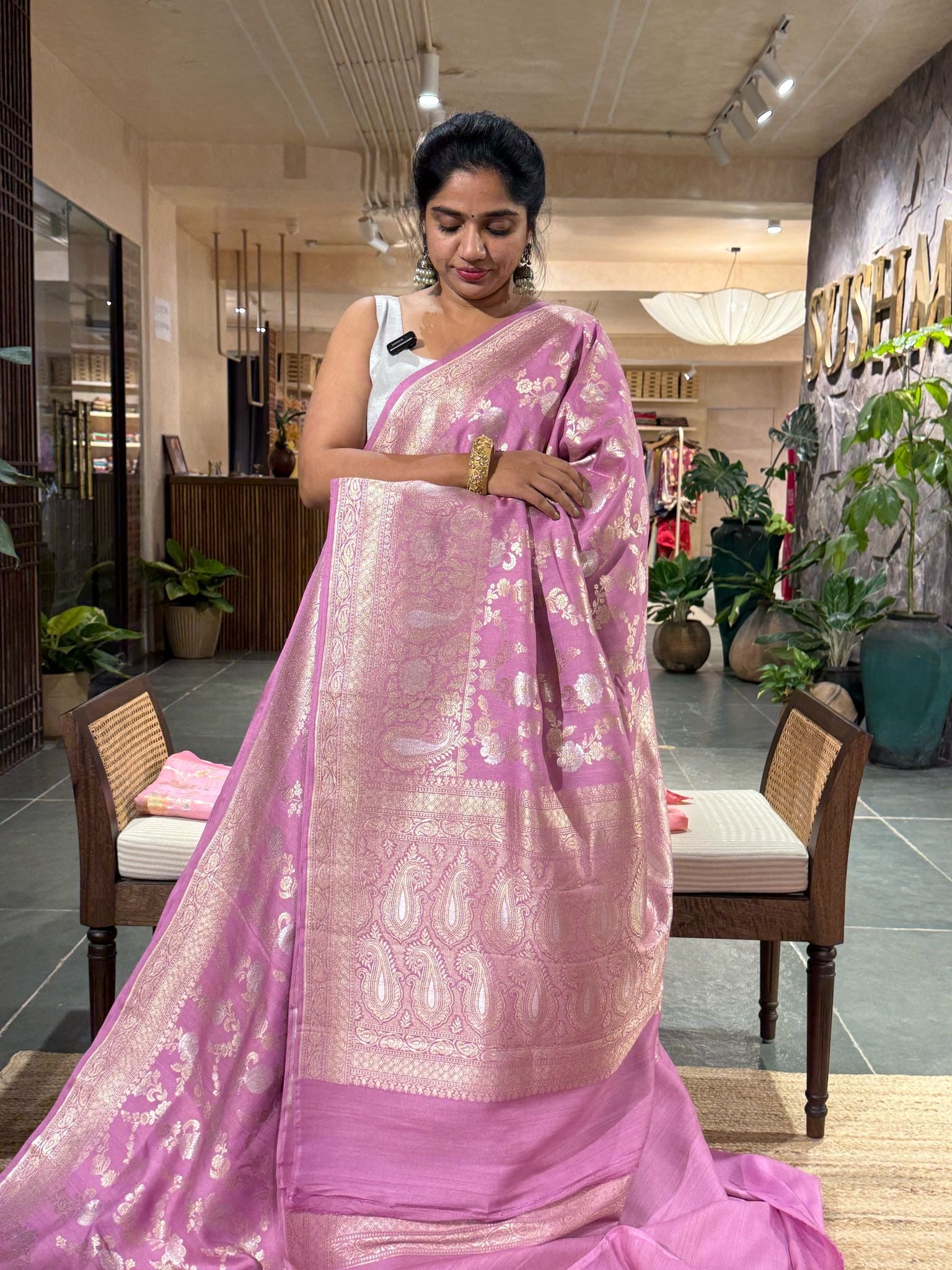 • Pure Handloom Banarasi Tussar gorgette Saree