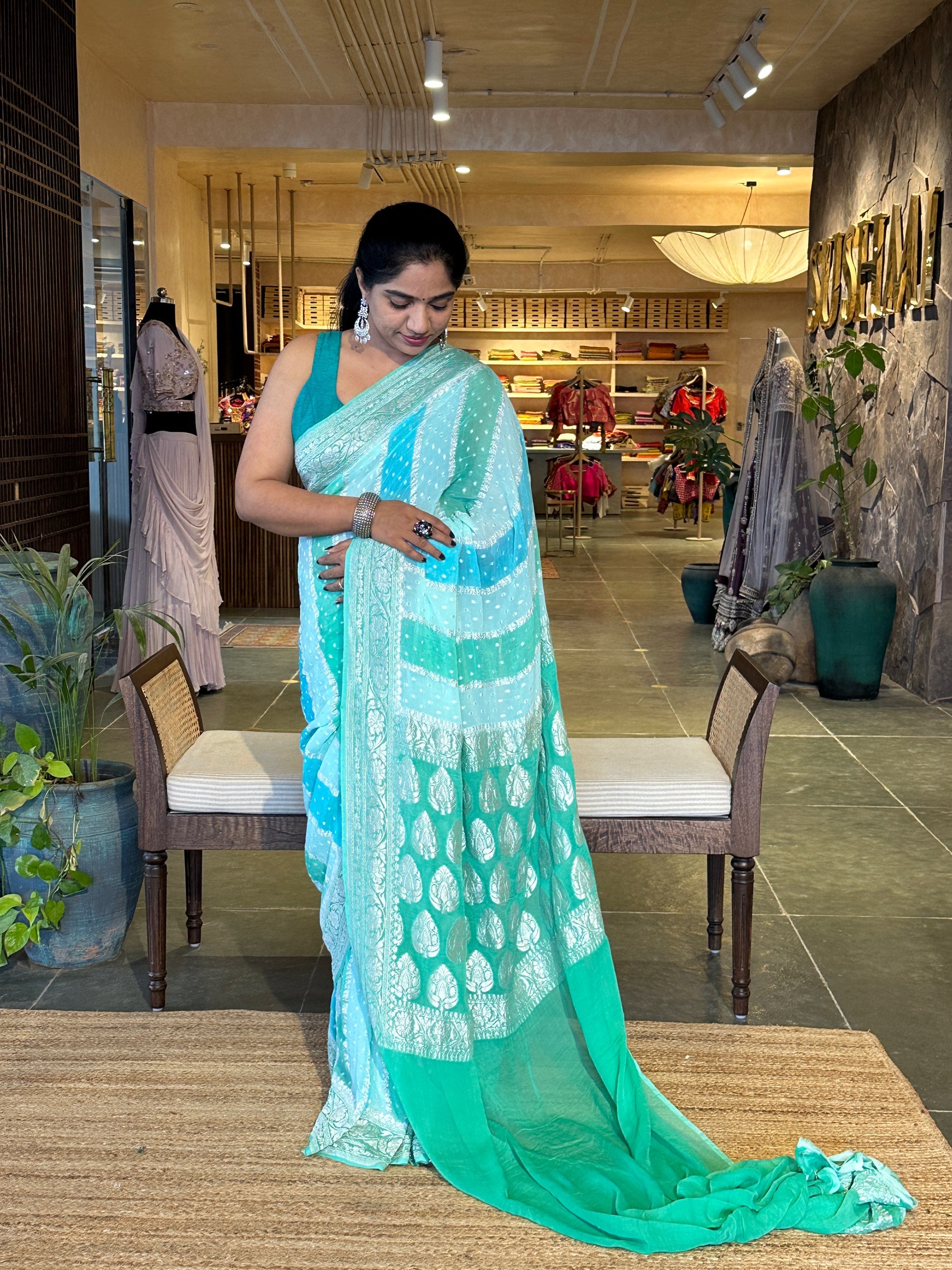 Stunning Banrasi pure handwoven khaddi gorgette saree in rangkaat style
