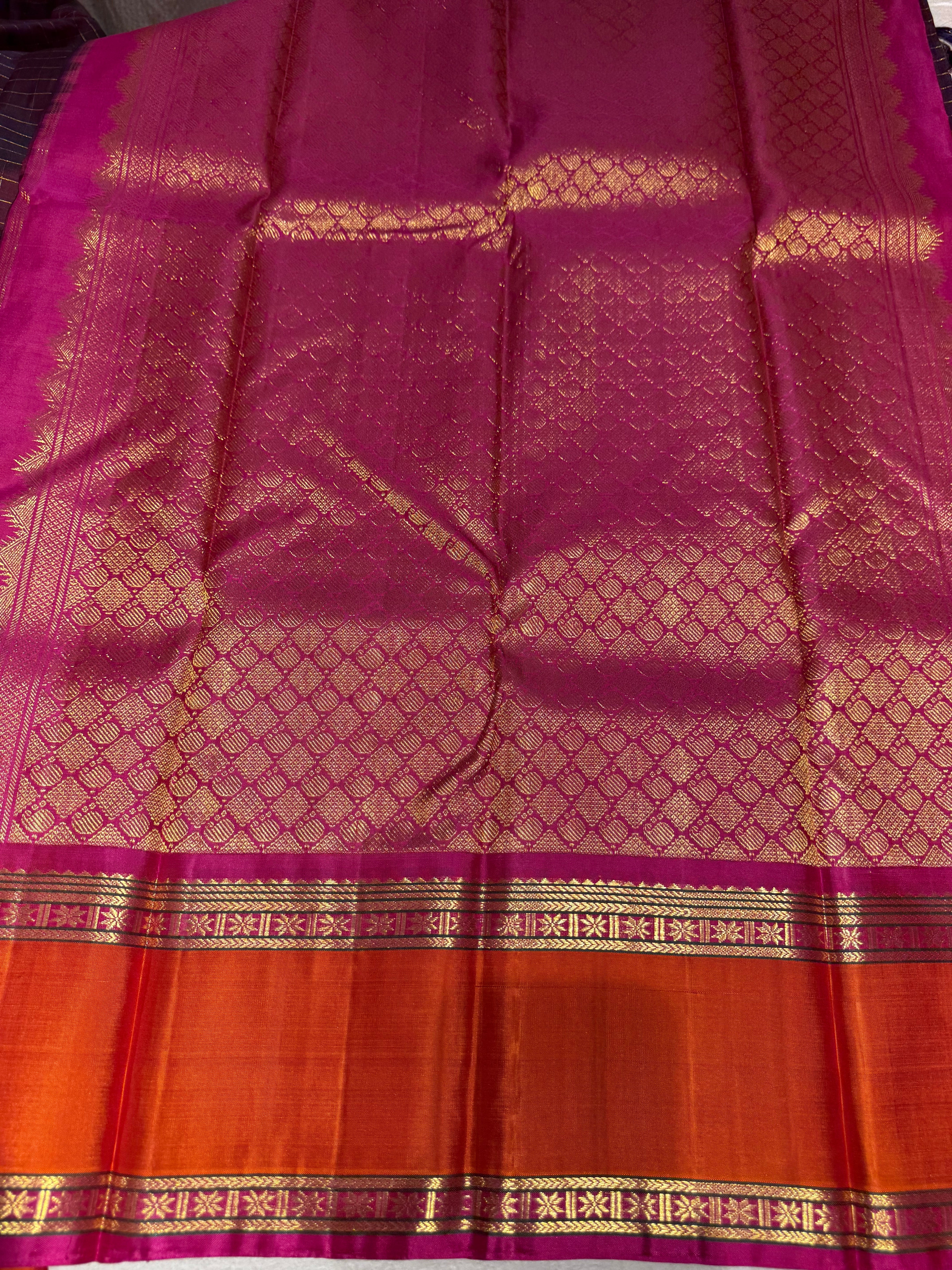 • Winish Brown Kanchi vintage checks saree with Gap Border